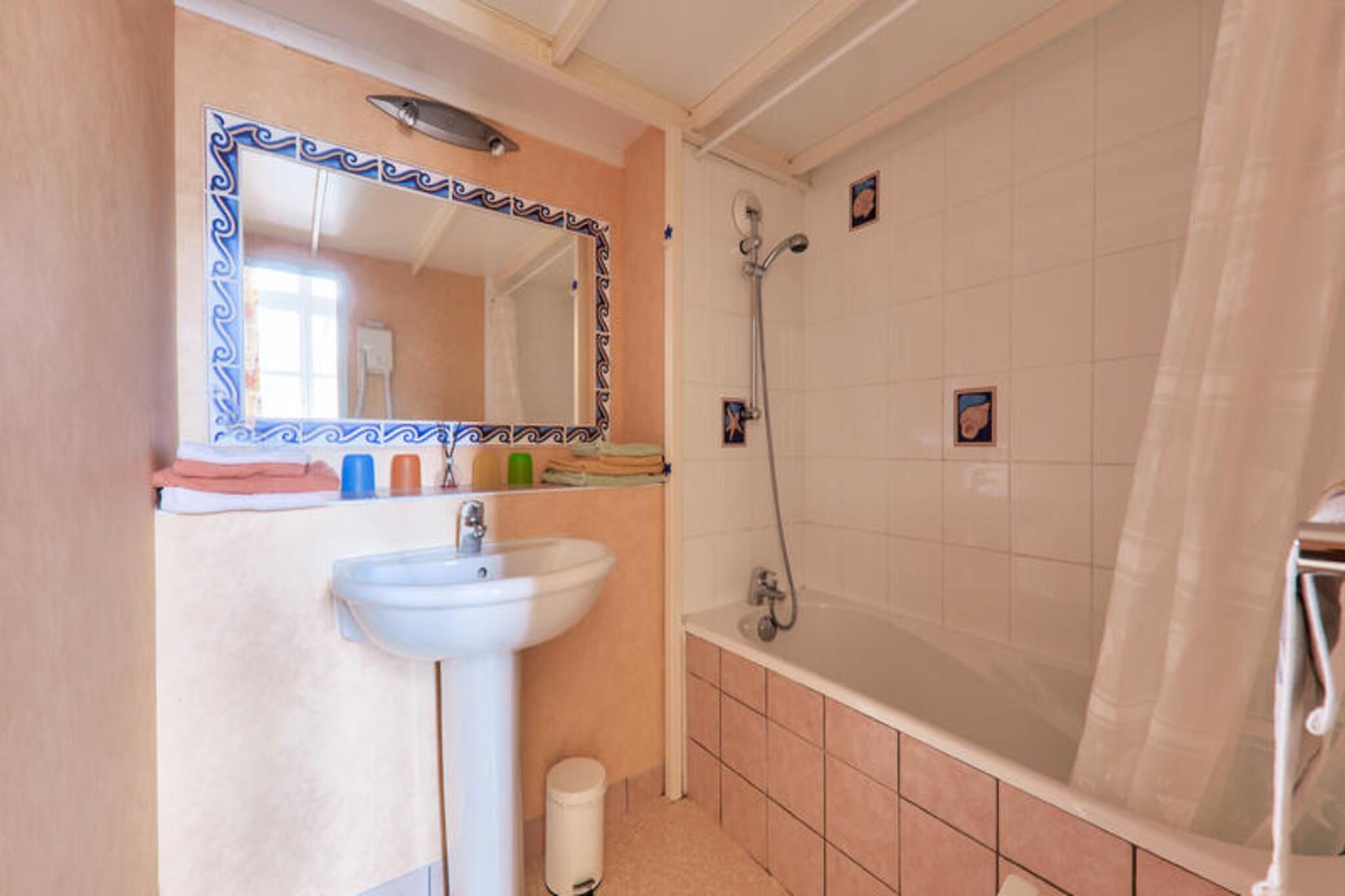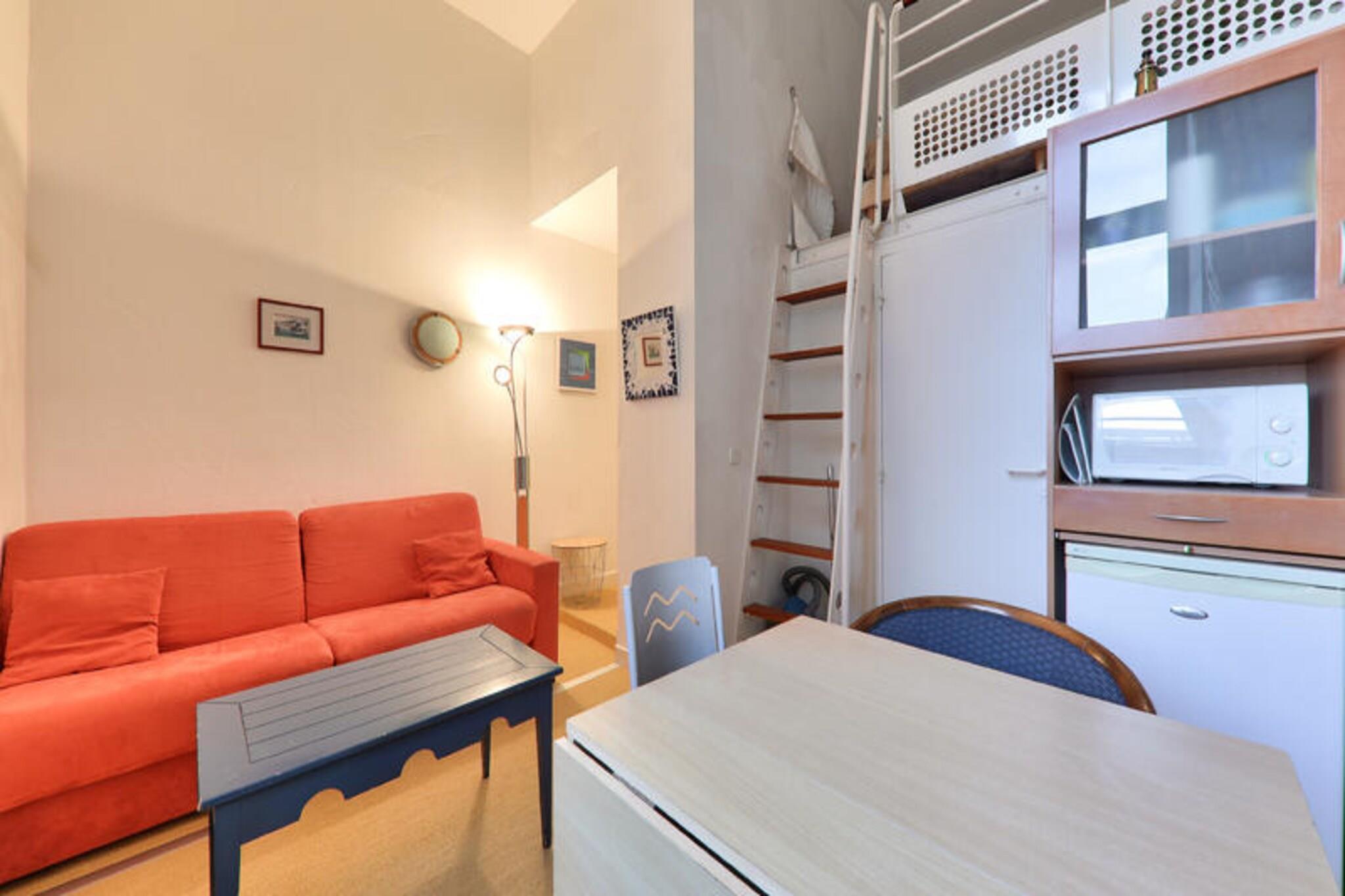 Denne lejlighed ved havet tilbyder et roligt tilflugtssted med direkte adgang til stranden, som ligger kun f? skridt fra boligen. Lejligheden p? 21 m² indeholder en stue med en sovesofa, en mezzanin med to ekstra senge og et enkelt sovev?relse med to separate senge. Ejendommen har ogs? et badev?relse med badekar, separat toilet og opbevaringsplads. G?sterne kan nyde den maleriske havudsigt, hvilket g?r det til et ideelt sted for en afslappende ferie. K?ledyr er tilladt efter foresp?rgsel, og parkering er tilg?ngelig for et k?ret?j. Beliggende i det fredelige Pointe du Croisic-omr?de, er boligen kun 100 meter fra havet, hvilket giver en fremragende base for at udforske regionen. I n?rheden kan du nyde aktiviteter s?som g?ture, cykling, sejlads og ridning. Mediebiblioteket ligger en kort g?tur v?k og tilbyder gratis adgang til forskellige aviser, magasiner og romaner. For yderligere fritid har boligen en uopvarmet pool tilg?ngelig fra 15. maj til 15. september med liggestole til afslapning. Lejligheden indeholder et fuldt udstyret amerikansk k?kken og en udend?rs parkeringsplads. Nyd m?ltider i den hyggelige spiseplads eller slap af p? mezzaninen. Med gratis Wi-Fi tilg?ngeligt p? mediebiblioteket tilbyder lejligheden alt det n?dvendige for en behagelig ferie ved havet. Bem?rk venligst, at boligen er en ikke-ryger ejendom.