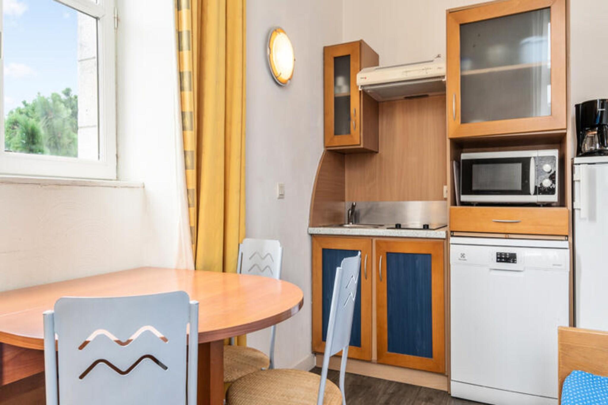 Idealmente situada junto al mar en Pointe du Croisic, la Résidence Saint Goustan le da la bienvenida durante su estancia en Loira Atlántico. Gracias a sus confortables apartamentos ubicados en un entorno tranquilo y preservado, podrá relajarse y descubrir la región con las visitas y actividades que se ofrecen en el lugar o en sus alrededores. : paseos a pie o en bicicleta, vela, equitación, golf. Este antiguo establecimiento balneario, lleno de carácter, ofrece alojamiento con y sin balcón. Para colmo, la residencia da acceso directo a la playa. Tomamos una puerta privada desde la residencia Saint Goustan con vistas a la arena y al mar. Ven y mira... La residencia está construida a ras del mar. Los juegos de mesa están disponibles en préstamo en la recepción del maeva Home. Tenga en cuenta que hay una mediateca a poca distancia para todos los turistas (consulta de todos los periódicos y revistas, novelas policíacas y revistas científicas in situ con acceso gratuito). Conexión WIFI gratuita a la mediateca. Acceso gratuito a la piscina de la residencia (no climatizada) con tumbonas. Piscina abierta del 15 de mayo al 15 de septiembre. Atención: el horario de recepción varía según la temporada. No es posible realizar llegadas ni salidas los miércoles y domingos. Su alquiler vacacional incluye: 1 estancia, 1 cocina, 1 dormitorio, 1 baño, 1 aseo. Superficie: 27 m², entresuelo 14,80 m². Ubicación: Apartamento dúplex situado en planta baja 2º piso con ascensor. Composición del salón: 1 sofá cama adicional (para 2 personas), un altillo de más de 14 m² con 2 camas individuales. Para la comida: 1 mesa con 4 sillas. Cocina abierta al salón. Composición de las habitaciones: Dormitorio 1: 1 cama doble Composición de los baños: Baño 1: Bañera-WC Acceso Wifi - Cargo adicional Se admiten mascotas - Además, consultar precios directamente con la residencia. Tenga en cuenta que esta información puede variar según el alojamiento. Ropa de cama - Cargo adicional Ropa de baño - Cargo adicional Limpieza final de estancia - Servicio de limpieza obligatorio a pagar al realizar el check-in o a la llegada. Limpieza diaria - Además, servicio de limpieza opcional a reservar durante su estancia. Aparcamiento - Todos los alojamientos disponen de plaza de aparcamiento. Piscina comunitaria - Incluida. Acceso gratuito a la piscina de la residencia (no climatizada) con tumbonas. Piscina abierta todos los días de 9:30 a 20:00 horas, del 15 de mayo al 15 de septiembre. Tasa turística (cargo adicional) - El pago de la tasa turística se realiza a través de su espacio personal: https://mon-compte.maeva.com, el importe varía según la ubicación. Gratis para menores de 18 años. Televisión - Dependiendo de su alojamiento. Se admiten mascotas - extra Depósito (en euros) - 500 Ropa de cama - Cargo adicional. Limpieza final de estancia - Servicio de limpieza obligatorio a pagar al realizar el check-in o a la llegada.