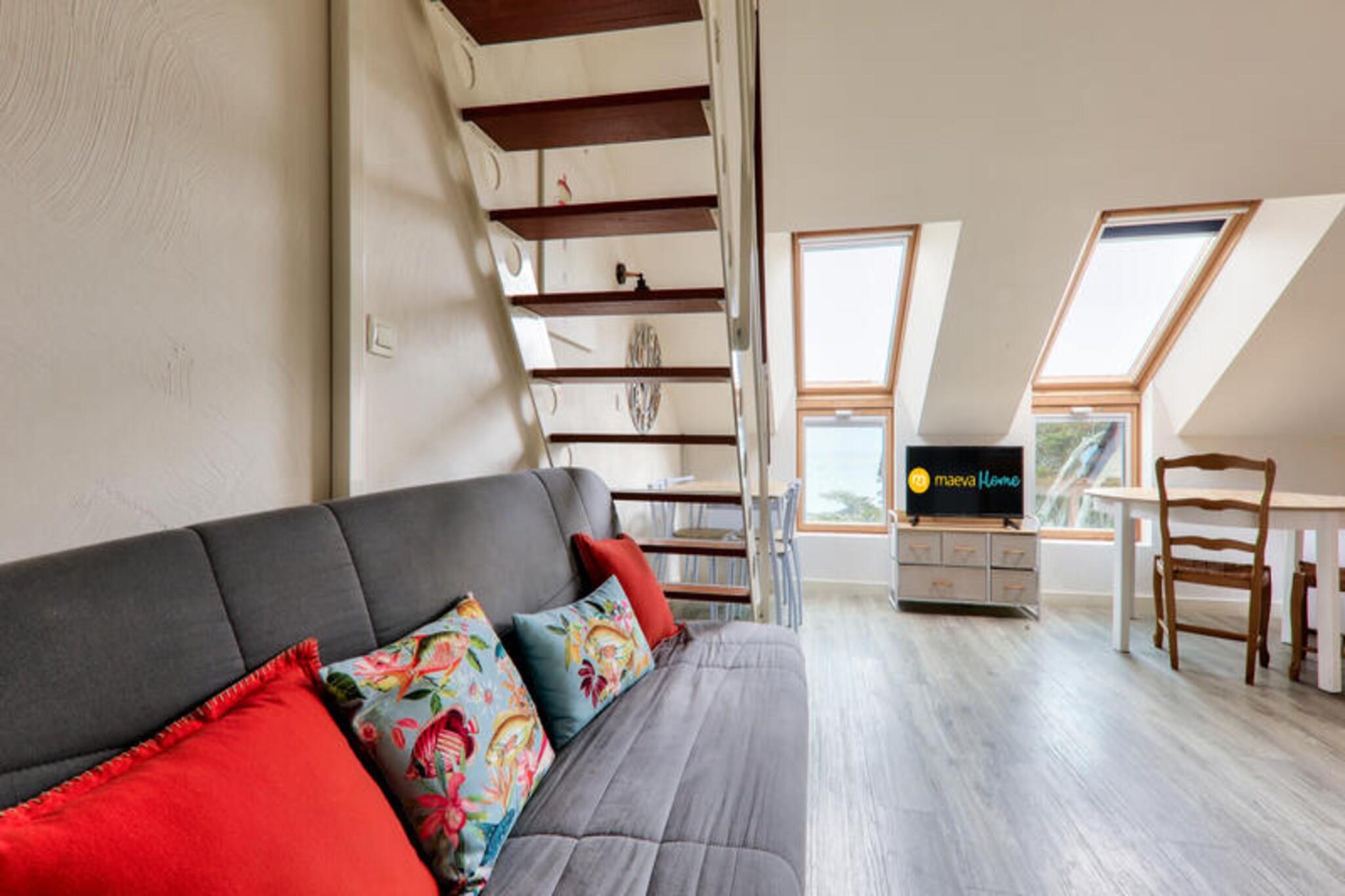 Idealmente situada junto al mar en Pointe du Croisic, la Résidence Saint Goustan le da la bienvenida durante su estancia en Loira Atlántico. Gracias a sus confortables apartamentos ubicados en un entorno tranquilo y preservado, podrá relajarse y descubrir la región con las visitas y actividades que se ofrecen en el lugar o en sus alrededores. : paseos a pie o en bicicleta, vela, equitación, golf. Este antiguo establecimiento balneario, lleno de carácter, ofrece alojamiento con y sin balcón. Para colmo, la residencia da acceso directo a la playa. Tomamos una puerta privada desde la residencia Saint Goustan con vistas a la arena y al mar. Ven y mira... La residencia está construida a ras del mar. Los juegos de mesa están disponibles en préstamo en la recepción del maeva Home. Tenga en cuenta que hay una mediateca a poca distancia para todos los turistas (consulta de todos los periódicos y revistas, novelas policíacas y revistas científicas in situ con acceso gratuito). Conexión WIFI gratuita a la mediateca. Acceso gratuito a la piscina de la residencia (no climatizada) con tumbonas. Piscina abierta del 15 de mayo al 15 de septiembre. Atención: el horario de recepción varía según la temporada. No es posible realizar llegadas ni salidas los miércoles y domingos. Su alquiler vacacional incluye: 1 sala, 1 área de cabañas, 1 cocina, 1 baño, 1 estacionamiento. Las ventajas de su alquiler: Estudio para 4 personas con acceso directo al mar. Superficie: 31m². Ubicación: Piso de alojamiento: 3er piso Acceso a playa o pista: Acceso directo al mar (junto al mar) Centro de la ciudad o pueblo: Centro del pueblo Distancia de las pistas al mar: <100m Distancia comercial: entre 100m y 500m Actividades a distancia: entre 100m y 500m Composición de la estancia: Sofá cama Salón: 1 Sofá estándar: Sí Plazas para sentarse en el sofá: 3 Mesa en el comedor: Sí Número de sillas (o taburetes): 6 Lado de la comida: Tipo de cocina: americana Mesa en la cocina: Sí Número de sillas en la cocina: 6 Composición de las habitaciones: Dormitorio 1: Presencia de un entrepiso: Sí Número de camas en el entresuelo: 2 Composición del baño: Número de baño: 1 Tipo de baño 1: Bañera sin columna Estado del baño principal: Buen estado Perchero(s) o secador de toallas sin calefacción 1: Sí Espacio(s) de almacenamiento (sin incluir el estante debajo del espejo y el tocador) 1: Sí Baño 1: Sí Exteriores: Aparcamiento dedicado al alojamiento: Sí Tipo de Aparcamiento: Exterior Balcón: No ¿Cómo describiría la luminosidad del alojamiento en su conjunto? : Brillante Etiqueta maeva Home Confort: buena relación calidad-precio. Servicios correctos, alojamiento mantenido y equipado con las principales comodidades. Lo imprescindible para unas vacaciones al mejor precio. Acceso Wifi - Cargo adicional Se admiten mascotas - Además, consultar precios directamente con la residencia. Tenga en cuenta que esta información puede variar según el alojamiento. Ropa de cama - Cargo adicional Ropa de baño - Cargo adicional Limpieza final de estancia - Servicio de limpieza obligatorio a pagar al realizar el check-in o a la llegada. Limpieza diaria - Además, servicio de limpieza opcional a reservar durante su estancia. Aparcamiento - Todos los alojamientos disponen de plaza de aparcamiento. Piscina comunitaria - Incluida. Acceso gratuito a la piscina de la residencia (no climatizada) con tumbonas. Piscina abierta todos los días de 9:30 a 20:00 horas, del 15 de mayo al 15 de septiembre. Tasa turística (cargo adicional) - El pago de la tasa turística se realiza a través de su espacio personal: https://mon-compte.maeva.com, el importe varía según la ubicación. Gratis para menores de 18 años. Televisión - Dependiendo de su alojamiento. Depósito (en euros) - 400 Ropa de cama - Cargo adicional. Limpieza final de estancia - Servicio de limpieza obligatorio a pagar al realizar el check-in o a la llegada.