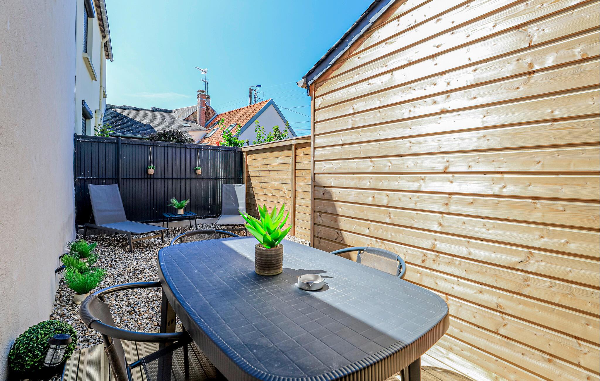 Nyd en varieret ferie i dette moderne feriehus nær stranden. Dette lyse og venlige feriehus byder jer velkommen i hjertet af bymidten i den charmerende badeby Le Crotoy, men alligevel i gåafstand fra sandstranden. Her kan I trylle lækre retter frem med friske råvarer fra markedet, planlægge jeres aktiviteter i den behagelige sofa og afslutte en aktiv dag med en god bog eller et spændende brætspil. På den åbne terrasse kan I starte dagen med ovnfriske croissanter, nyde solen på behagelige liggestole og reflektere over jeres oplevelser med et glas vin om aftenen. Tag en vadehavsvandring gennem den imponerende Somme-bugt, se sæler ved lavvande eller udforsk naturreservatet Parc I Marquenterre. Cykl langs kysten eller gennem de maleriske klitlandskaber. Slentr gennem den middelalderlige gamle bydel i Saint-Valery-sur-Somme, svøm på de fine sandstrande i Quend-Plage eller Fort-Mahon, tag en tur i kajak eller prøv frisk fisk og skaldyr i regionens små havne.