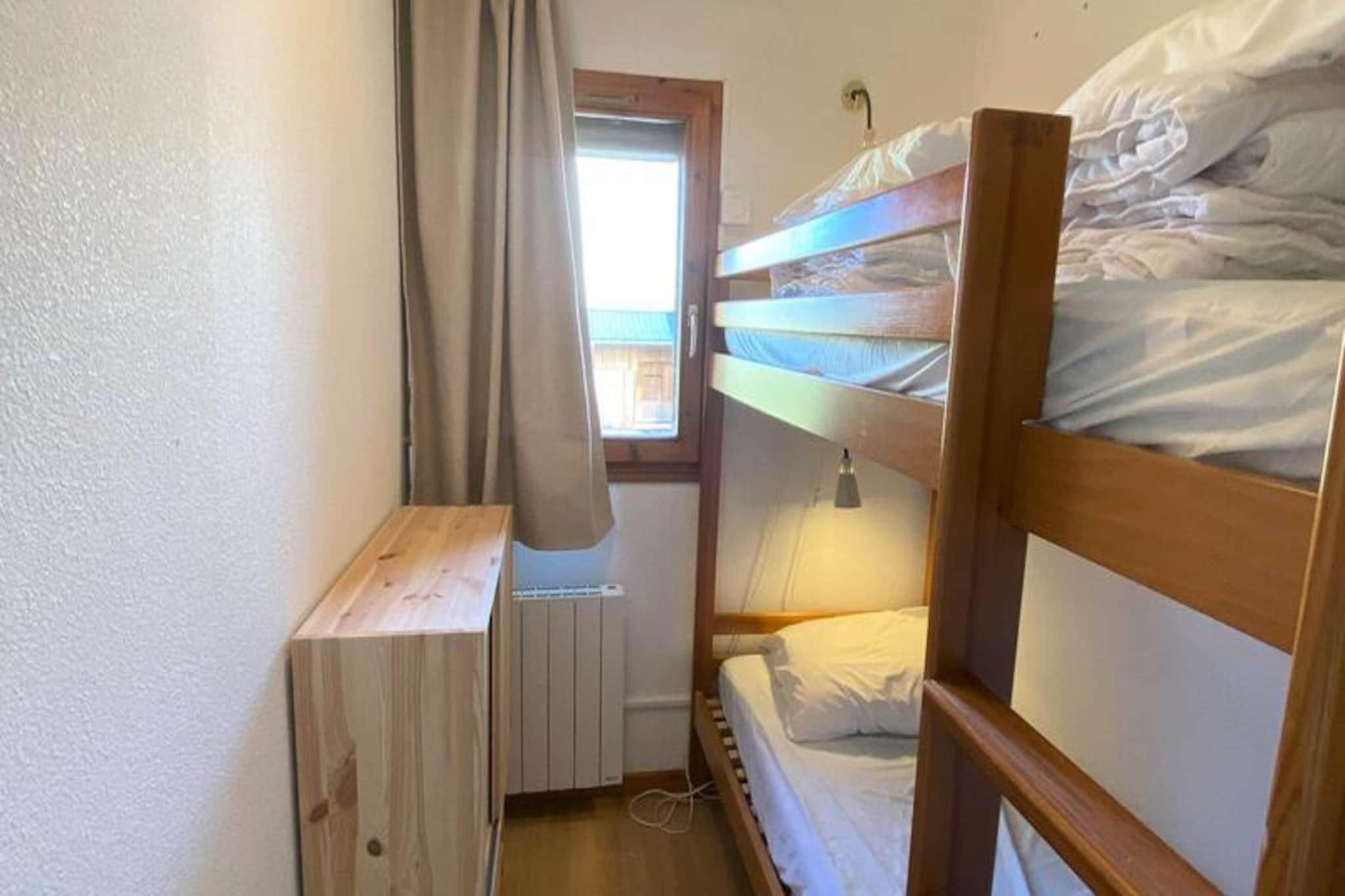 Højt oppe i de fredfyldte franske alper tilbyder denne charmerende bolig en blanding af alpin tradition og moderne bekvemmelighed, perfekt til en uforglemmelig bjergferie. Omgivet af betagende tinder og kun 200 meter fra pisterne, er det et paradis for både skiløbere og naturelskere. Uanset om du søger spændende eventyr eller fredelig afslapning, tilbyder denne ejendom de ideelle rammer for din ferie. Boligen består af otte hytter, der hver rummer 30 gennemtænkt designede lejligheder med plads til mellem 4 og 10 gæster. Denne lejlighed, der ligger på 4. sal med elevatoradgang, er ideel til op til seks personer. Den har en hyggelig stue med en dobbelt sovesofa, en alkove med køjesenge og et separat soveværelse med en dobbeltseng. Det fuldt udstyrede tekøkken inkluderer opvaskemaskine, miniovn og både en filterkaffemaskine og en Nespresso-maskine, hvilket sikrer, at du har alt, hvad du behøver for et behageligt ophold. En sydvendt balkon inviterer dig til at nyde den alpine sol, mens rigelig opbevaringsplads bidrager til bekvemmeligheden. Beliggenheden er uovertruffen, med butikker og skiløjper kun 250 meter væk. Der er gratis parkering omkring ejendommen, og overdækket parkering kan reserveres mod et ekstra gebyr. Efter en dag på pisterne kan du slappe af i din lejlighed eller udforske de nærliggende faciliteter. Kæledyrsvenlig indkvartering og valgfrie tjenester som leje af linned og slutrengøring gør dit ophold endnu mere fleksibelt. Uanset om du er her for at grave dig gennem uberørt sne, vandre på naturskønne stier eller blot slappe af med dine kære, lover dette alpine tilflugtssted minder for livet. Book dit ophold nu, og oplev magien i de franske alper.