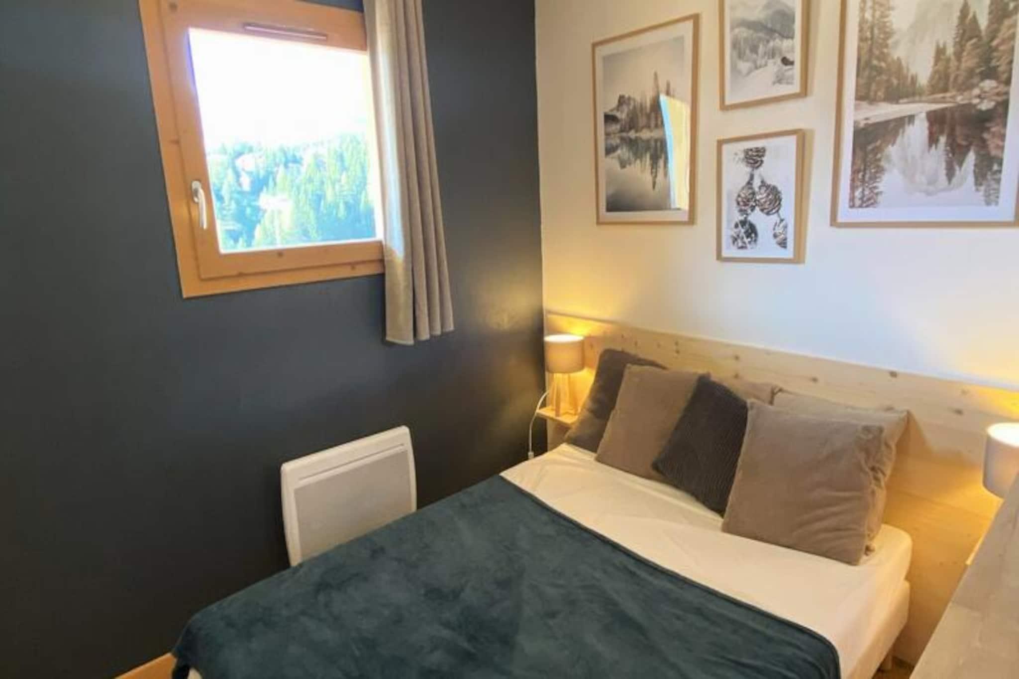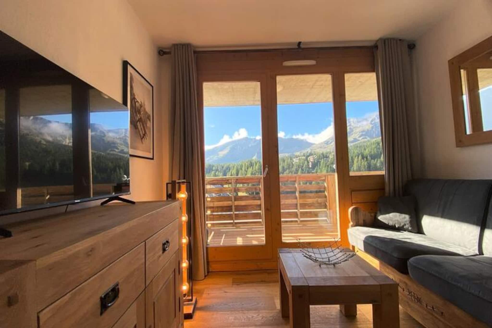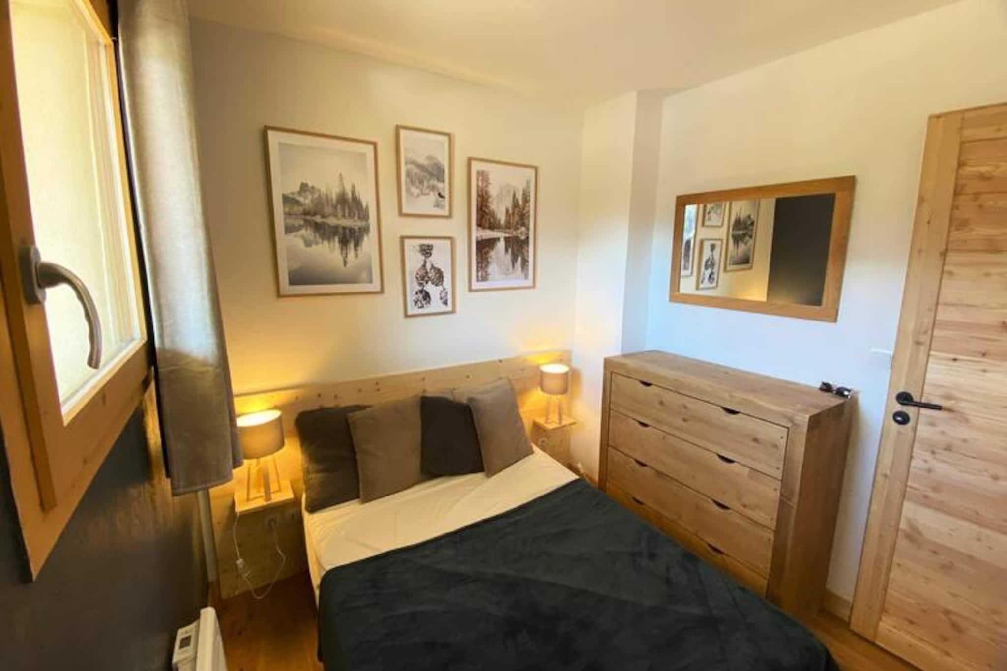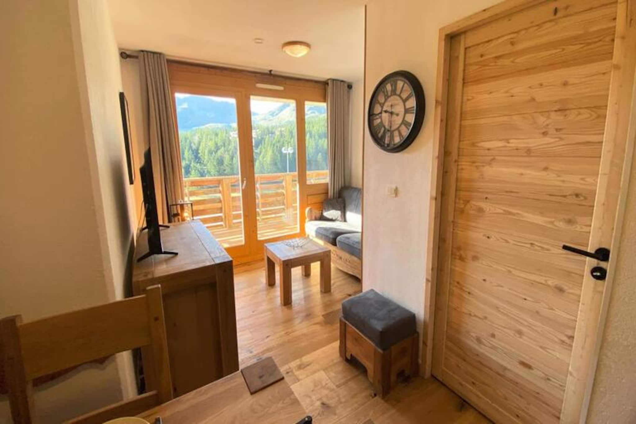 Højt oppe i de fredfyldte Dévoluy-bjerge tilbyder denne charmerende lejlighed et hyggeligt tilflugtssted for op til seks gæster, der blander alpin charme med moderne komfort. Fra din sydøstvendte balkon kan du nyde den betagende udsigt over Pic de Bure og det vidtstrakte Dévoluy-skiområde, hvor eventyr venter kun få skridt væk. Uanset om du er her for at stå på ski, vandre eller blot slappe af, er denne bolig perfekt beliggende til en mindeværdig bjergferie. \n\nLejligheden har en gennemtænkt planløsning med en dobbelt sovesofa i stuen, en køjesengsniche og et separat soveværelse med en dobbeltseng, hvilket sikrer komfort for familier eller små grupper. Det fuldt udstyrede tekøkken inkluderer en ovn, et stort køleskab, opvaskemaskine og både en filterkaffemaskine og en Nespresso-maskine, hvilket gør det nemt at tilberede solide måltider efter en dag med udforskning. Moderne bekvemmeligheder såsom et tv og gratis parkering omkring boligen gør dit ophold mere behageligt. For dem, der søger overdækket parkering, kan der lejes pladser efter reservation. \n\nBeliggende kun 100 meter fra ski-in/ski-out-gangbroen har du direkte adgang til turistkontoret og pisterne, hvilket gør det nemt at dykke ned i de alpine aktiviteter. Kæledyr er velkomne, og yderligere tjenester såsom leje af linned og rengøringspakker er tilgængelige for at forbedre dit ophold. \n\nUanset om du nyder bjergudsigten fra din balkon eller snowboarder i frisk puddersne på pisterne, tilbyder denne lejlighed i Superdévoluy den perfekte blanding af komfort, bekvemmelighed og naturlig skønhed til din næste alpine ferie.