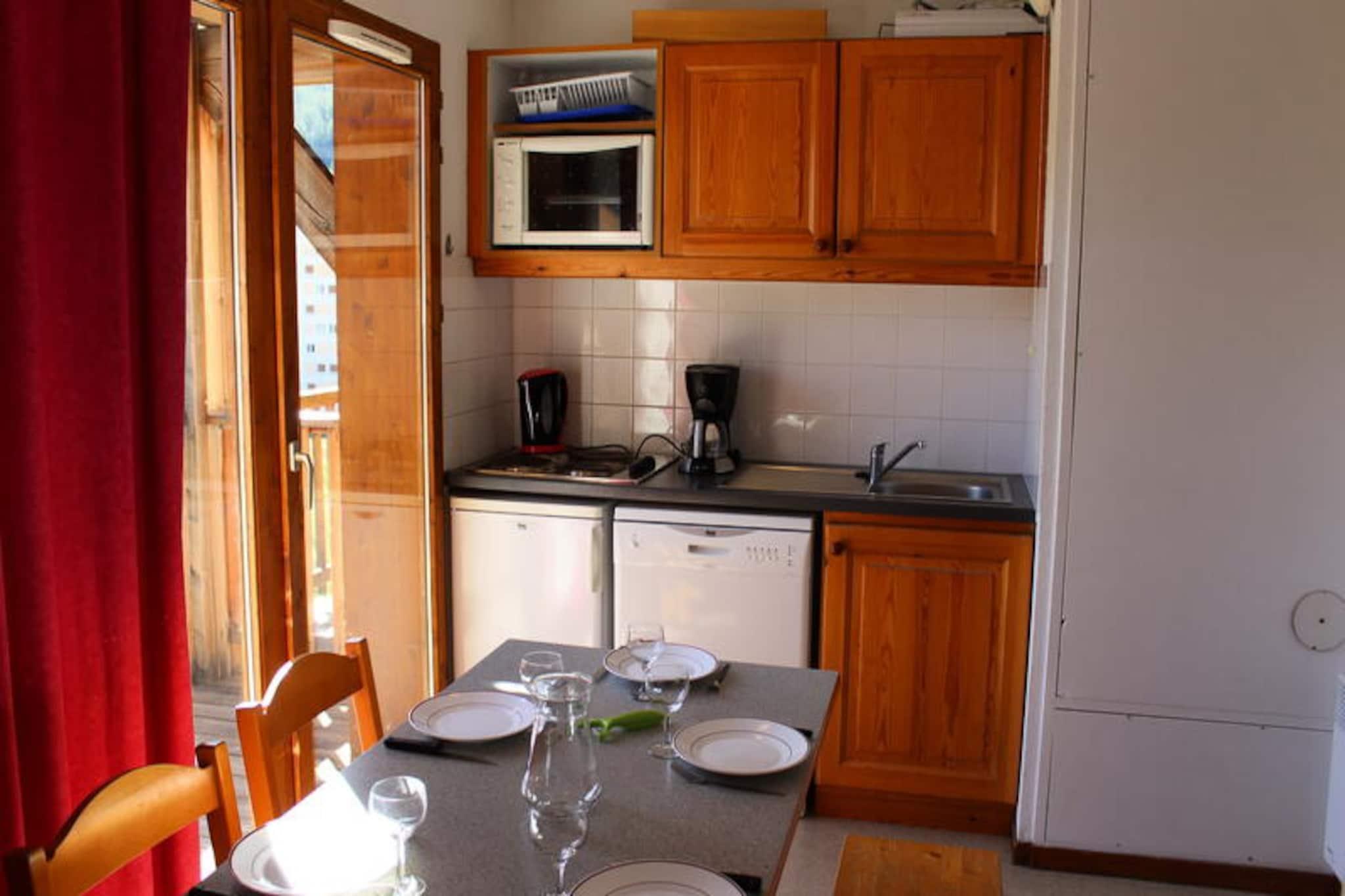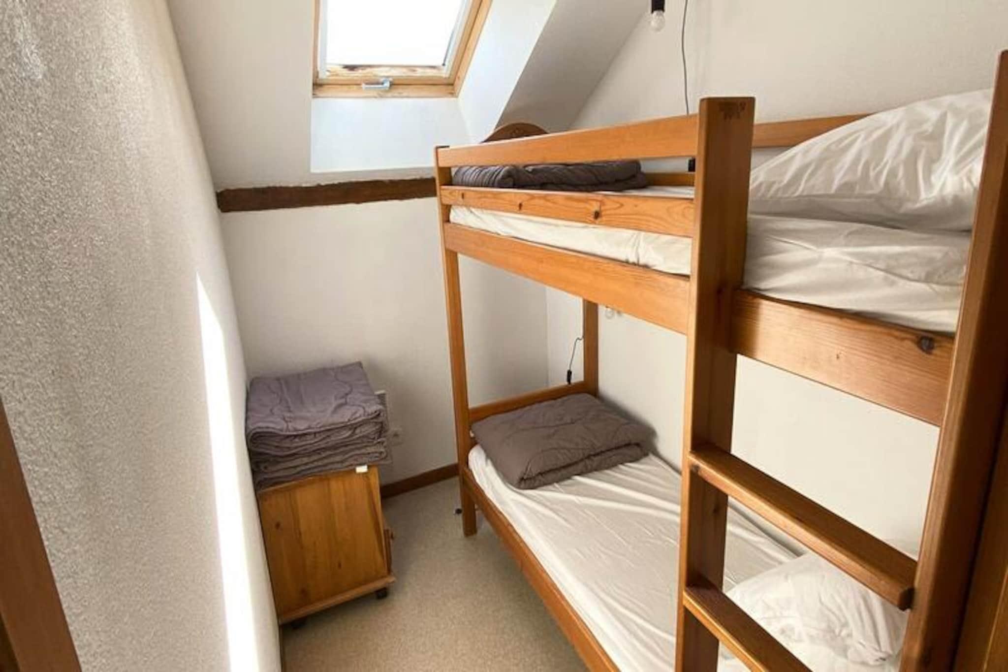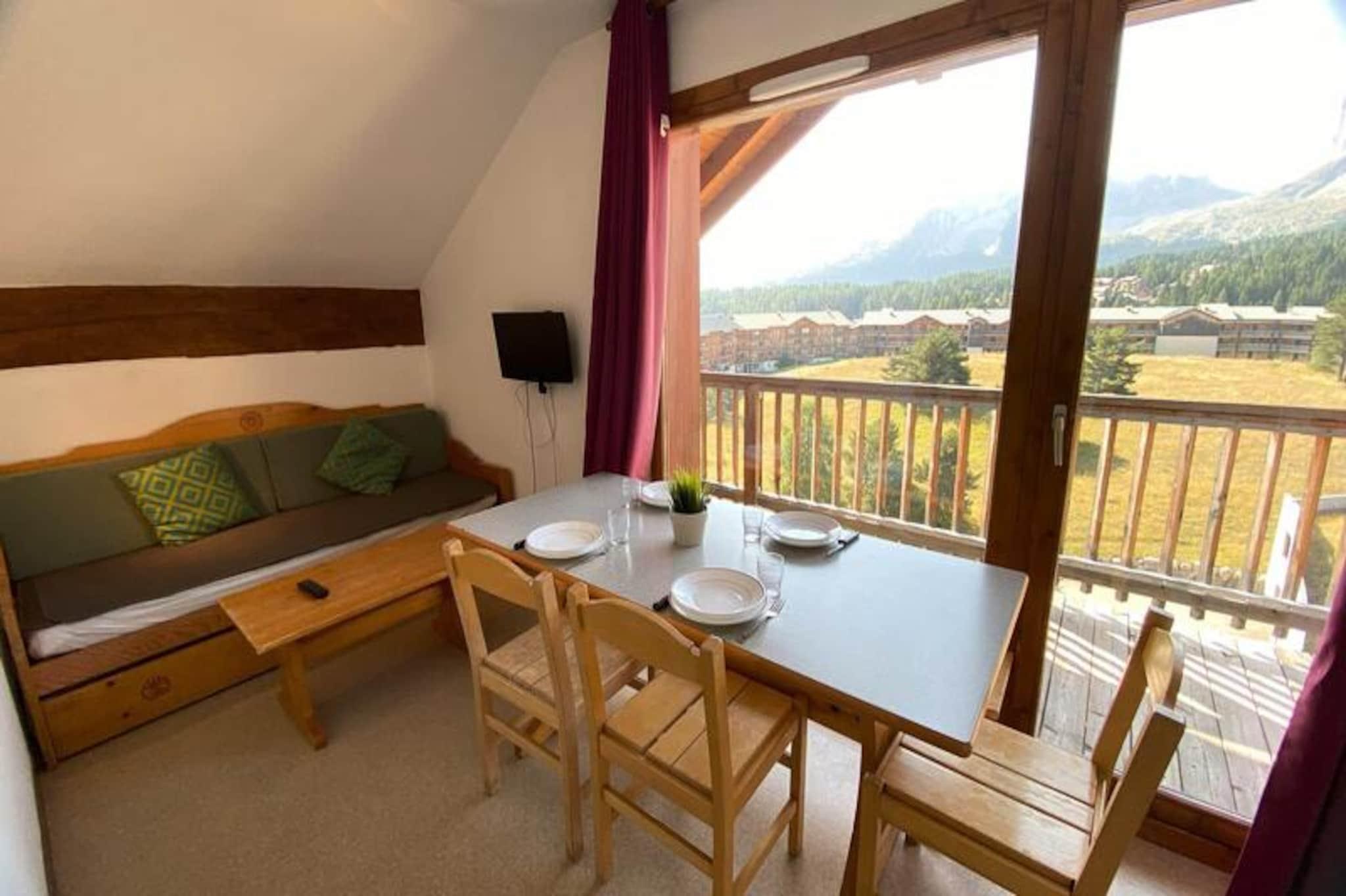 Højt oppe i de fredfyldte franske alper, hvor luften er frisk og udsigten uendelig, tilbyder denne charmerende lejlighed en rolig oase for både eventyrere og afslapningssøgende. Beliggende i et kompleks med otte traditionelle hytter, kan boligen prale af en varm alpin atmosfære med moderne komfort, der perfekt blander rustik charme med moderne bekvemmeligheder. Kun 200 meter fra pisterne er det et paradis for skientusiaster, der er ivrige efter at omfavne spændingen i bjergene. Denne lejlighed på fjerde sal har plads til op til seks gæster og byder på en hyggelig stue med en dobbelt sovesofa, en alkove med to køjesenge og et separat soveværelse med en komfortabel dobbeltseng. Det fuldt udstyrede tekøkken inkluderer opvaskemaskine, miniovn, brødrister og elkedel, hvilket sikrer, at du har alt, hvad du behøver for at tilberede solide måltider efter en dag på pisterne. En sydvendt balkon tilbyder en fantastisk udsigt over Pic de Bure, der inviterer dig til at slappe af med en varm drink, mens solen går ned bag bjergtoppene. Yderligere faciliteter inkluderer et tv, dyner og mulighed for at leje sengetøj for ekstra bekvemmelighed. Ejendommen tilbyder gratis parkering, med overdækkede pladser til rådighed mod et mindre gebyr, og det er kæledyrsvenligt for dem, der rejser med pelsede venner. Butikker og skiløjper ligger kun en kort gåtur væk, hvilket gør det nemt at få adgang til alt, hvad du behøver for en uforglemmelig alpin ferie. Uanset om du er her for at køre gennem frisk puddersne, udforske naturskønne stier eller blot slappe af i bjergluften, er denne lejlighed din perfekte base for en uforglemmelig ferie.