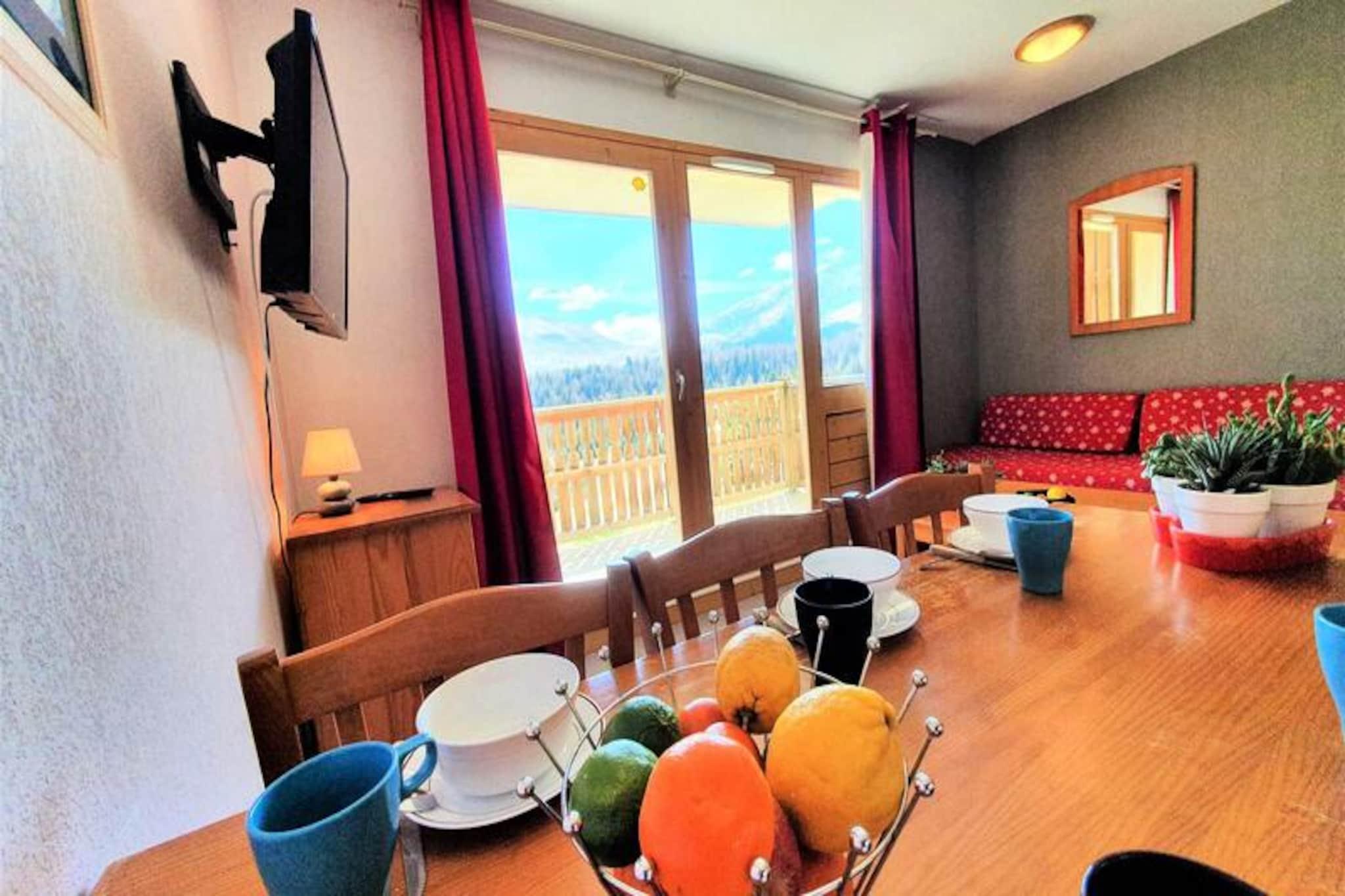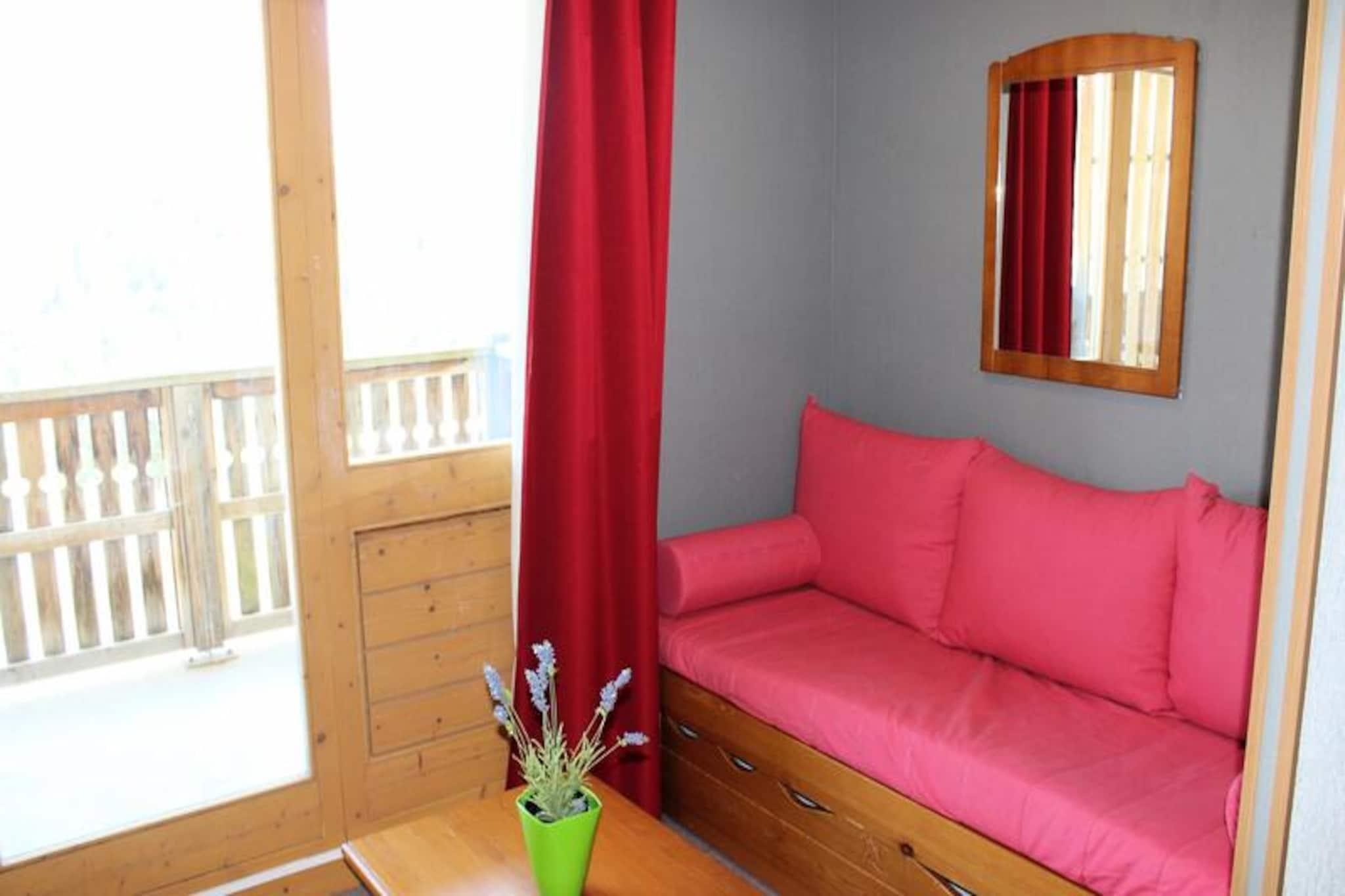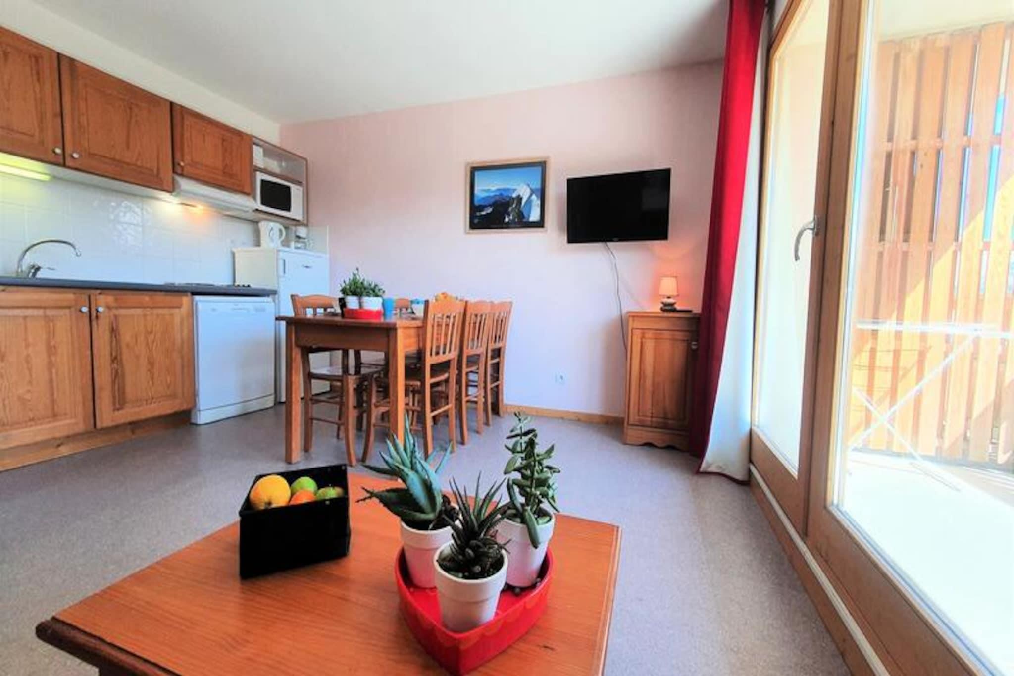 Residensen "Les Chaumettes" tilbyder lejligheder til 4 til 10 personer. Sydøstvendt. Beliggende cirka 80 meter fra gangbroen, der forbinder turistkontoret og skiløjperne. Smuk udsigt over de omkringliggende bjerge, inklusive Pic de Bure. Gratis parkering omkring residensen. Overdækkede parkeringspladser kan lejes for EURO50/uge, efter reservation. 2-værelses lejlighed med en sovealkove på 2. sal. Stue med en dobbelt udtræksseng. Sovelkove med køjesenge. Soveværelse med en dobbeltseng; lejligheden er udstyret med dyner. Køkken: Fuldt udstyret køkken, køleskab, opvaskemaskine, mikrobølgeovn, filterkaffemaskine, brødrister, elkedel. Sydøstvendt balkon TV inkluderet Smuk udsigt over Pic de Bure og skiløjperne. Skiløjper 100 m væk - direkte adgang via gangbro til turistkontoret og skiløjperne. Turistskat betales på stedet. Kæledyr tilladt (gebyr for kæledyr: EURO40). Linnedudlejning mulig. Slutrengøring (hvis indkvarteringen ikke efterlades i perfekt rengjort stand ved afrejse). Rengøringsgebyr varierer fra EURO55 til EURO120. Depositum (i euro) - 400 Opvarmning - 1
