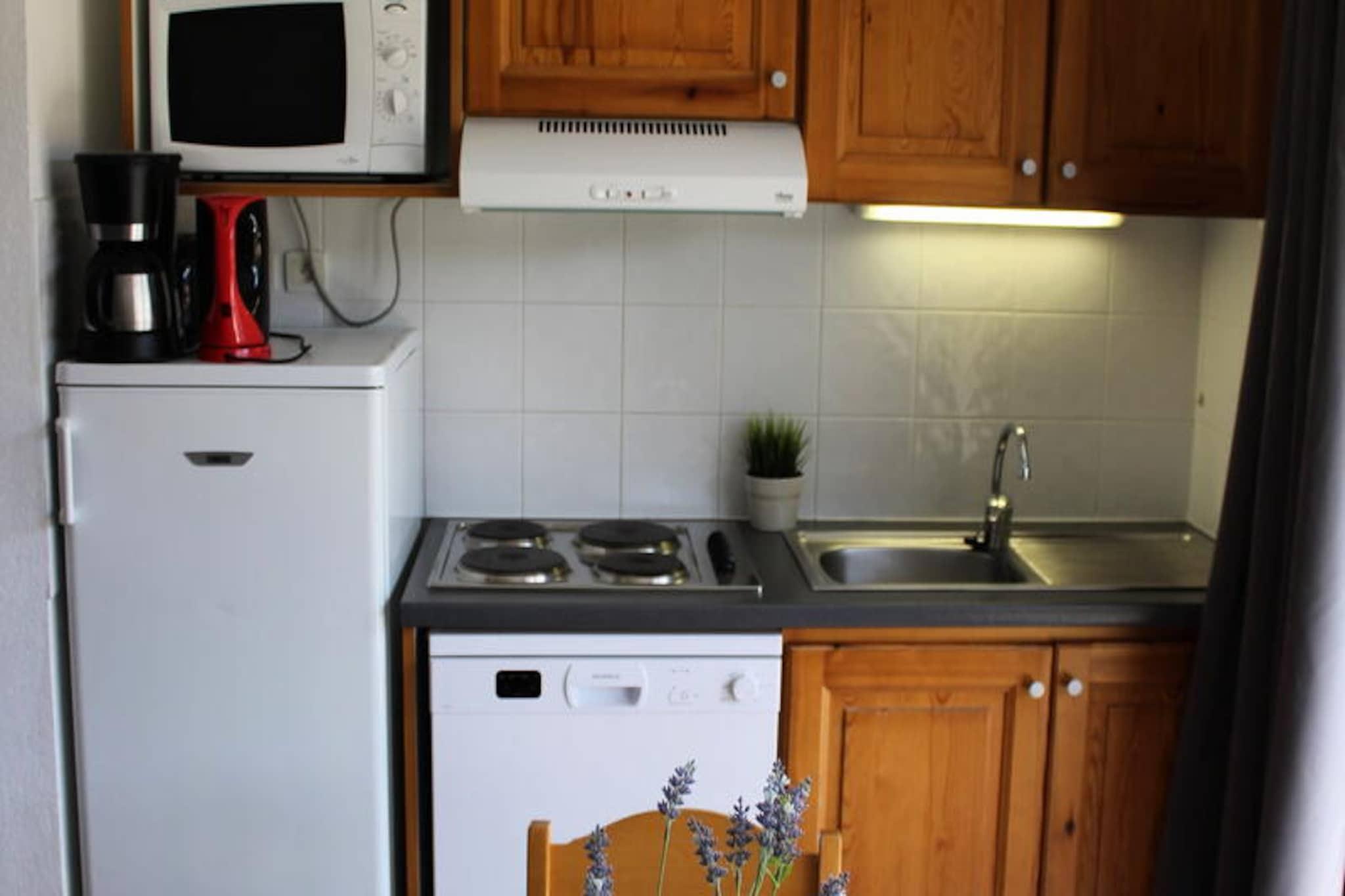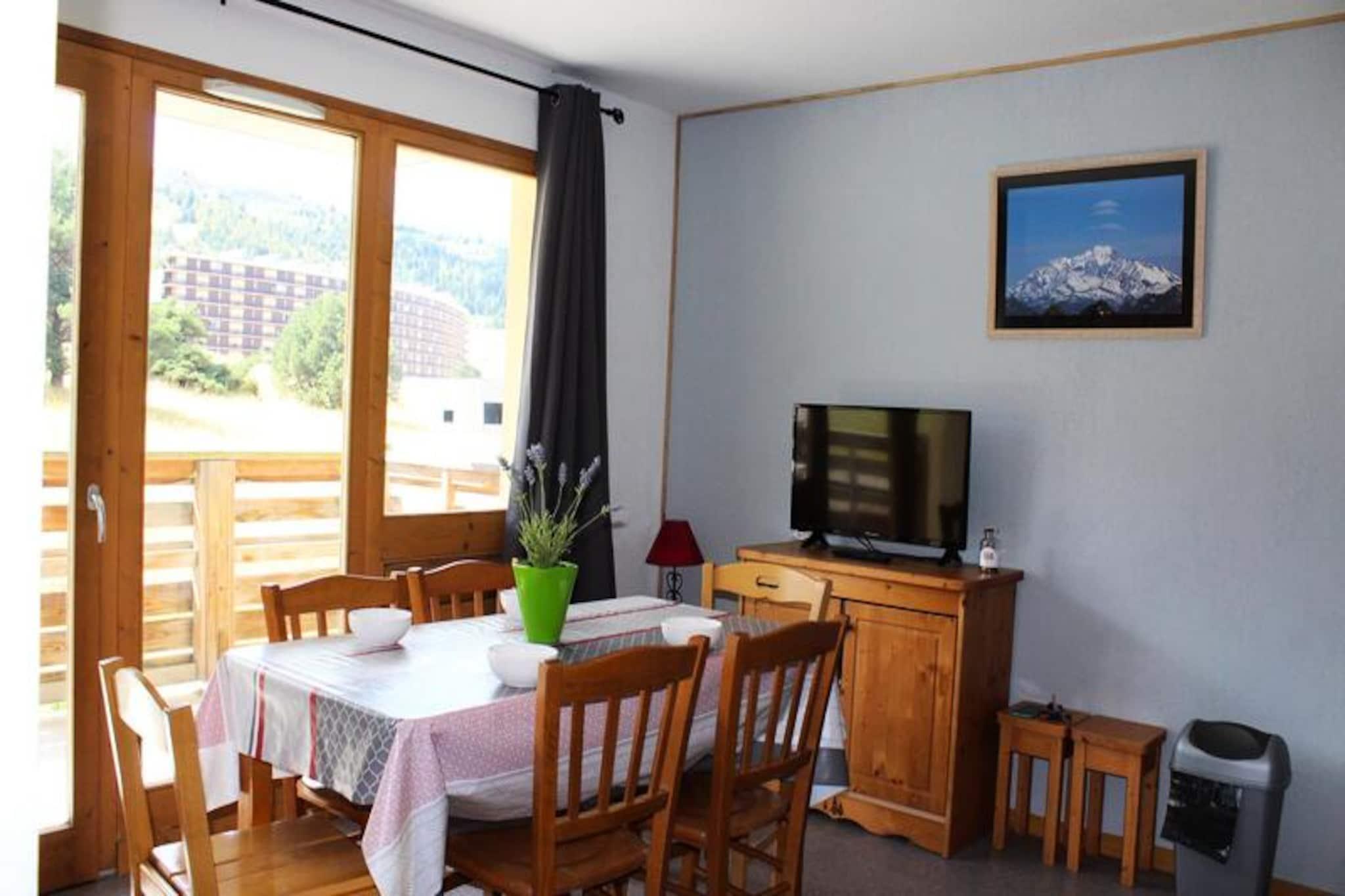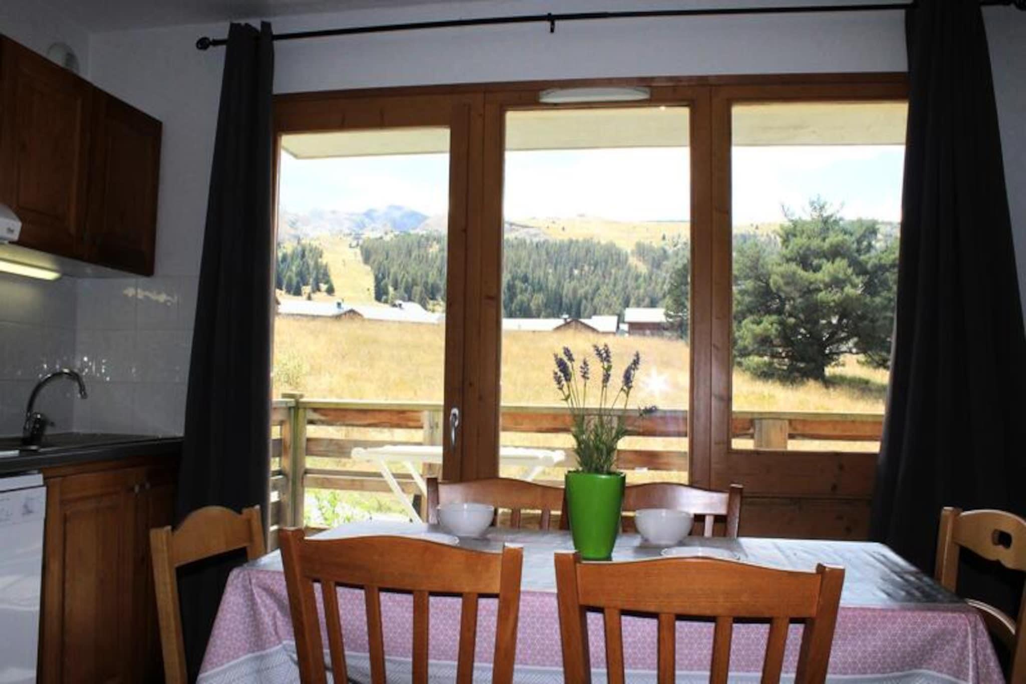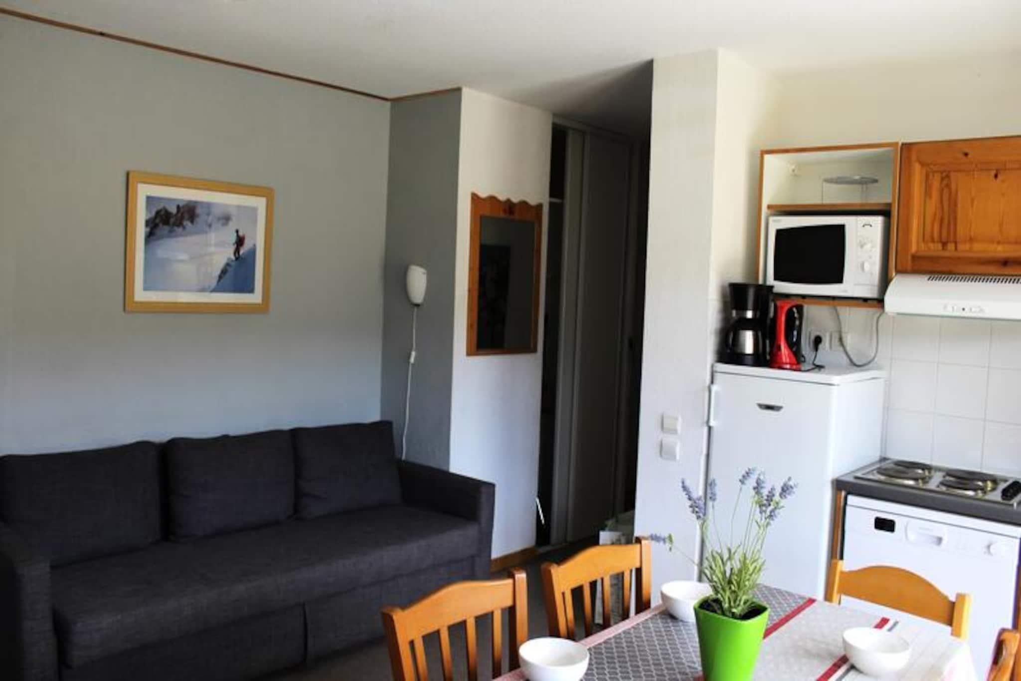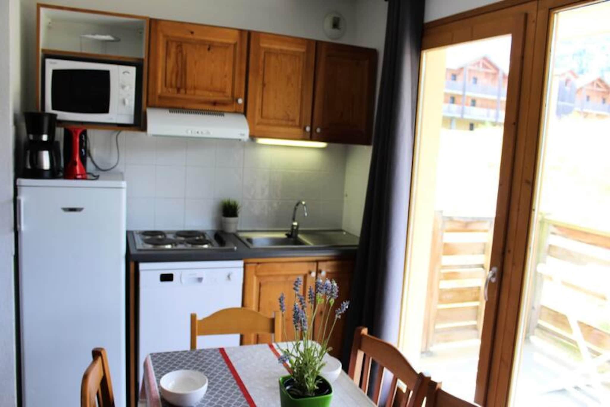 Residensen "Les Chaumettes" tilbyder lejligheder til 4 til 10 personer. Sydøstvendt. Beliggende cirka 80 meter fra gangbroen, der forbinder turistkontoret og skiløjperne. Smuk udsigt over de omkringliggende bjerge, inklusive Pic de Bure. Gratis parkering omkring residensen. Overdækkede parkeringspladser kan lejes for EURO50/uge, efter reservation. 2-værelses lejlighed med en sovealkove på 2. sal, tilgængelig med elevator. Stue med sovesofa, sovealkove med køjesenge, Soveværelse med to enkeltsenge, der kan skubbes sammen Vestvendt balkon Badekar med toilet, fuldt udstyret lejlighed. Køkken: Fuldt udstyret køkken, køleskab, opvaskemaskine, mikrobølgeovn, 4-blus kogeplader, filterkaffemaskine, brødrister, elkedel. TV inkluderet. Skilifte 200 m væk - direkte adgang via gangbro til turistkontoret og skiløjperne. Turistskat skal betales på stedet. Kæledyr tilladt (kæledyrsgebyr: EURO40). Leje af linned mulig. Slutrengøring (hvis boligen ikke efterlades i perfekt rengjort stand ved afrejse). Rengøringsgebyr fra EURO55 til EURO120. Depositum (i euro) - 400 Opvarmning - 1