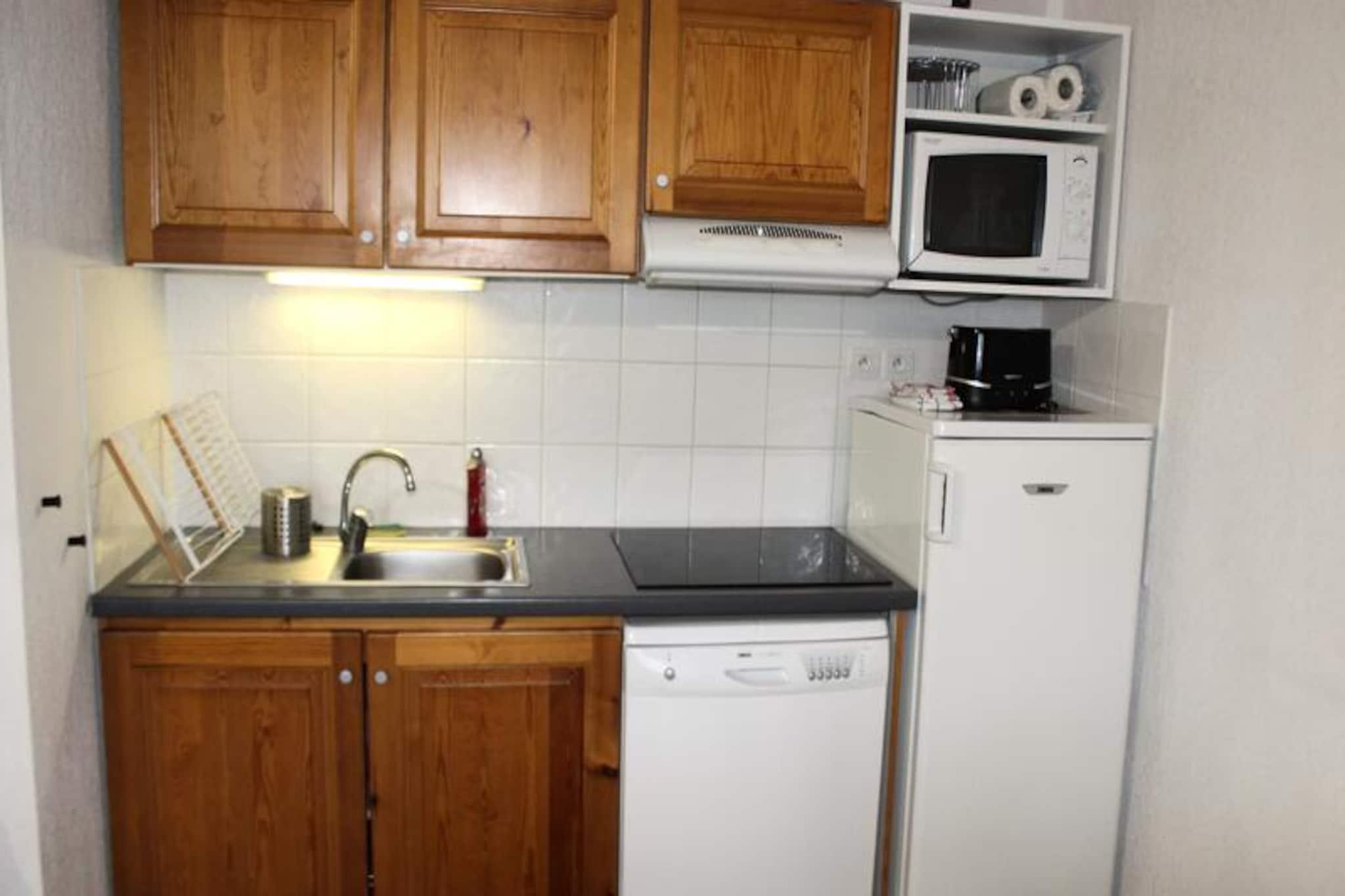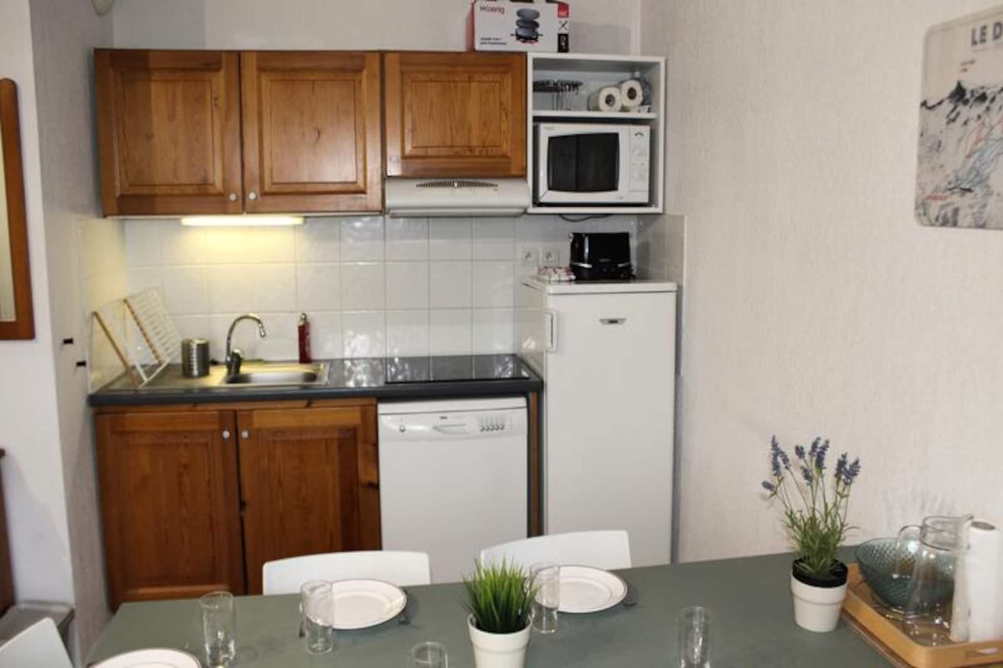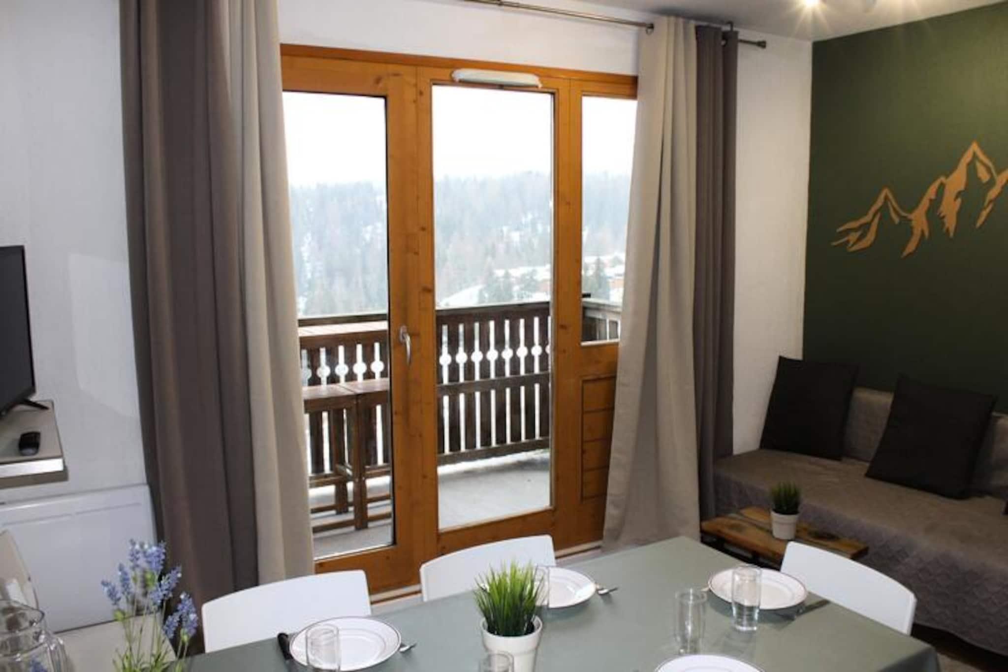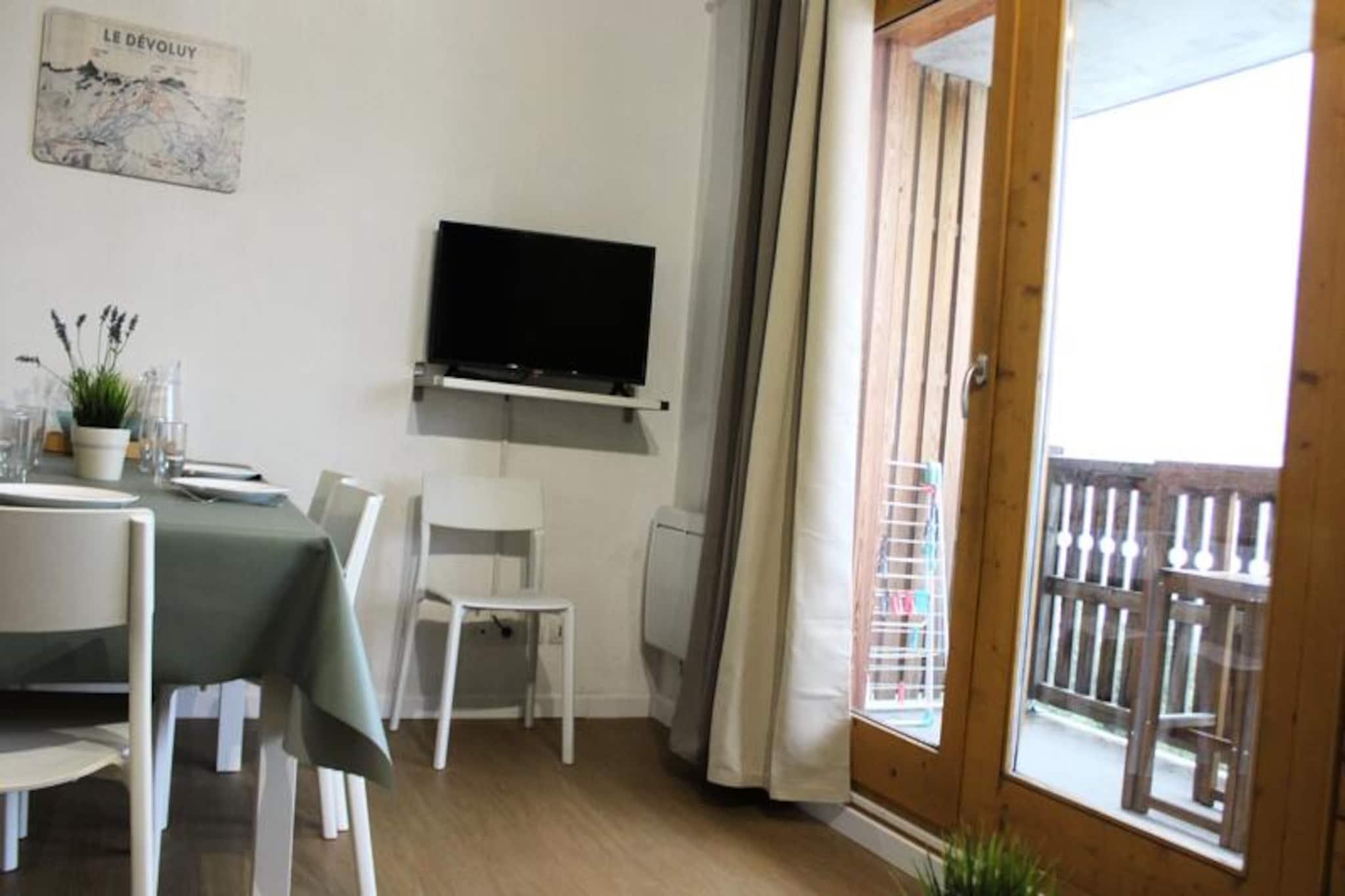 Med den majestætiske Pic de Bure som baggrund inviterer denne charmerende lejlighed i 'Les Chaumettes'-residensen dig til at opleve de franske alpers skønhed i enhver sæson. Kun 100 meter fra skiløjperne, tilgængelig via en bekvem gangbro, tilbyder dette sydøstvendte tilflugtssted en fantastisk udsigt over bjergene og nem adgang til alpine eventyr. Uanset om du er her for vintersport eller sommervandreture, sætter det betagende landskab tonen for en uforglemmelig ferie. \n\nDenne hyggelige 2-værelses lejlighed ligger på 4. sal og er tilgængelig med elevator. Den har plads til op til seks gæster. Stuen har en dobbelt udtræksseng, mens sovealkoven har køjesenge, og et separat soveværelse har en komfortabel dobbeltseng. Det fuldt udstyrede køkken kan prale af moderne apparater såsom opvaskemaskine, køleskab, raclettegrill og mere, hvilket gør madlavning til en leg. Gå ud på den sydøstvendte balkon for at nyde panoramaudsigten over Pic de Bure og de omkringliggende pister. Yderligere faciliteter inkluderer et tv, gratis parkering og valgfri overdækkede parkeringspladser til leje. \n\nResidensens førsteklasses beliggenhed placerer dig kun få skridt fra turistkontoret og skiløjperne, hvilket sikrer bekvemmelighed for alle dine alpine aktiviteter. Om sommeren kan du udforske de frodige stier og den pulserende lokale kultur, der gør denne region til en destination året rundt. Kæledyrsvenlig indkvartering og valgfri linnedudlejning bidrager til dit opholds bekvemmelighed, mens slutrengøring sikrer en bekymringsfri afrejse. \n\nUanset om du søger spændende skidage, rolige vandreture eller blot et fredeligt tilflugtssted i bjergene, tilbyder denne lejlighed den perfekte base for din alpine flugt.