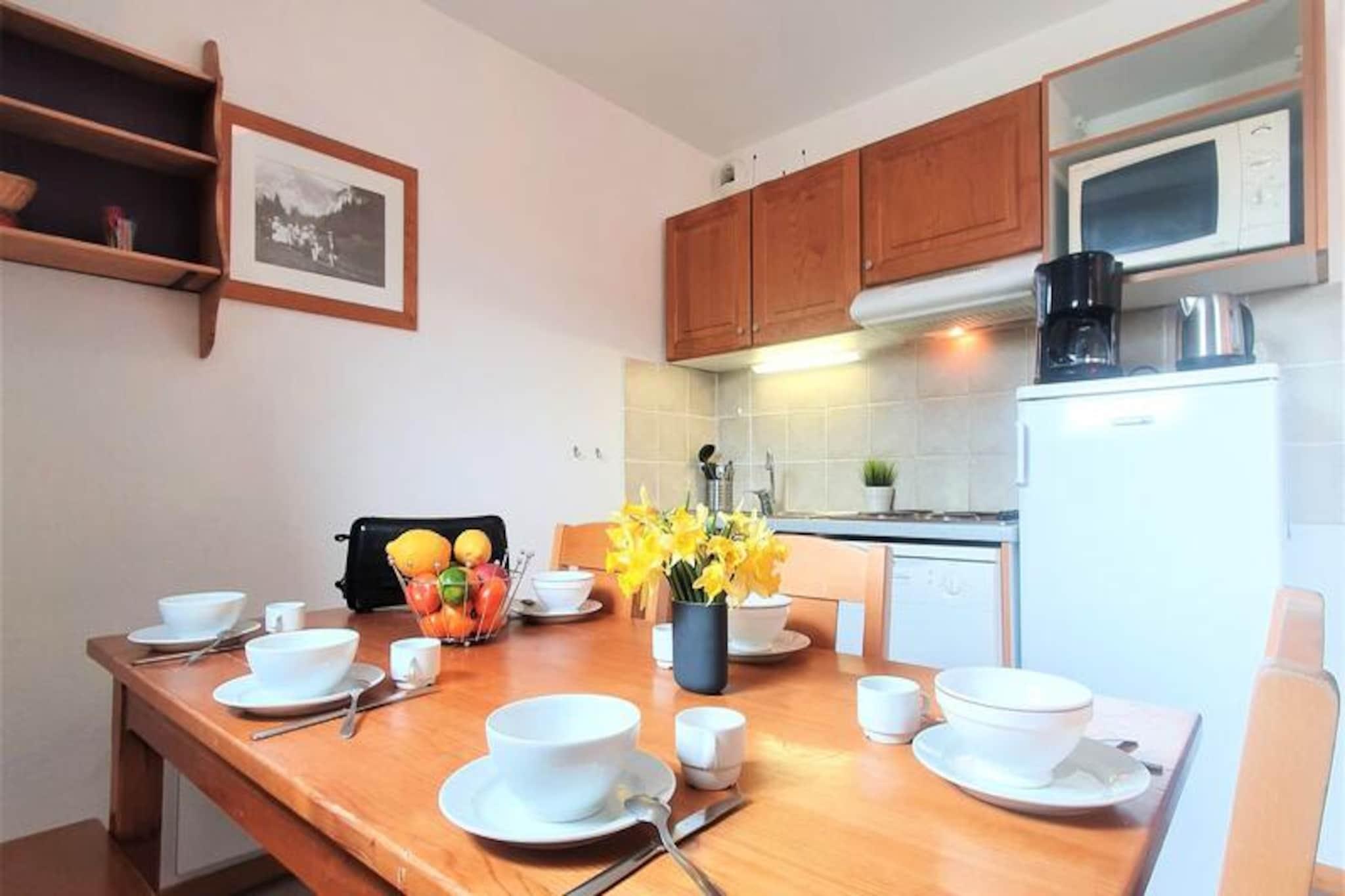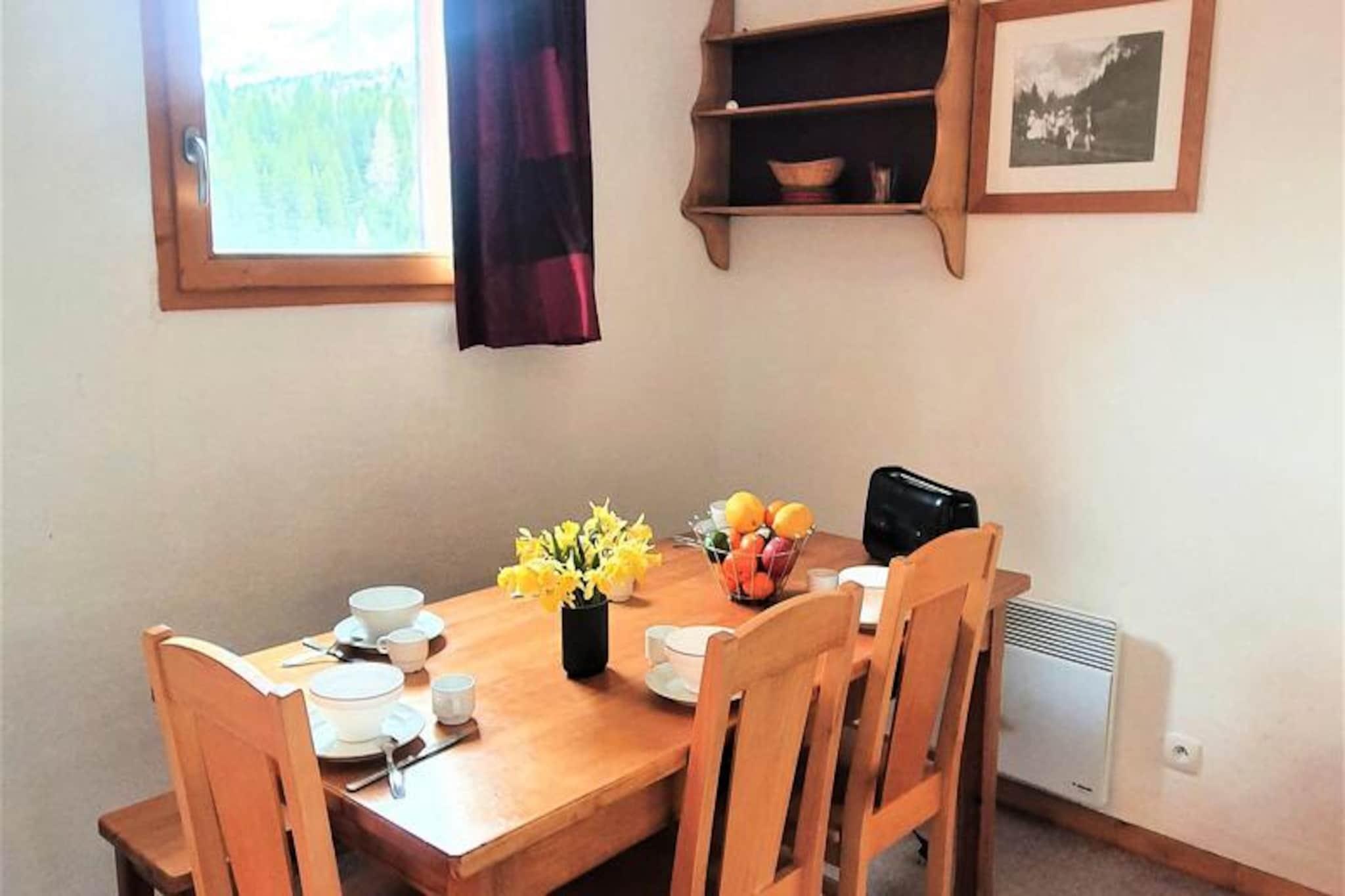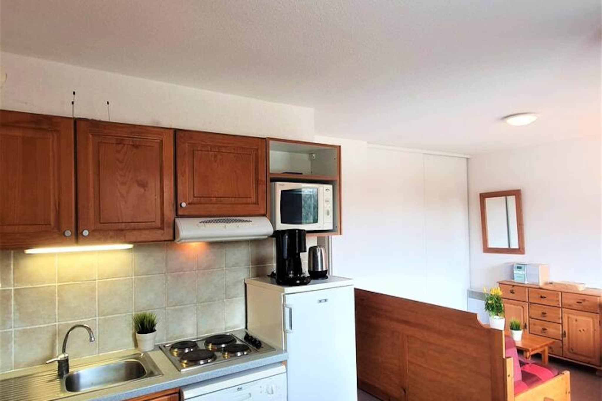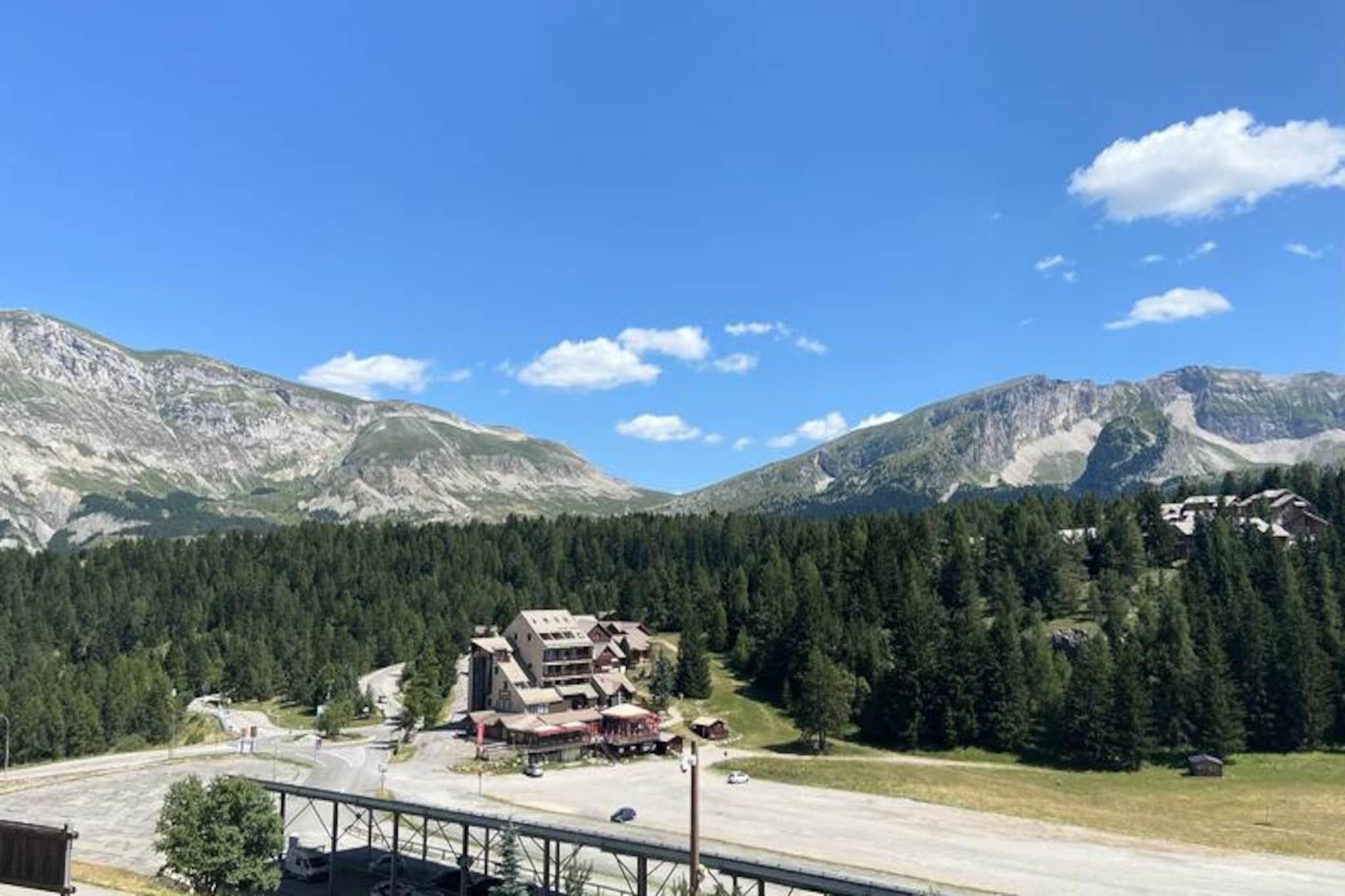 Hvor den majestætiske Pic de Bure rejser sig mod horisonten, tilbyder denne charmerende alpine lejlighed et roligt tilflugtssted kun få skridt fra pisterne. Med en betagende udsigt over de omkringliggende bjerge og en sydvendt balkon, der indfanger solens gyldne glød, er denne bolig et paradis for både naturelskere og eventyrlystne. Uanset om du er her for at grave dig gennem uberørt sne eller udforske stierne i de varmere måneder, sikrer beliggenheden, at hvert øjeblik er uforglemmeligt. Forbundet til pisterne via en bekvem gangbro, vil du finde dig selv fordybet i de franske alpers skønhed fra det øjeblik, du ankommer. \n\nLejligheden er designet til op til seks gæster, strækker sig over 40 m² og er omhyggeligt udstyret til at tilbyde komfort og funktionalitet. Stuen har en hyggelig dobbeltsovesofa, mens soveværelset kan prale af en luksuriøs queensize-seng (160x200 cm). En køjesengsniche giver alsidighed til familier eller grupper. Tekøkkenet er fuldt udstyret med moderne apparater, herunder opvaskemaskine, mikrobølgeovn/grill, vaskemaskine og endda en raclettegrill til autentiske alpine spiseoplevelser. Slap af med en kop kaffe brygget i filterkaffemaskinen, eller nyd en varm ristet brød fra brødristeren, mens du planlægger dagens eventyr.\n\nGratis parkering omgiver boligen, og overdækket parkering kan lejes efter reservation. Det nærliggende turistkontor, kun 50 meter væk, sikrer nem adgang til lokal information og tjenester. Kæledyr er velkomne på din ferie mod et mindre gebyr, og linned kan lejes for ekstra bekvemmelighed. Efter en dag med skiløb eller vandreture kan du slappe af i din lejligheds komfort, velvidende at slutrengøring kan arrangeres, hvis det er nødvendigt.\n\nMed sin uovertrufne beliggenhed, fantastiske udsigt og gennemtænkte faciliteter er denne alpine lejlighed den perfekte base for at skabe varige minder i de franske alper. Uanset om du søger spændende udendørsaktiviteter eller fredelige øjeblikke omgivet af natur, tilbyder denne bolig det hele.