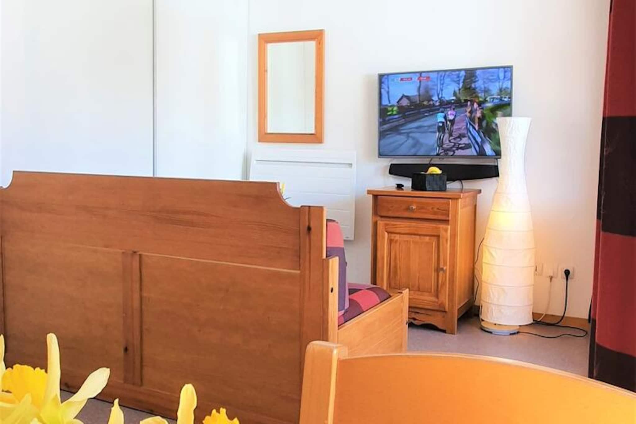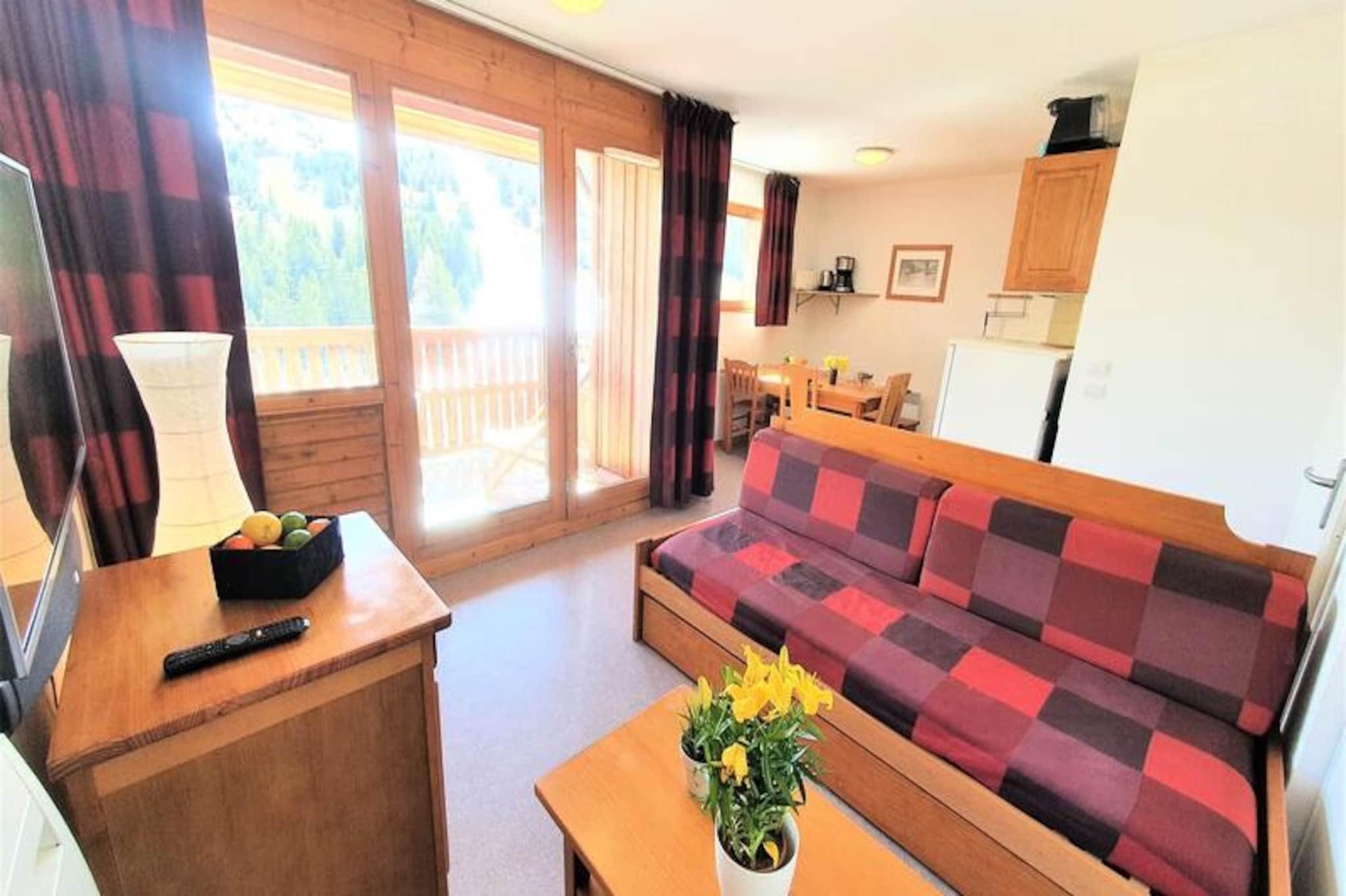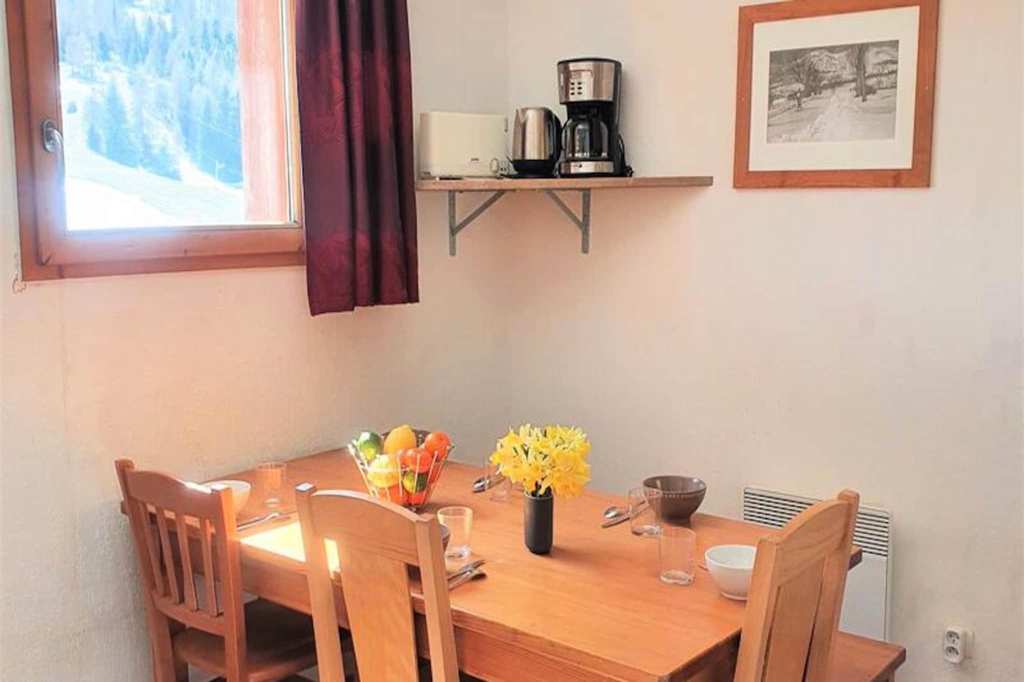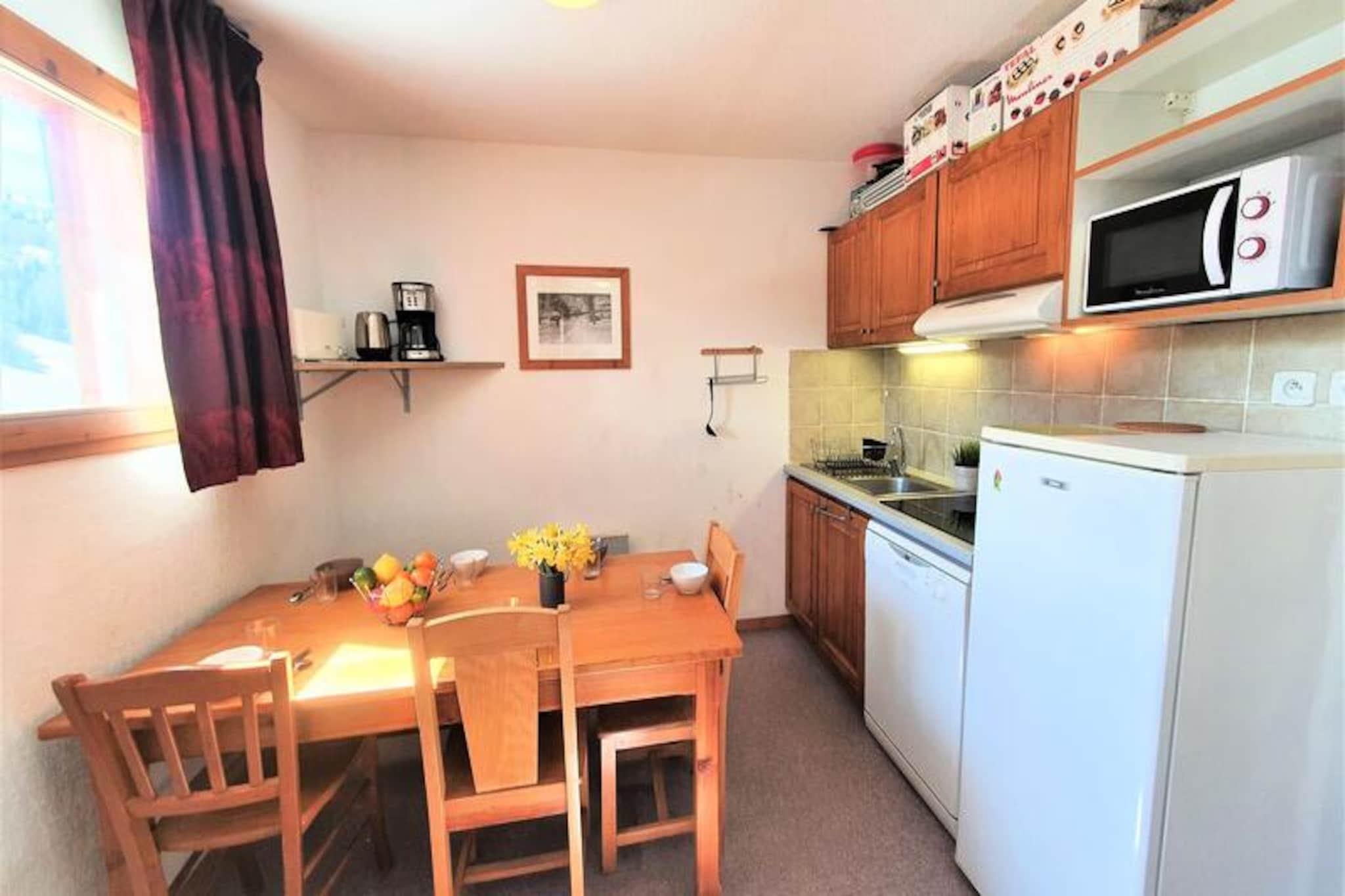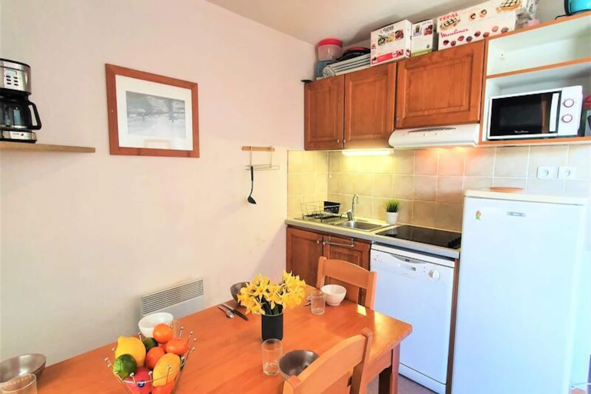 Højt over de fredfyldte landskaber i de franske alper tilbyder denne indbydende lejlighed et paradis for både bjergelskere og eventyrlystne. Med en betagende udsigt over den ikoniske Pic de Bure og direkte adgang til pisterne via en bekvem gangbro føles hvert øjeblik her som en hyldest til alpin skønhed. Uanset om du nipper til kaffe på den sydvendte balkon eller forbereder dig på en dag på ski, sætter den friske bjergluft og de fantastiske udsigter tonen for en uforglemmelig ferie. \n\nLejligheden er designet til komfortabelt at rumme op til seks gæster og kan prale af en gennemtænkt planløsning med en hyggelig stue med en udtrækssovesofa, et privat soveværelse med en luksuriøs dobbeltseng og en charmerende køjesengsniche. Det fuldt udstyrede tekøkken inkluderer moderne apparater såsom køleskab, opvaskemaskine, ovn, mikrobølgeovn og endda en raclettegrill til autentiske franske spiseoplevelser. Efter en dag på pisterne kan du slappe af med en film på fladskærms-tv'et eller blot slappe af i den varme atmosfære på dette alpine tilflugtssted. \n\nBeliggende kun 100 meter fra pisterne og turistkontoret tilbyder denne bolig uovertruffen bekvemmelighed. Gratis parkering omgiver bygningen, mens der kan lejes overdækket parkering. I nærheden finder du alt, hvad du behøver for et problemfrit ophold, fra skibokse til leje af sengelinned og kæledyrsvenlige muligheder. Den pulserende landsbyatmosfære sikrer nem adgang til lokale butikker og restauranter, hvilket tilføjer et strejf af charme til din alpine ferie. \n\nUanset om du er her for vintersport eller sommervandreture, er denne lejlighed din port til Superdévoluys vidundere. Lad den majestætiske Pic de Bure inspirere dine dage og skab varige minder i hjertet af de franske alper.