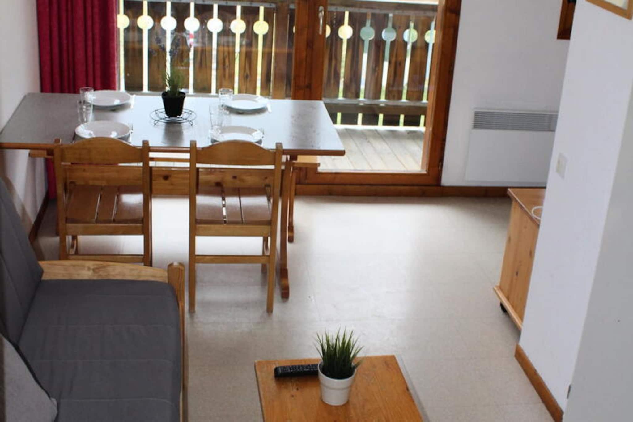 Højt over de fredelige landskaber i de franske alper tilbyder denne charmerende alpine residens en blanding af komfort og bekvemmelighed, kun 200 meter fra skiløjperne. Forestil dig at vågne op til den betagende udsigt over Pic de Bure fra din sydvendte balkon, mens du nipper til en varm kaffe, mens solen oplyser de snedækkede tinder. Uanset om du er her for spændende vintereventyr eller rolige sommerferier, er denne lejlighed din port til bjergenes vidundere. \n\nLejligheden er designet til at rumme op til seks gæster og har en hyggelig stue med en dobbelt sovesofa, en alkove med køjesenge og et privat soveværelse med en dobbeltseng. Det fuldt udstyrede tekøkken har opvaskemaskine, miniovn og essentielle apparater som en brødrister og elkedel, hvilket gør madlavning til en leg. Lejligheden er omhyggeligt møbleret med dyner og tilbyder et separat badeværelse og toilet for ekstra bekvemmelighed. Et privat skirum sikrer, at dit udstyr er klar til pisterne, mens gratis parkering omkring boligen og valgfri overdækket parkering giver praktiske løsninger til dit ophold.\n\nBoligen er ideelt placeret i nærheden af ??butikker og skiløjper, hvilket gør det nemt at få adgang til alt, hvad du behøver for en perfekt ferie. Om vinteren kan du nyde skiløb og snowboarding på uberørte stier, mens sommeren inviterer dig til at udforske vandrestier og alpine enge. Den nærliggende landsby tilbyder en smag af lokal kultur med charmerende restauranter og markeder, hvilket sikrer, at dit ophold bliver lige så berigende, som det er afslappende.\n\nUanset om du søger adrenalinfyldte dage på pisterne eller fredelige aftener under de alpine stjerner, tilbyder denne bolig et uforglemmeligt tilflugtssted i hjertet af de franske alper. Lad bjergenes skønhed og komforten i denne hyggelige lejlighed skabe minder, der vil vare livet ud.