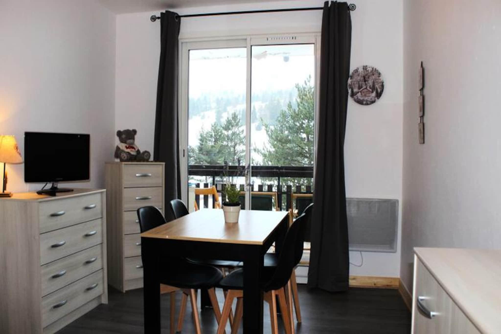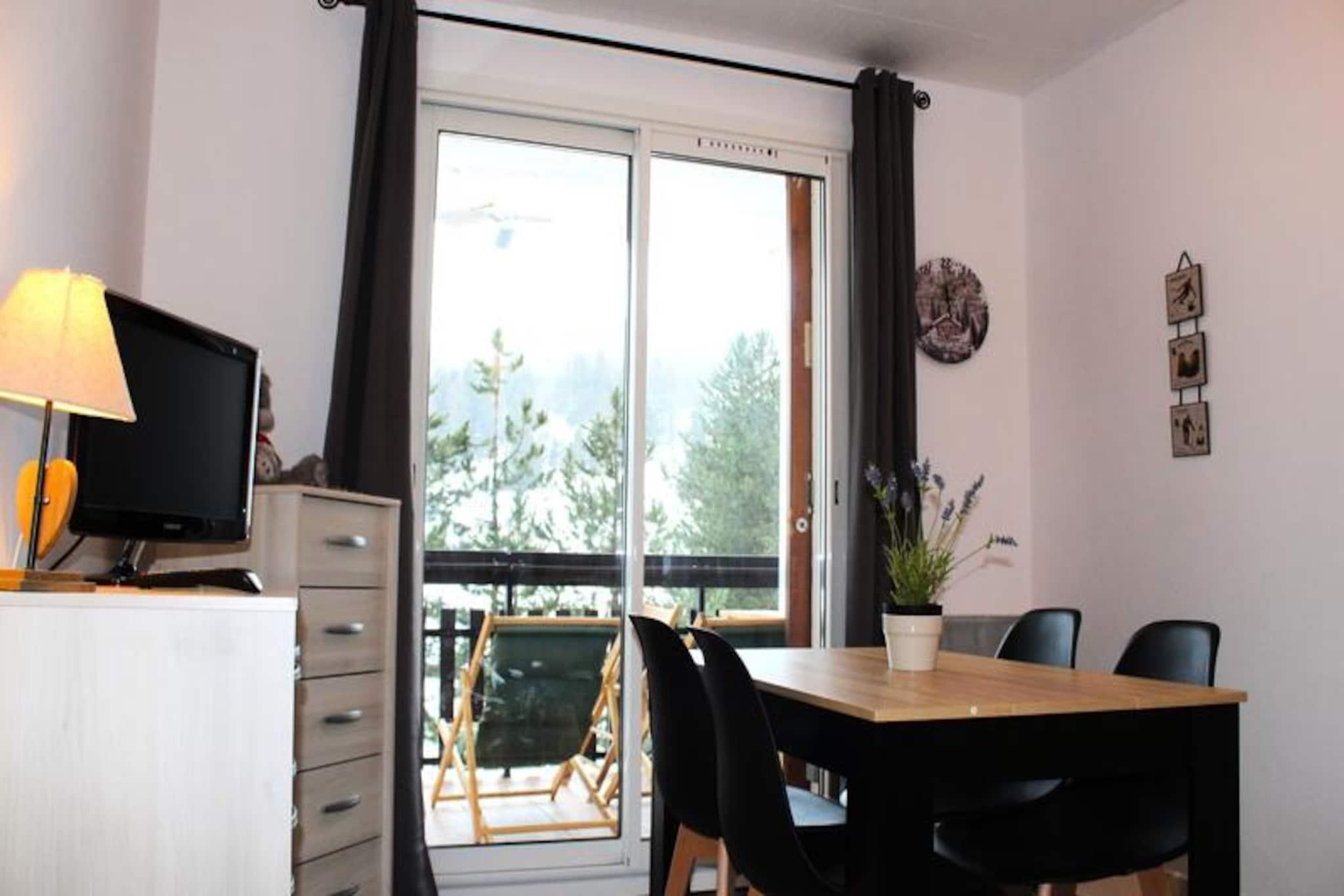 Nyd charmen ved de franske alper i denne dejlige bolig, perfekt beliggende ved foden af ??Superdévoluy-pisterne. Med direkte adgang til skiområdet og en betagende udsigt over den majestætiske Pic de Bure tilbyder denne ejendom et idyllisk tilflugtssted for både vintersportsentusiaster og naturelskere. Boligen er problemfrit forbundet med Bois d'Aurouze, hvor du finder butikker, tjenester og alt hvad du behøver for et behageligt ophold kun få skridt væk. Denne hyggelige 2-værelses lejlighed på 2. sal, tilgængelig med elevator, er designet til at rumme op til fire gæster. Stuen har en komfortabel sovesofa, mens soveværelset har en dobbeltseng adskilt af en skillevæg for ekstra privatliv. Det veludstyrede tekøkken indeholder køleskab, lille fryser, kogeplader, opvaskemaskine, multifunktionsovn og endda en Bosch kapselkaffemaskine til din morgenkaffe. Efter en dag på pisterne kan I samles omkring raclettegrillen til et traditionelt alpint måltid. Brusebadeværelset med toilet sikrer bekvemmelighed, og tv'et og den kæledyrsvenlige politik gør det til et indbydende sted for alle. Træd ud på den store sydvendte balkon og nyd panoramaudsigten over skiområdet og den omkringliggende alpine skønhed. Der er parkering omkring ejendommen, med mulighed for overdækket parkering mod et ekstra gebyr. Uanset om du er her for at stå på ski, vandre eller blot slappe af, gør den uovertrufne beliggenhed og faciliteterne denne ejendom til et perfekt valg til din alpine ferie. Skab uforglemmelige minder i dette fredfyldte bjergparadis, hvor den friske alpine luft og de fantastiske landskaber sætter scenen for en virkelig magisk ferie.