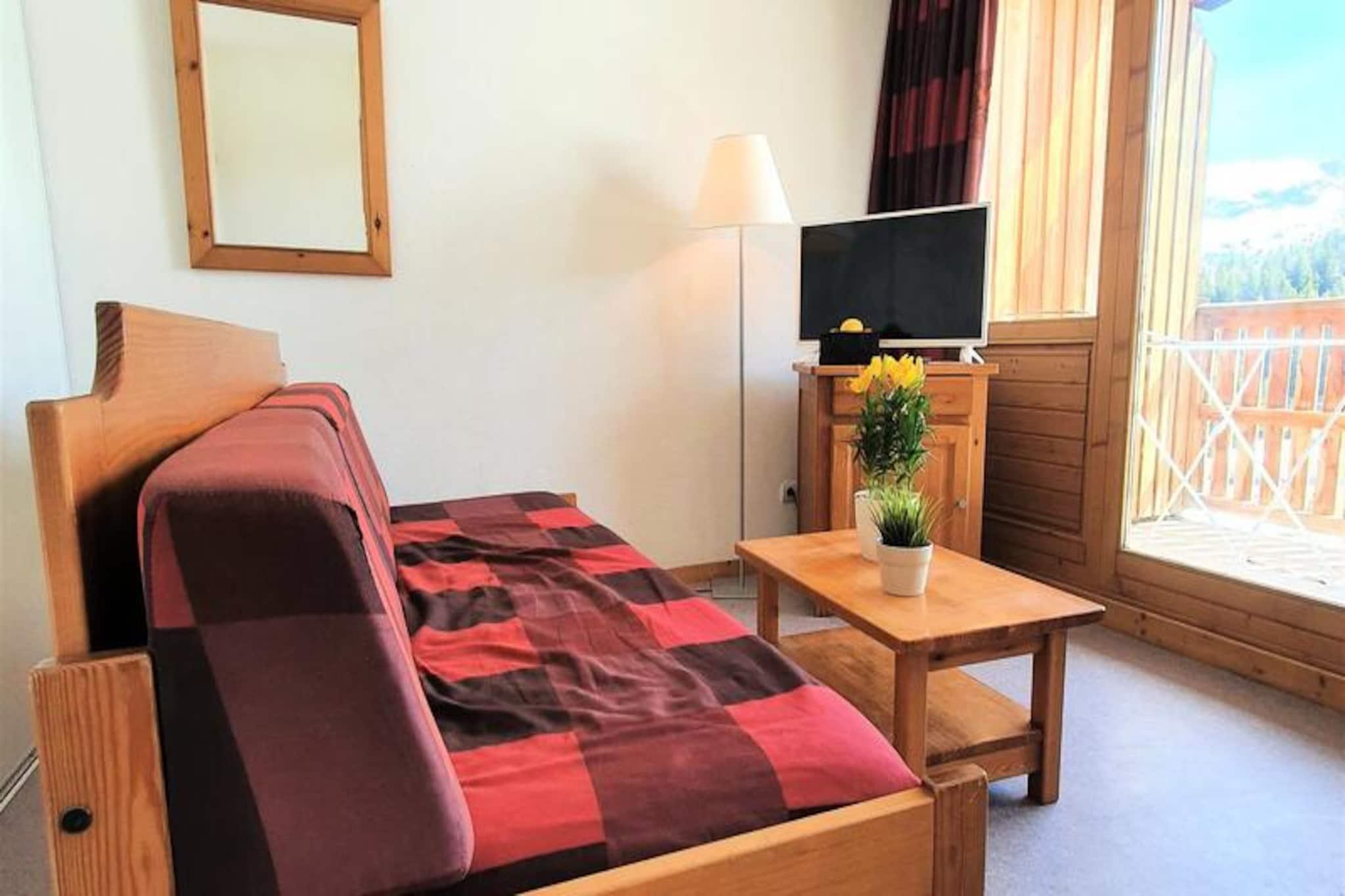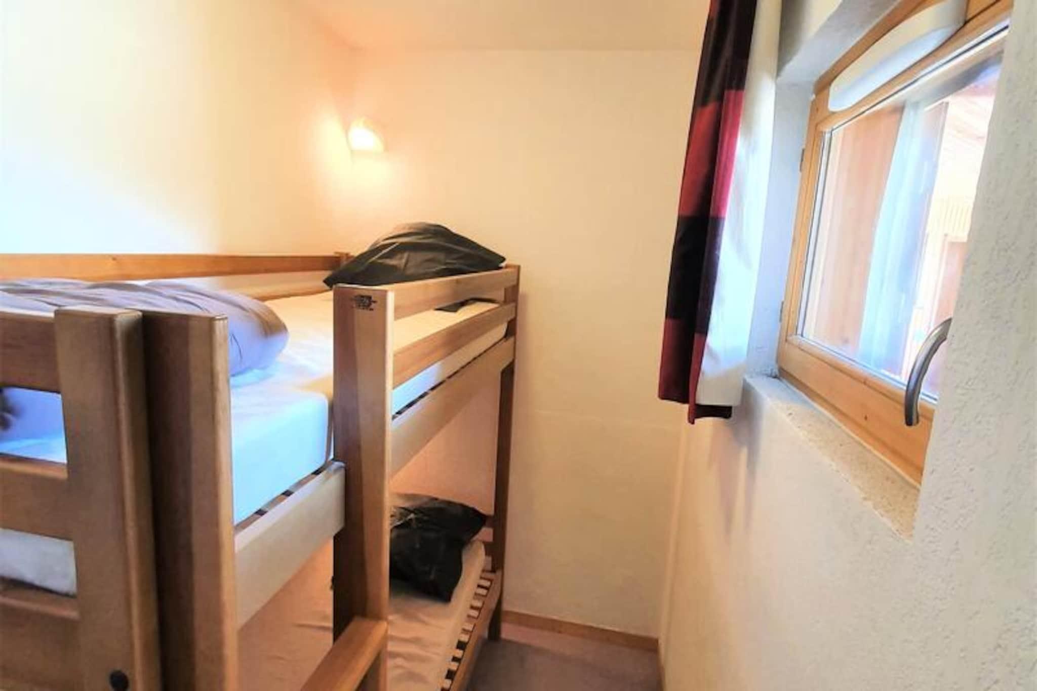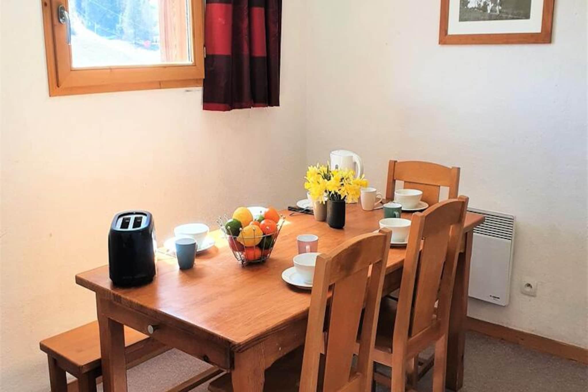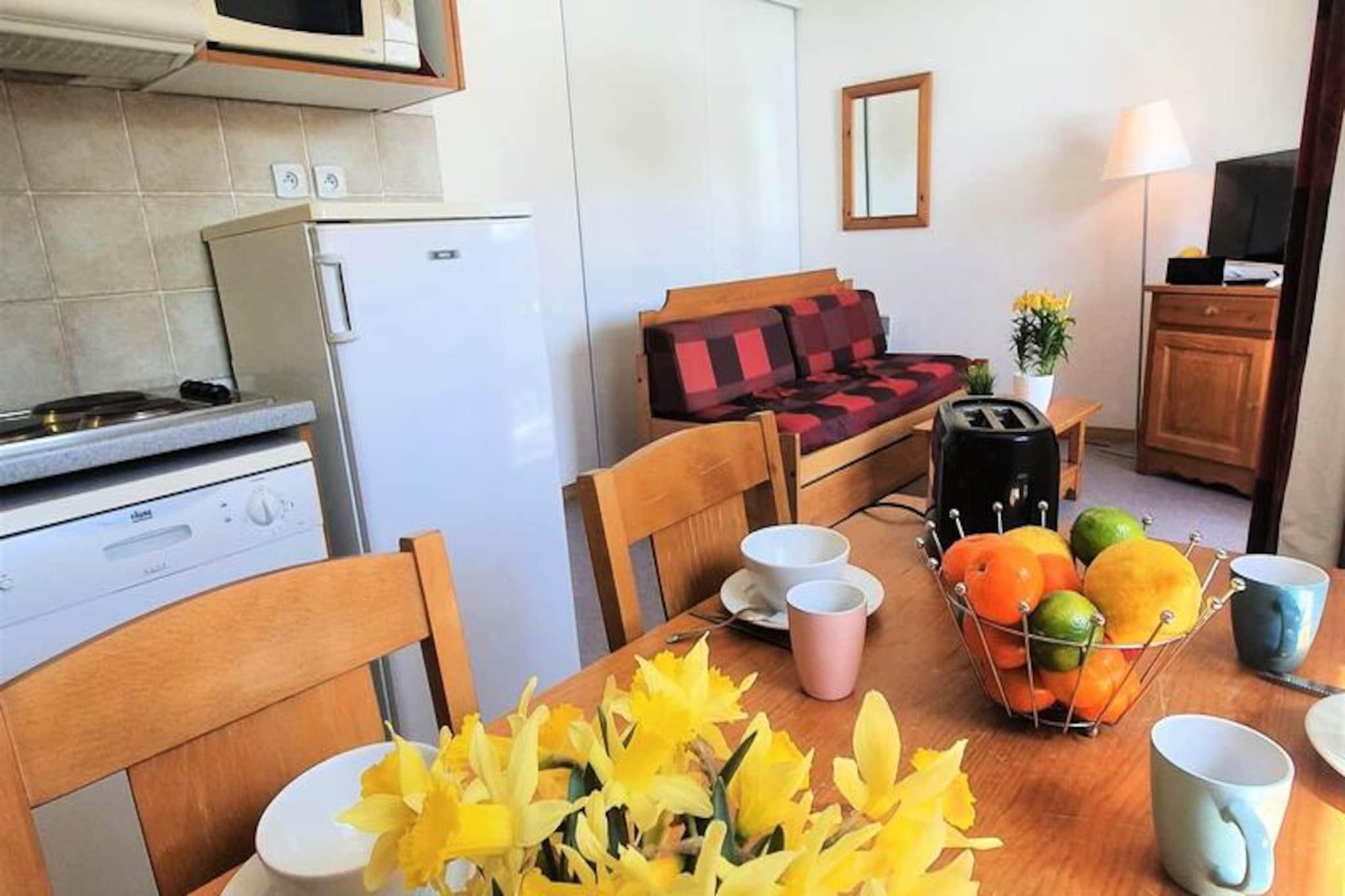 Højt over Superdévoluys fredfyldte landskaber tilbyder denne charmerende lejlighed et hyggeligt tilflugtssted med en betagende udsigt over den majestætiske Pic de Bure. Forestil dig at vågne op til solens gyldne nuancer, der reflekteres i de omkringliggende tinder, træde ud på din sydvendte balkon for at indånde den friske alpeluft og forberede dig på en dag med eventyr i hjertet af de franske alper. Uanset om du besøger stedet for vintersport eller sommervandreture, lover denne bolig et uforglemmeligt ophold. \n\nLejligheden er designet til op til seks gæster og kan prale af en gennemtænkt planløsning med en komfortabel stue med en udtrækssovesofa, et privat soveværelse med en blød dobbeltseng og en hyggelig alkove med køjesenge. Det veludstyrede tekøkken inkluderer opvaskemaskine, mikrobølgeovn, filterkaffemaskine, brødrister og elkedel, hvilket sikrer alle hjemmets bekvemmeligheder. Moderne bekvemmeligheder såsom et tv og et skiskab på samme etage bidrager til bekvemmeligheden, mens elevatoren gør adgangen ubesværet. \n\nBoligen ligger kun 100 meter fra pisterne og tilbyder direkte adgang via en gangbro, hvilket gør den ideel for skientusiaster. Gratis parkering omgiver ejendommen, og der kan lejes overdækket parkering. I nærheden finder du vigtige faciliteter som turistkontoret, der sikrer et problemfrit og behageligt ophold. Kæledyr er velkomne, og yderligere tjenester som leje af linned og slutrengøring er tilgængelige for at forbedre din oplevelse. \n\nUanset om du søger spændende nedkørsler, naturskønne stier eller blot en rolig flugt i bjergene, er denne lejlighed din port til Superdévoluys vidundere. Lad skønheden i Pic de Bure og charmen i de franske alper skabe minder, der vil vare livet ud.