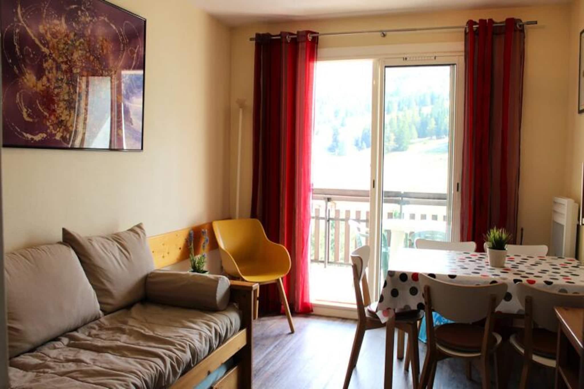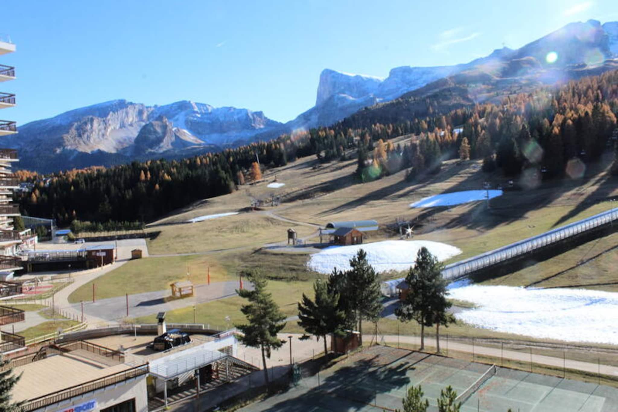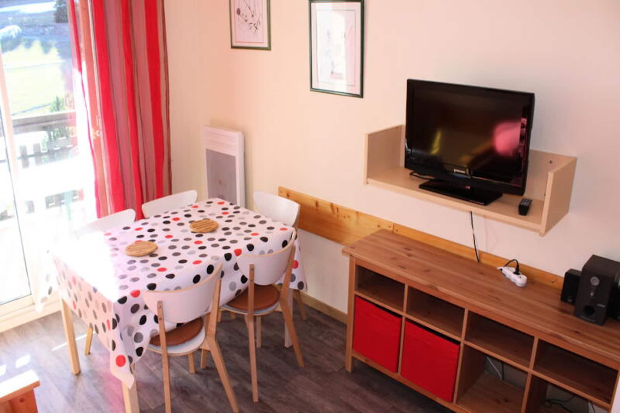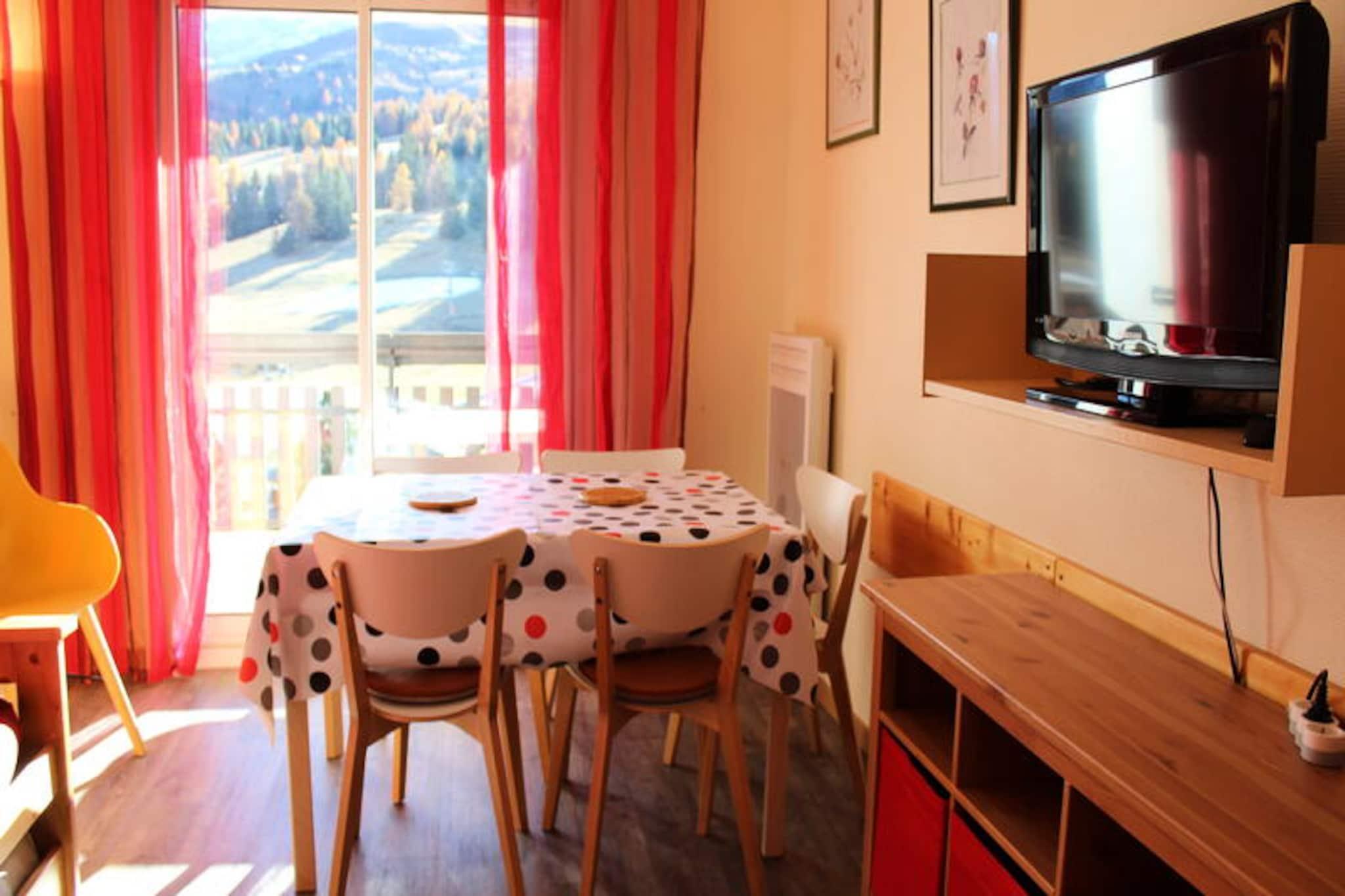 Højt over Superdévoluys fredfyldte landskaber tilbyder denne indbydende lejlighed en plads på første række til den betagende Pic de Bure og pisterne. Forestil dig at vågne op til panoramaudsigt fra din sydvendte balkon, hvor solen bader skiområdet i gyldent lys, og træde direkte ud på pisterne for en dag med alpint eventyr. Uanset om du er her for at grave dig gennem frisk puddersne eller blot nyde roen i bjergene, lover denne bolig et uforglemmeligt ophold i hjertet af de franske alper. \n\nLejligheden er designet til komfort og praktisk anvendelighed og har plads til op til fem gæster med en hyggelig stue med en udtræksseng og et separat soveværelse med køjesenge. Det veludstyrede tekøkken inkluderer moderne apparater såsom opvaskemaskine, vaskemaskine, ovn og raclettegrill, hvilket gør det nemt at tilberede solide måltider efter en dag på pisterne. Et rummeligt badeværelse med badekar tilføjer et strejf af afslapning, mens tv'et og den sydvendte balkon sikrer øjeblikke med afslapning omgivet af fantastiske alpine udsigter. \n\nBekvemt placeret ved foden af ??pisterne har denne lejlighed en intern forbindelse til Bois d'Aurouze, hvor butikker, serviceydelser og spisesteder venter. Der er parkeringspladser omkring bygningen, og overdækkede parkeringspladser kan lejes, hvilket sikrer nem adgang. Kæledyr er velkomne, og yderligere tjenester såsom leje af linned og slutrengøring giver fleksibilitet under dit ophold. \n\nUanset om du søger spændende skiløjper, fredelige bjergvandringer eller blot et hyggeligt tilflugtssted med enestående udsigt, er denne lejlighed i Les Issarts Residence din indgang til skønheden og eventyret i Superdévoluy. Lad charmen i de franske alper inspirere din næste ferie.