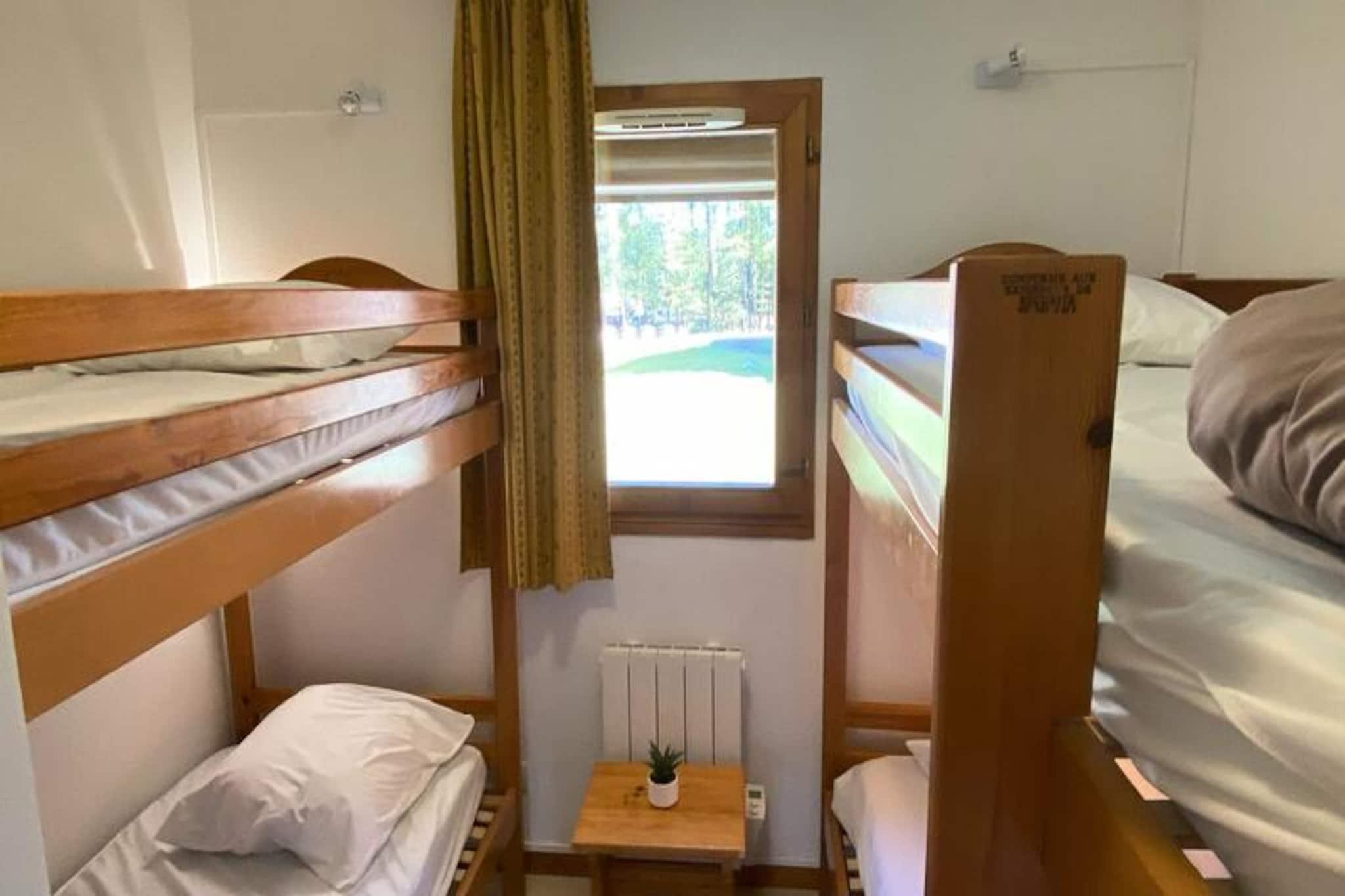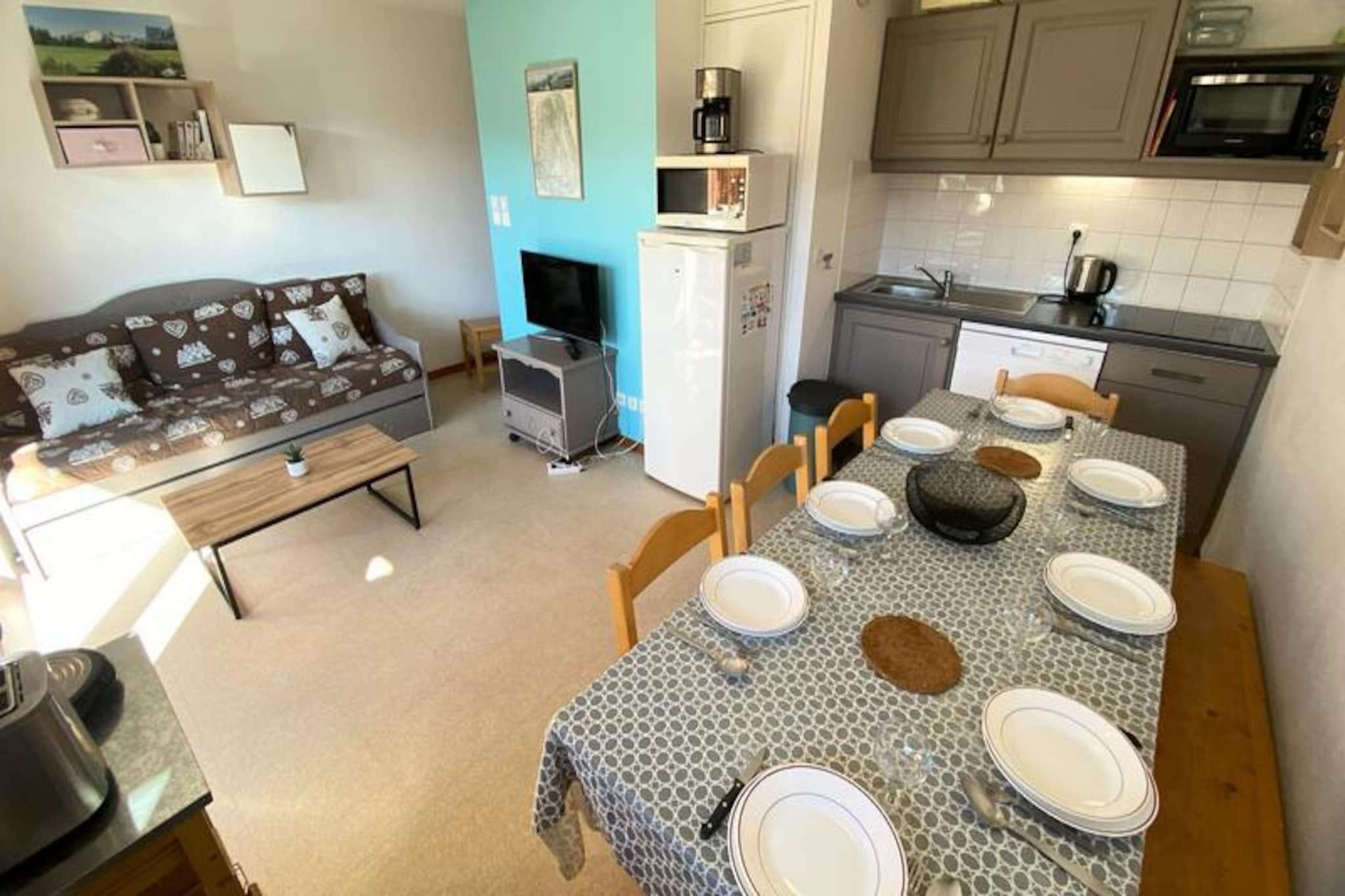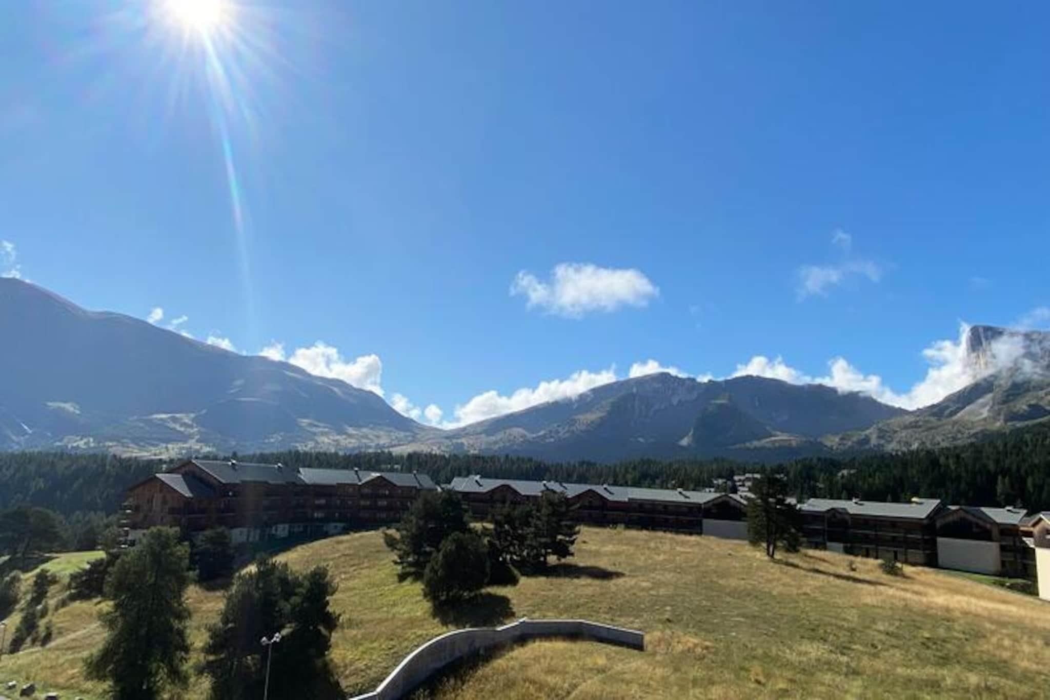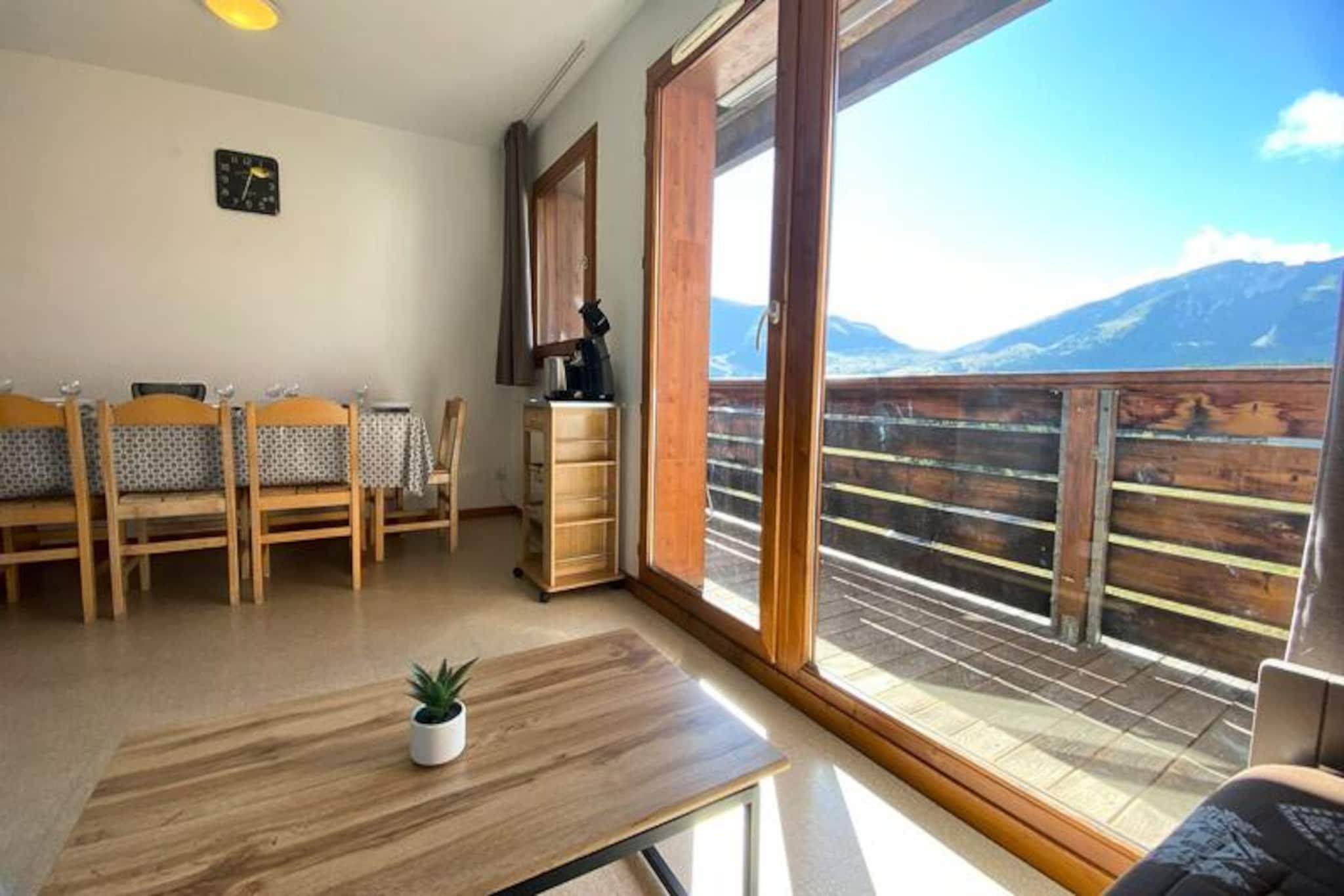 Højt over de naturskønne dale i de franske alper tilbyder denne charmerende lejlighed et roligt tilflugtssted for både eventyrere og naturelskere. Med en betagende udsigt fra den sydvendte balkon kan gæsterne nyde den alpine skønhed, mens de nyder den friske bjergluft. Uanset om du er her for spændingen ved skiløb eller roen ved sommervandreture, er denne bolig perfekt placeret kun 200 meter fra pisterne og de lokale butikker, hvilket sikrer bekvemmelighed og lethed under hele dit ophold. \n\nTræd indenfor i denne gennemtænkte lejlighed på 48 m², der ligger på fjerde sal med elevatoradgang. Den har plads til op til 10 gæster og har to hyggelige soveværelser med dobbeltsenge, en sovealkove med køjesenge og en udtræksseng i stuen. Det fuldt udstyrede tekøkken inkluderer moderne apparater såsom opvaskemaskine, miniovn, mikrobølgeovn og raclettegrill, hvilket gør den ideel til at tilberede solide alpine måltider. Yderligere bekvemmeligheder inkluderer et tv, dyner og muligheden for at leje linned og rengøringsservice for en problemfri oplevelse. \n\nBoligen kan prale af gratis parkering omkring komplekset, med overdækket parkering tilgængelig efter reservation. Gæsterne kan også nyde bekvemmeligheden ved et privat skirum til opbevaring af udstyr. Kæledyrsvenlig indkvartering sikrer, at dine pelsede ledsagere er velkomne, mens nærheden til skilifter og stier gør dette til en uovertruffen beliggenhed for vintersportsentusiaster. \n\nUanset om du udforsker pisterne eller opdager charmen i nærliggende landsbyer, fungerer denne lejlighed som den perfekte base for at skabe uforglemmelige minder i hjertet af Alperne. Fra spændende udendørseventyr til hyggelige aftener ved pejsen, er hvert øjeblik her fyldt med bjergenes magi.