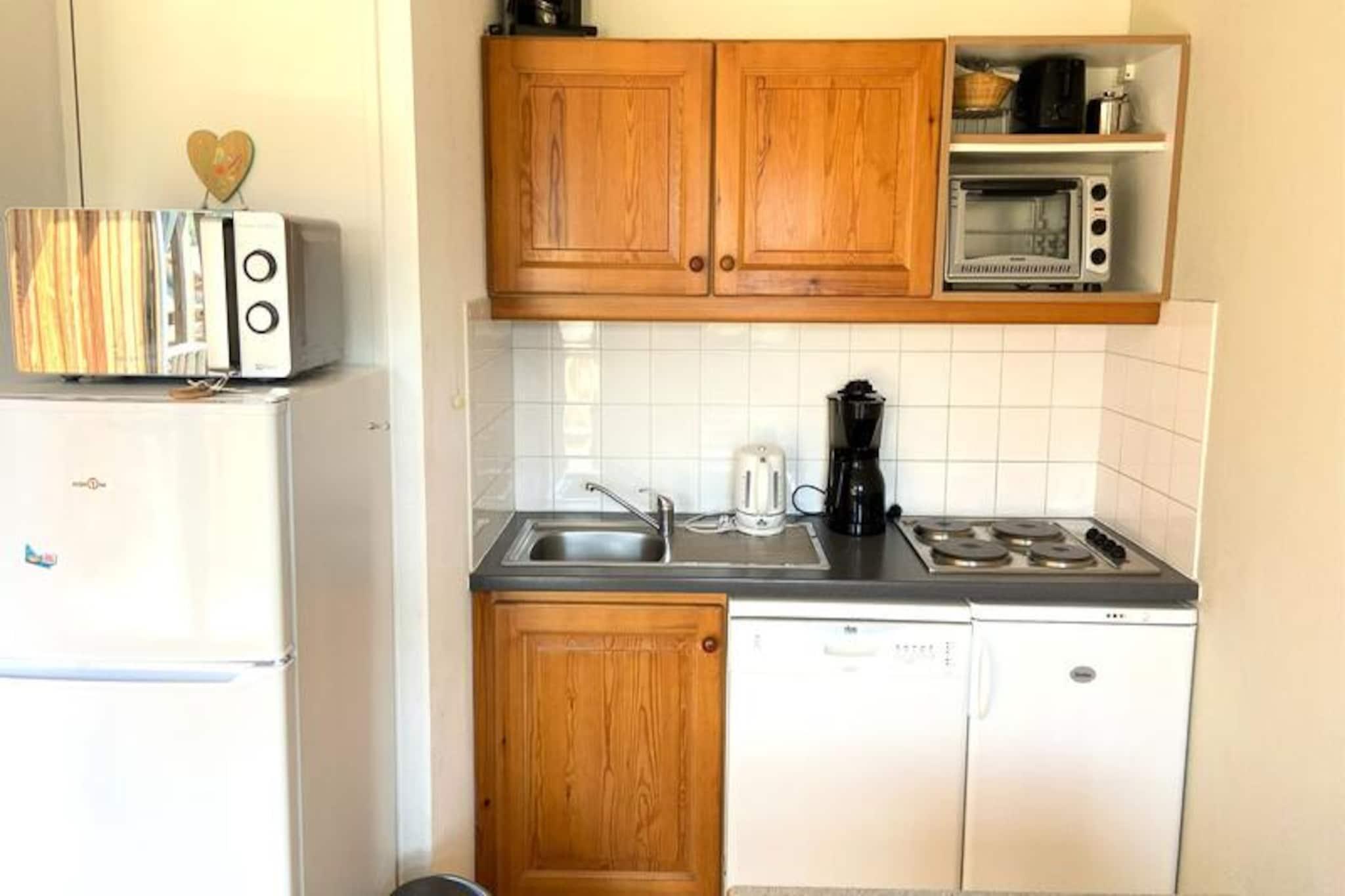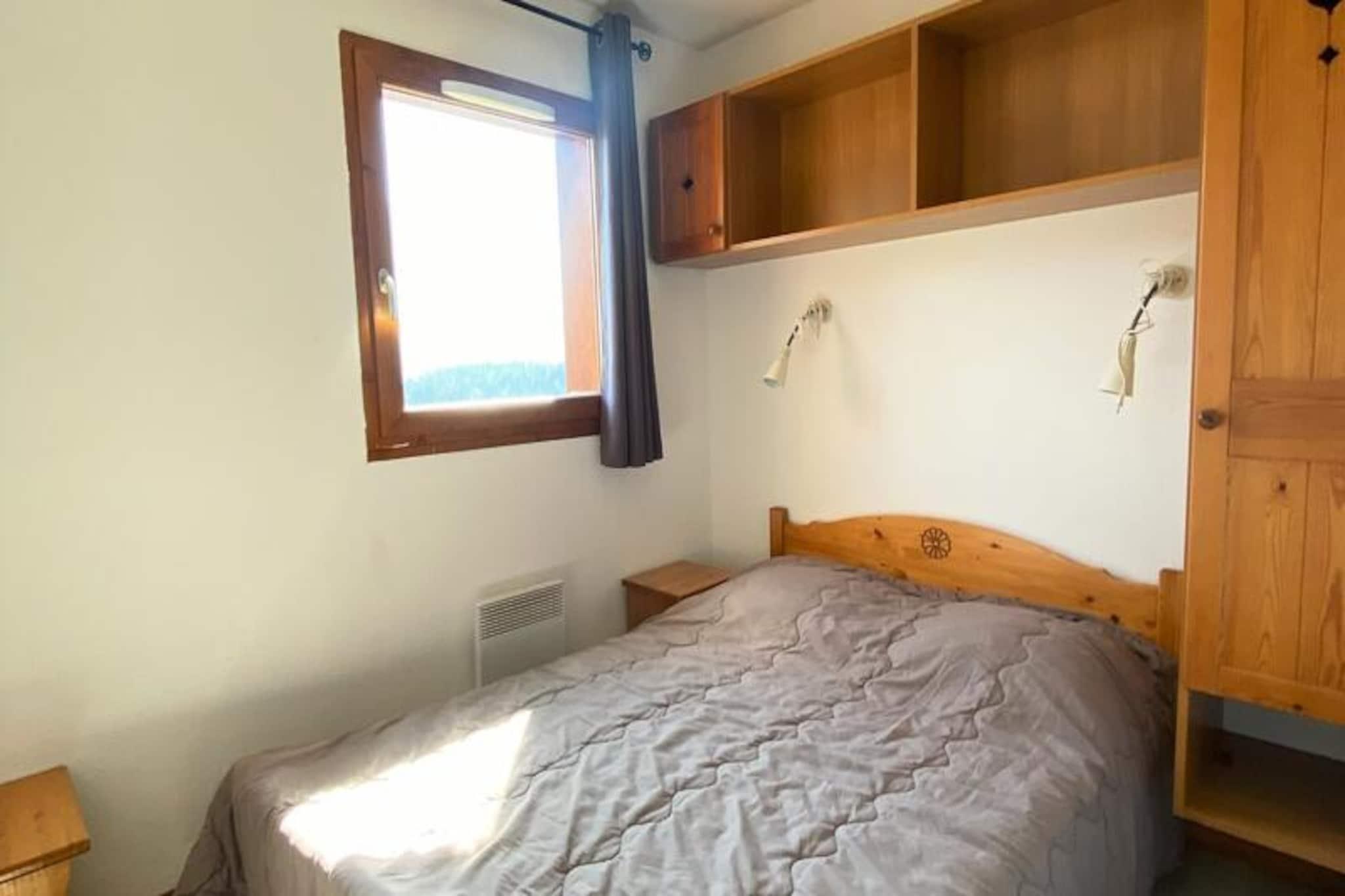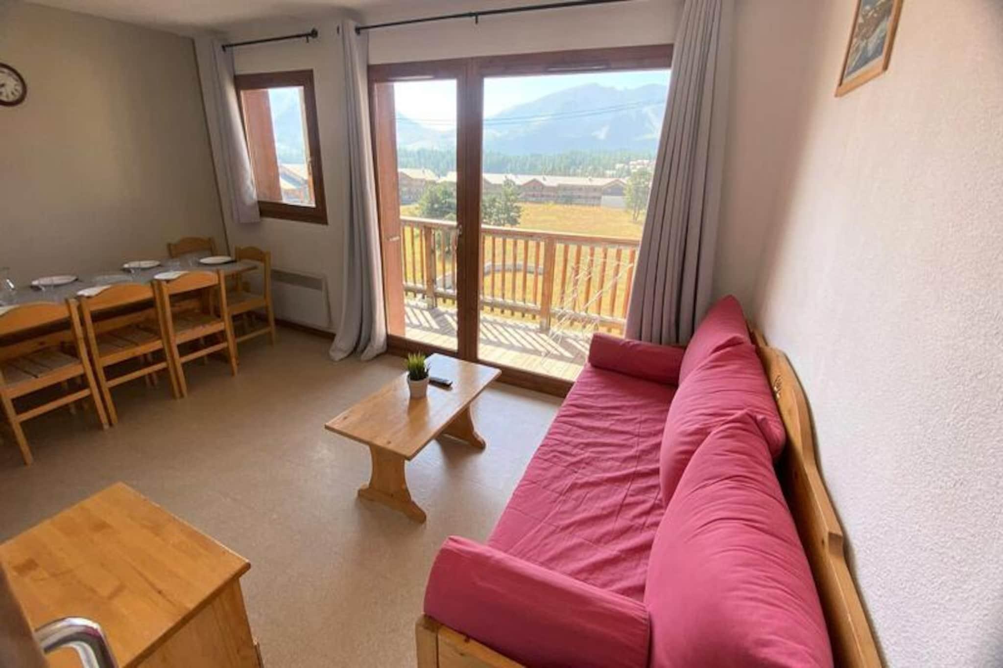 Højt over de charmerende franske alper tilbyder denne dejlige lejlighed en perfekt blanding af komfort og bekvemmelighed til din næste bjergferie. Beliggende i et kompleks med otte hytter, der hver rummer 30 lejligheder, er denne bolig ideel til familier eller grupper, der søger et hyggeligt alpint tilflugtssted. Med sin sydvendte balkon vågner du op til en fantastisk udsigt over de omkringliggende tinder og nyder solens varme hele dagen. Kun 200 meter fra pisterne er det et paradis for skientusiaster, der søger nem adgang til regionens uberørte pister. \n\nDen 48 m² store lejlighed, der ligger på 5. sal og er tilgængelig med elevator, har komfortabel plads til op til 8 gæster. Den har to indbydende soveværelser med dobbeltsenge, en sovealkove med køjesenge og en stue med en udtræksseng. Det veludstyrede tekøkken har opvaskemaskine, miniovn, mikrobølgeovn, filterkaffemaskine, brødrister, elkedel og fryser, hvilket gør det nemt at tilberede solide måltider efter en dag på pisterne. Moderne bekvemmeligheder som tv og dyner sikrer et afslappende ophold, mens valgfri leje af sengetøj og rengøringsservice giver ekstra bekvemmelighed.\n\nUd over boligen finder du butikker og restauranter kun en kort gåtur væk, perfekt til at udforske lokale smagsoplevelser og afterski-oplevelser. Gratis parkering omkring ejendommen og valgfri overdækket parkering sikrer stressfri ankomst. Kæledyr er velkomne, så du kan tage dine pelsede venner med på eventyr. Uanset om du er her for at stå på ski, vandre eller blot nyde den alpine charme, er denne lejlighed den perfekte base for uforglemmelige minder i de franske alper.