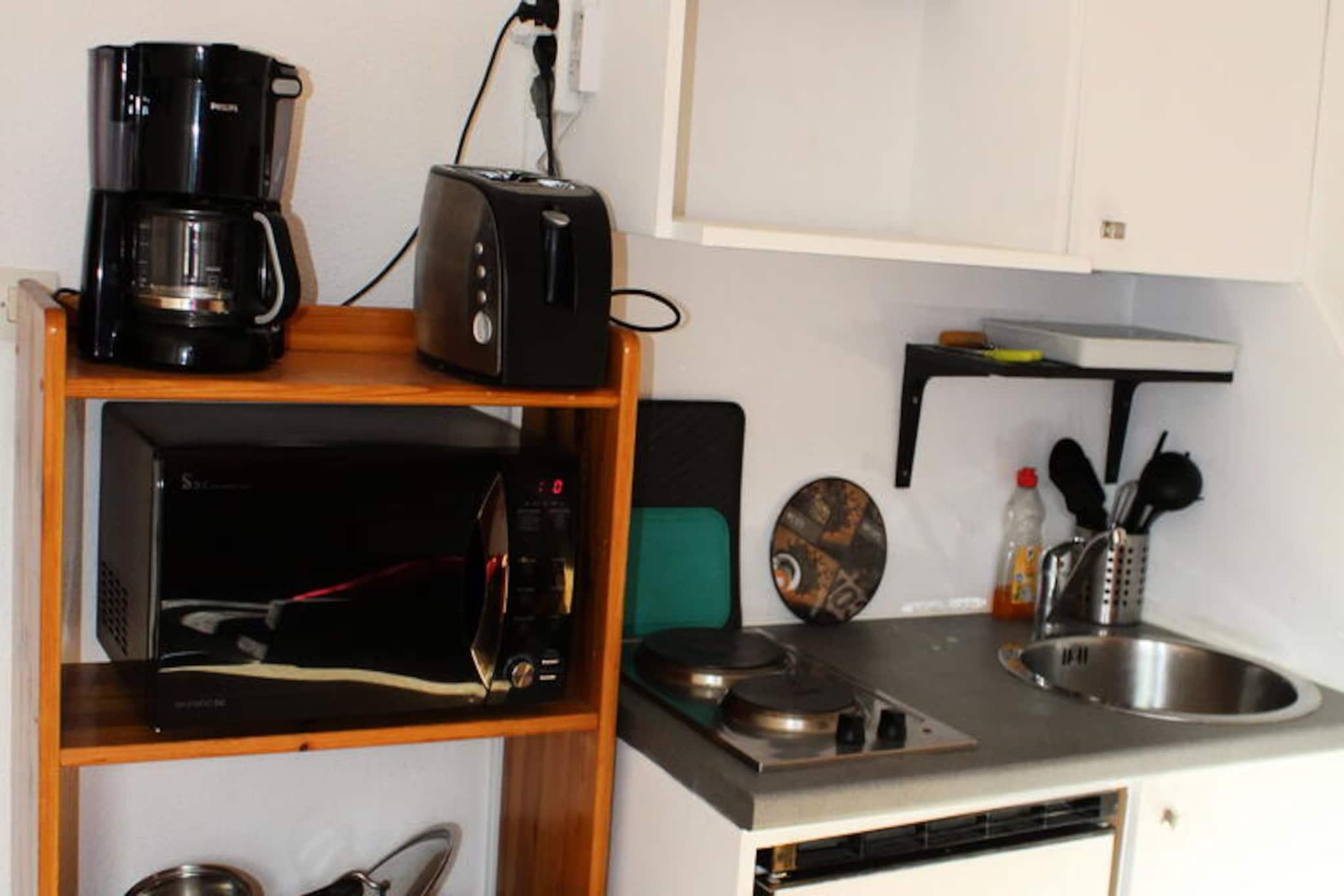 I hjertet af skisportsstedet Superdévoluy tilbyder dette charmerende studie et hyggeligt tilflugtssted for to, perfekt placeret ved foden af ??pisterne. Med en fantastisk udsigt over det majestætiske Faraud-bjerg fra sine vinduer ud mod dalen inviterer denne bolig dig til at vågne op til de franske alpers fredfyldte skønhed hver morgen. Bygningen, en arkitektonisk perle fra 1970'erne, der er anerkendt som en kulturarv fra det 20. århundrede, kombinerer vintage-charme med moderne bekvemmeligheder, hvilket gør den til en ideel base for dine alpine eventyr. Det 17 m² store studie er omhyggeligt designet til at maksimere komfort og funktionalitet. Opholdsstuen har en dobbeltseng på mezzaninen og en sofa, der ikke kan omdannes til en sovesofa, hvilket skaber et hyggeligt, men praktisk rum til afslapning. Det fuldt udstyrede tekøkken har ovn, komfur og elektrisk kaffemaskine, perfekt til at tilberede måltider efter en dag på pisterne. Et privat badeværelse med bruser og moderne bekvemmeligheder såsom tv og Wi-Fi sikrer et behageligt ophold. Selvom studiet mangler en balkon, tilbyder vinduerne ud mod dalen en betagende udsigt, der bringer naturen indenfor. Bekvemmeligheden er lige uden for døren med butikker og essentielle tjenester i stueetagen af ??boligen. Der er gratis parkering omkring bygningen, og overdækket parkering kan reserveres mod et ekstra gebyr. For ekstra bekvemmelighed tilbydes der leje af linned og slutrengøring, hvilket sikrer en stressfri ferieoplevelse. Uanset om du er her for de spændende skiløjper eller for at udforske de maleriske alpine omgivelser, tilbyder dette studie i Superdévoluy den perfekte blanding af komfort, charme og tilgængelighed. Oplev magien i de franske alper og skab uforglemmelige minder i dette indbydende tilflugtssted.
