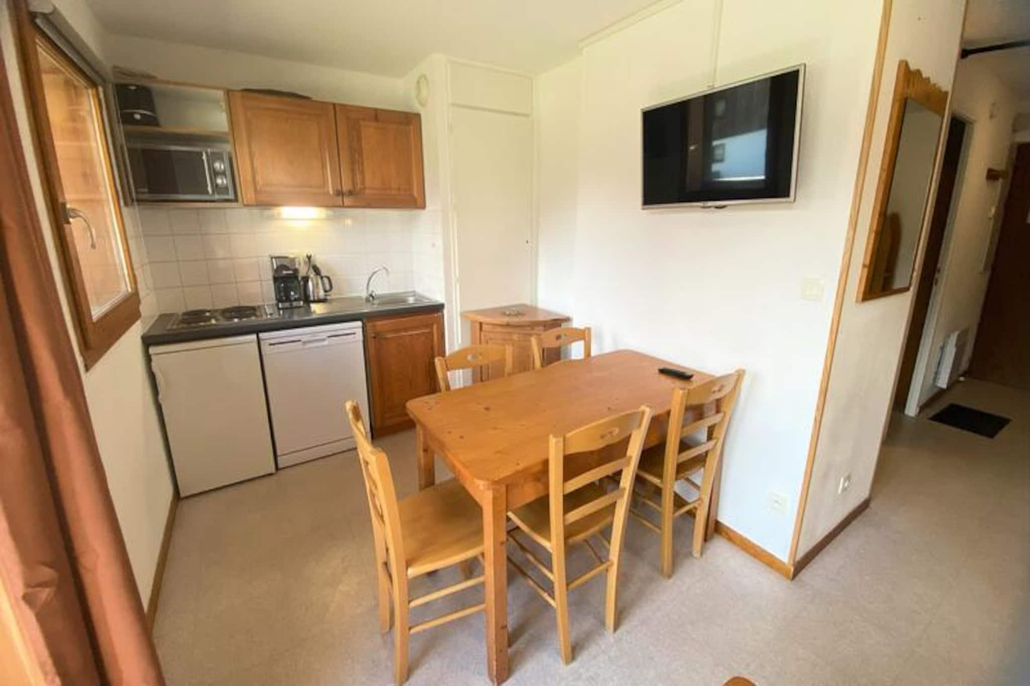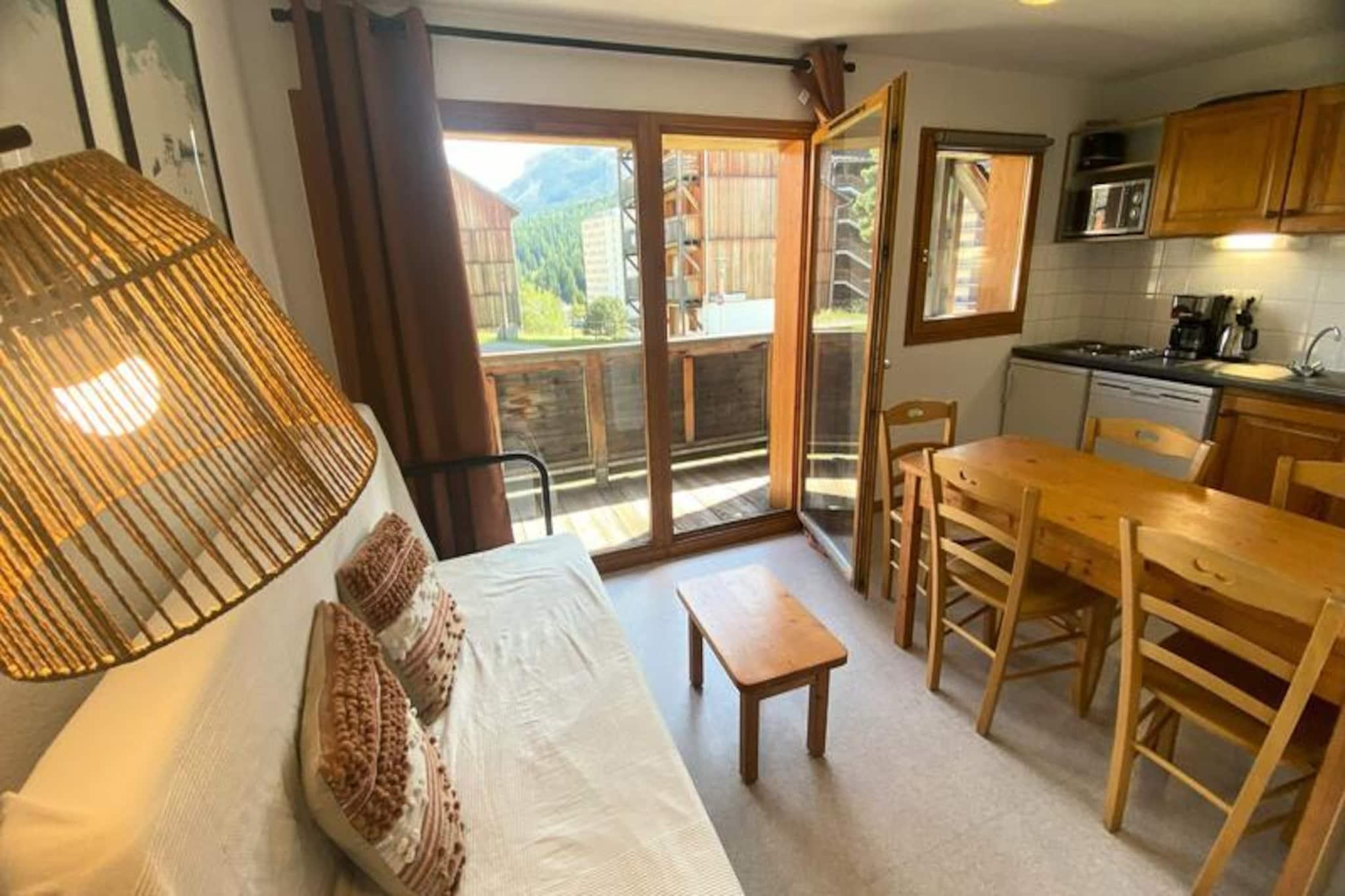 Forestil dig at vågne op til det betagende syn af Pic de Bure badet i sollys, mens du træder ud på din private sydvendte balkon for at indånde den friske bjergluft. Denne charmerende lejlighed, som er en del af et kompleks med otte hytter, tilbyder et hyggeligt alpint tilflugtssted for op til seks gæster. Beliggende kun 200 meter fra pisterne er det den perfekte base for både skientusiaster og naturelskere. Uanset om du er her for at kæmpe dig gennem frisk puddersne eller udforske den fredfyldte skønhed i de franske alper, lover denne bolig et uforglemmeligt ophold. \n\nIndvendigt er lejligheden omhyggeligt designet til komfort og bekvemmelighed. Stuen har en komfortabel sovesofa, mens alkoven tilbyder to hyggelige køjesenge, og et separat soveværelse kan prale af en blød dobbeltseng. Det fuldt udstyrede tekøkken har opvaskemaskine, mikrobølgeovn, brødrister og elkedel, hvilket gør det nemt at tilberede solide måltider efter en dag med eventyr. Moderne bekvemmeligheder som et fladskærms-tv og dyner sikrer en afslappende og problemfri oplevelse. For ekstra bekvemmelighed er der et privat skirum, og der er mulighed for at leje linned. \n\nTræd udenfor, og du vil befinder dig kun en kort gåtur fra lokale butikker, restauranter og skiløjperne. Gratis parkering omkring boligen og valgfri overdækket parkering gør det nemt at komme rundt. I alle årstider byder det omkringliggende område på et væld af aktiviteter, lige fra skiløb og snowboarding om vinteren til vandreture og mountainbiking om sommeren. Med sin idylliske beliggenhed og varme, indbydende atmosfære er denne lejlighed din port til de franske alpers vidundere.
