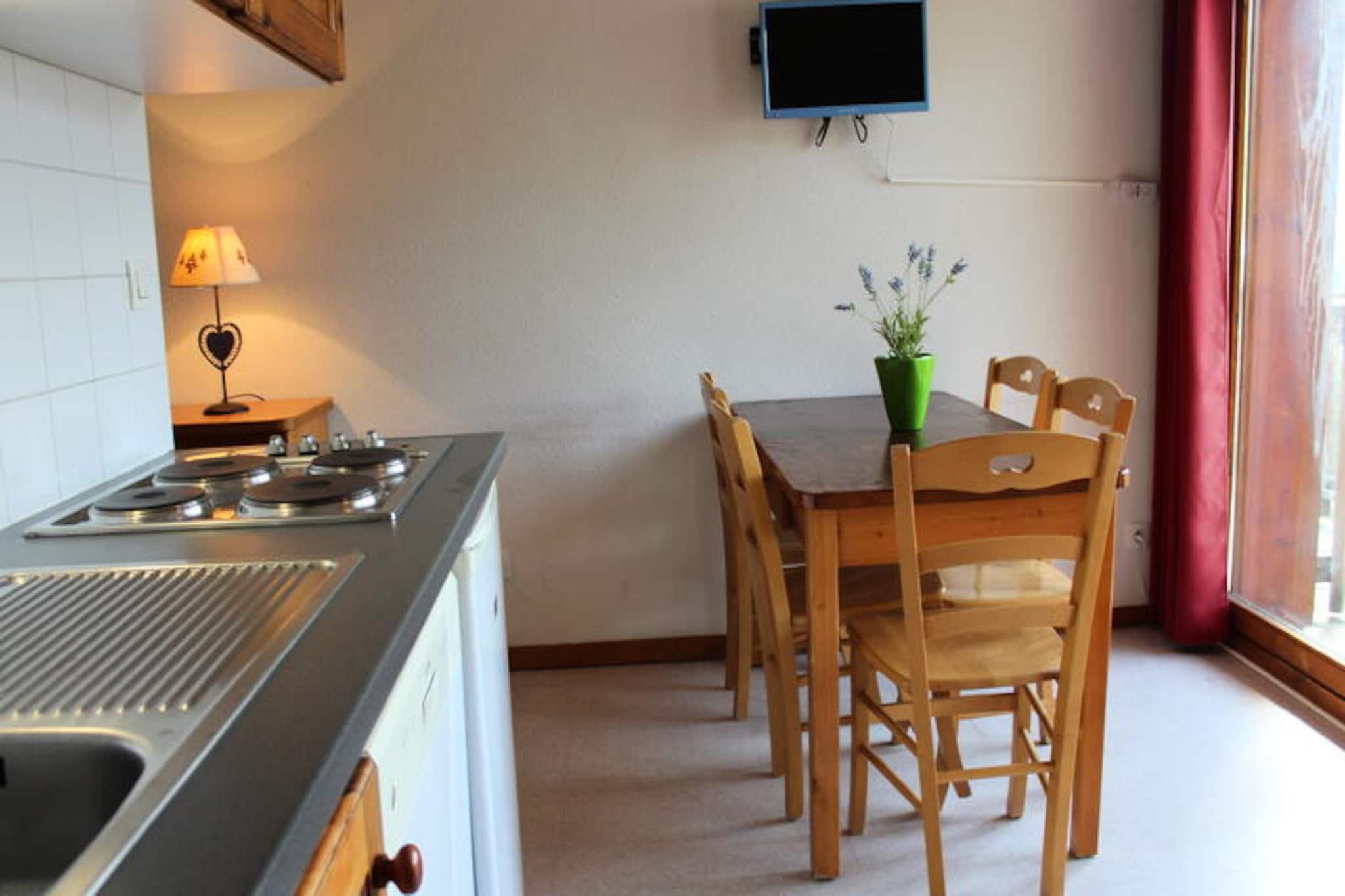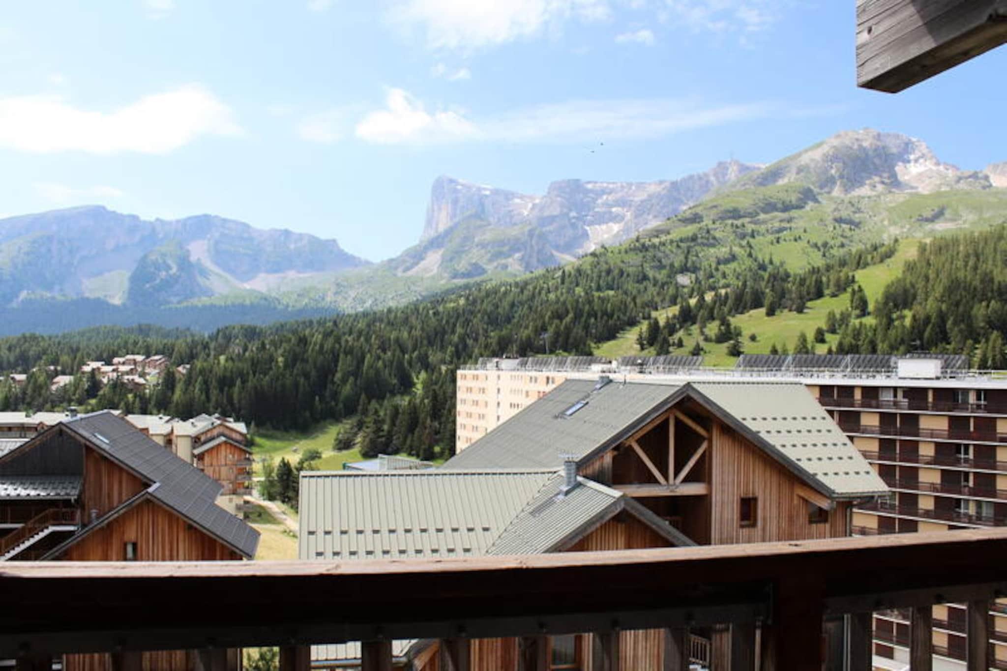 Højt over de fredelige landskaber i de franske alper tilbyder denne charmerende lejlighed et roligt tilflugtssted med en betagende udsigt over Pic de Bure. Forestil dig at nippe til din morgenkaffe på den sydvendte balkon, mens solen står op over bjergtoppene og fylder din dag med alpint eventyr og afslapning. Denne bolig er perfekt beliggende kun 200 meter fra skiløjperne og sikrer en problemfri forbindelse til den uberørte sne og det pulserende bjergliv. Uanset om du er her for vintersport eller sommervandreture, er dette din port til den store natur. \n\nLejligheden, der ligger på 8. sal i et kompleks med 8 hytter, har komfortabel plads til op til 6 gæster. Den har en hyggelig stue med en dobbelt sovesofa, en alkove med køjesenge og et privat soveværelse med en dobbeltseng. Det fuldt udstyrede tekøkken inkluderer opvaskemaskine, miniovn, mikrobølgeovn og alt det nødvendige for at tilberede solide måltider efter en dag med udforskning. Moderne bekvemmeligheder såsom tv og varme sikrer et behageligt ophold, mens det private skirum øger bekvemmeligheden for vintersportsentusiaster. \n\nResidensen tilbyder gratis parkering omkring komplekset, med overdækket parkering tilgængelig mod et mindre gebyr. Butikker og restauranter ligger inden for gåafstand, hvilket gør det nemt at nyde lokal mad og samle forsyninger. Kæledyr er velkomne, så du kan tage dine pelsede venner med på eventyr. Yderligere tjenester såsom leje af linned og slutrengøring er tilgængelige for en problemfri oplevelse. \n\nUanset om du er tiltrukket af pisterne, charmen i de lokale landsbyer eller roen i de alpine udsigter, er denne lejlighed den perfekte base for uforglemmelige minder i hjertet af de franske alper.
