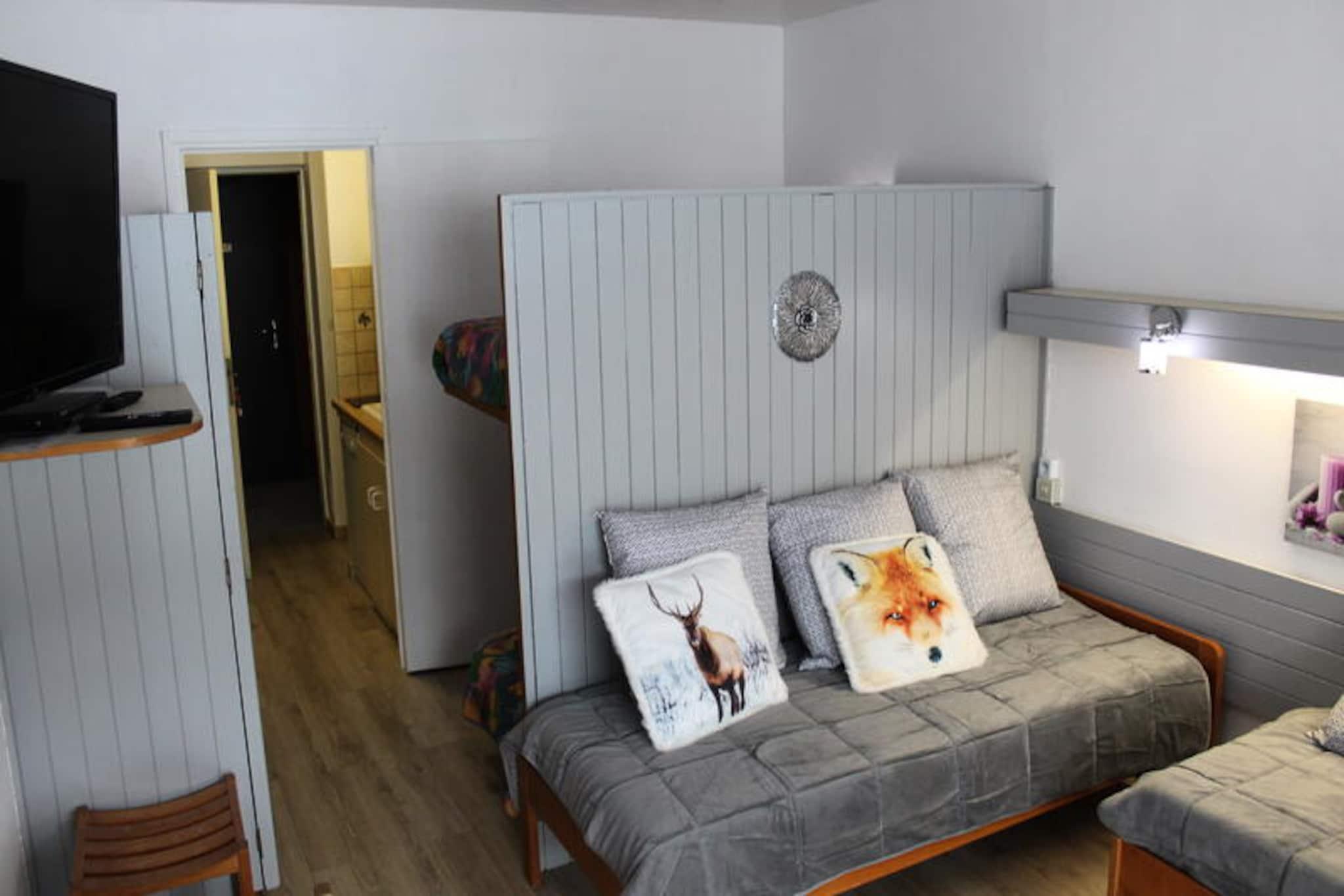 Højt over Superdévoluys fredfyldte landskaber tilbyder denne charmerende studiolejlighed en plads på første række til de majestætiske pister og den ikoniske Pic de Bure. Med sin sydvendte balkon kan gæsterne nyde den alpine sol og beundre den betagende udsigt, der strækker sig over skiområdet. Uanset om du er her for at grave dig gennem uberørt sne eller blot omfavne roen i bjergene, lover denne bolig et uforglemmeligt tilflugtssted i hjertet af de franske alper.\n\nDet 27 m² store studio er designet med komfort og praktisk anvendelighed i tankerne og har plads til op til fire gæster. Opholdsstuen har to enkeltsenge, en spiseplads og et fuldt udstyret tekøkken med moderne apparater, herunder mikrobølgeovn, opvaskemaskine og Tassimo-kaffemaskine. En hyggelig sovealkove med køjesenge er adskilt af en træskillevæg, hvilket sikrer privatliv og en god nats søvn. Badeværelset er udstyret med bruser, håndvask og toilet, og studiolejligheden har et tv til afslappende aftener indendørs.\n\nBekvemmelighed er lige ved hånden med butikker, restauranter og essentielle tjenester i stueetagen af ??boligen. Gratis parkering omgiver bygningen, mens overdækket parkering er tilgængelig mod et mindre gebyr. Under dit ophold kan du udforske det pulserende skiområde eller nyde panoramaudsigten over Faraud-bjerget og de omkringliggende dale. For sommergæster forvandles regionen til et paradis for vandreture og udendørs eventyr.\n\nUanset om du søger spændende pister eller fredelig alpin charme, er dette studie i Superdévoluy din indgang til en autentisk bjergoplevelse. Book dit ophold og skab varige minder i denne unikke fredede bolig.