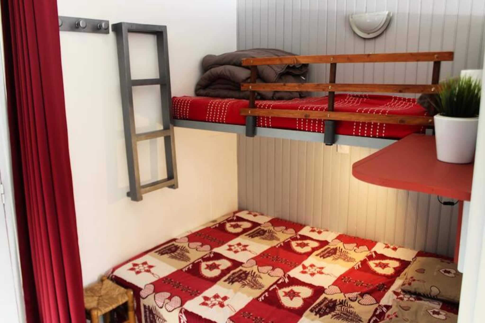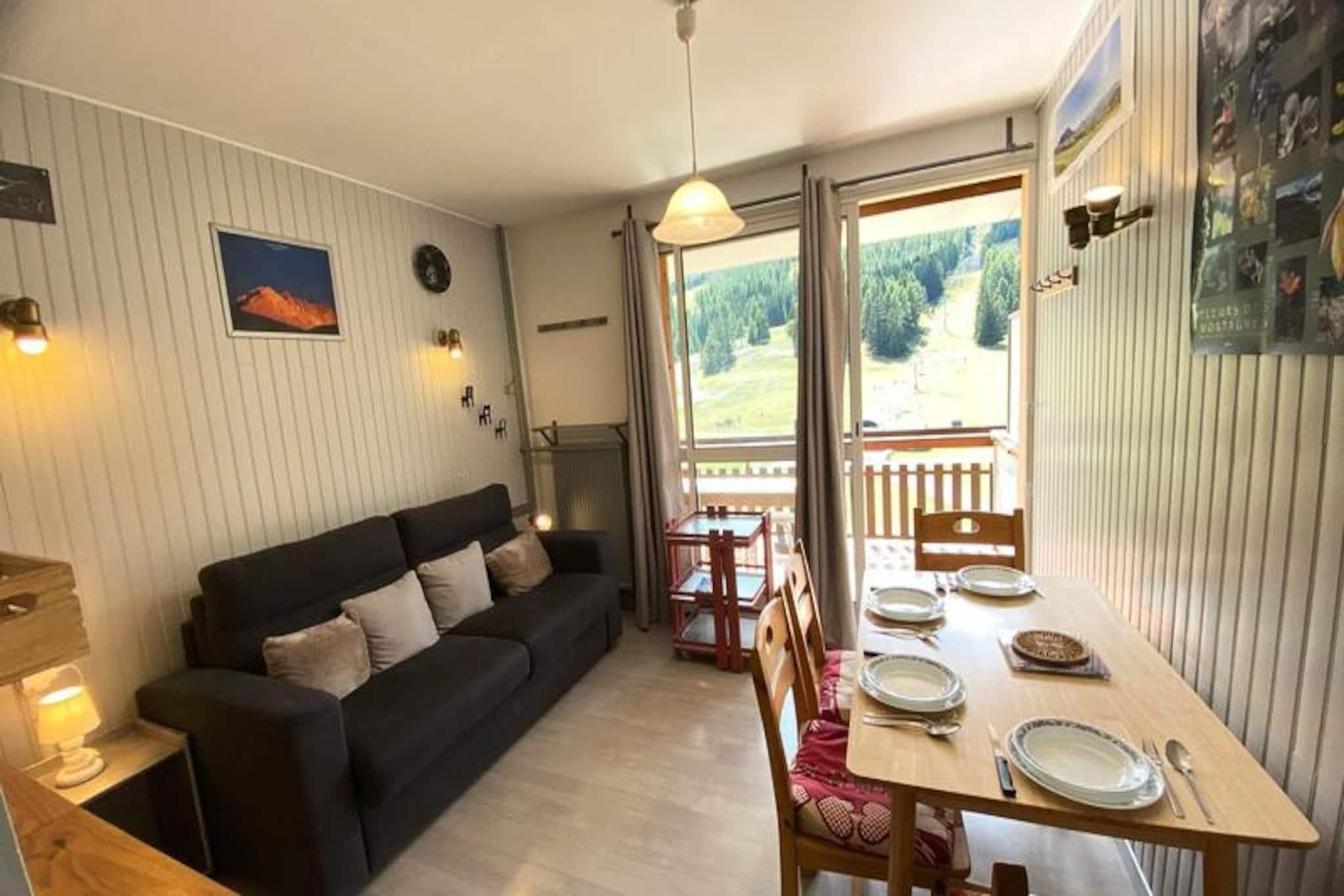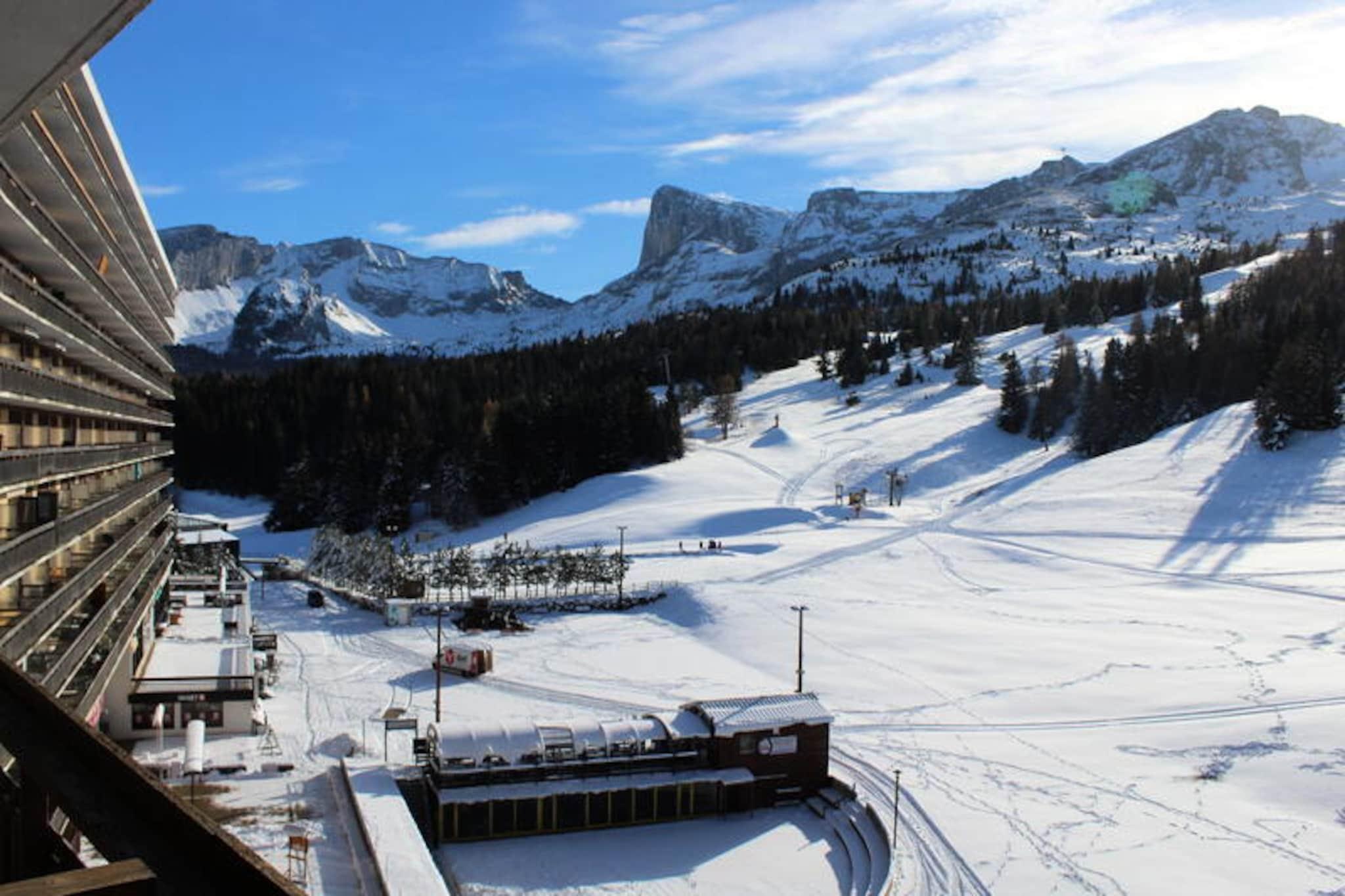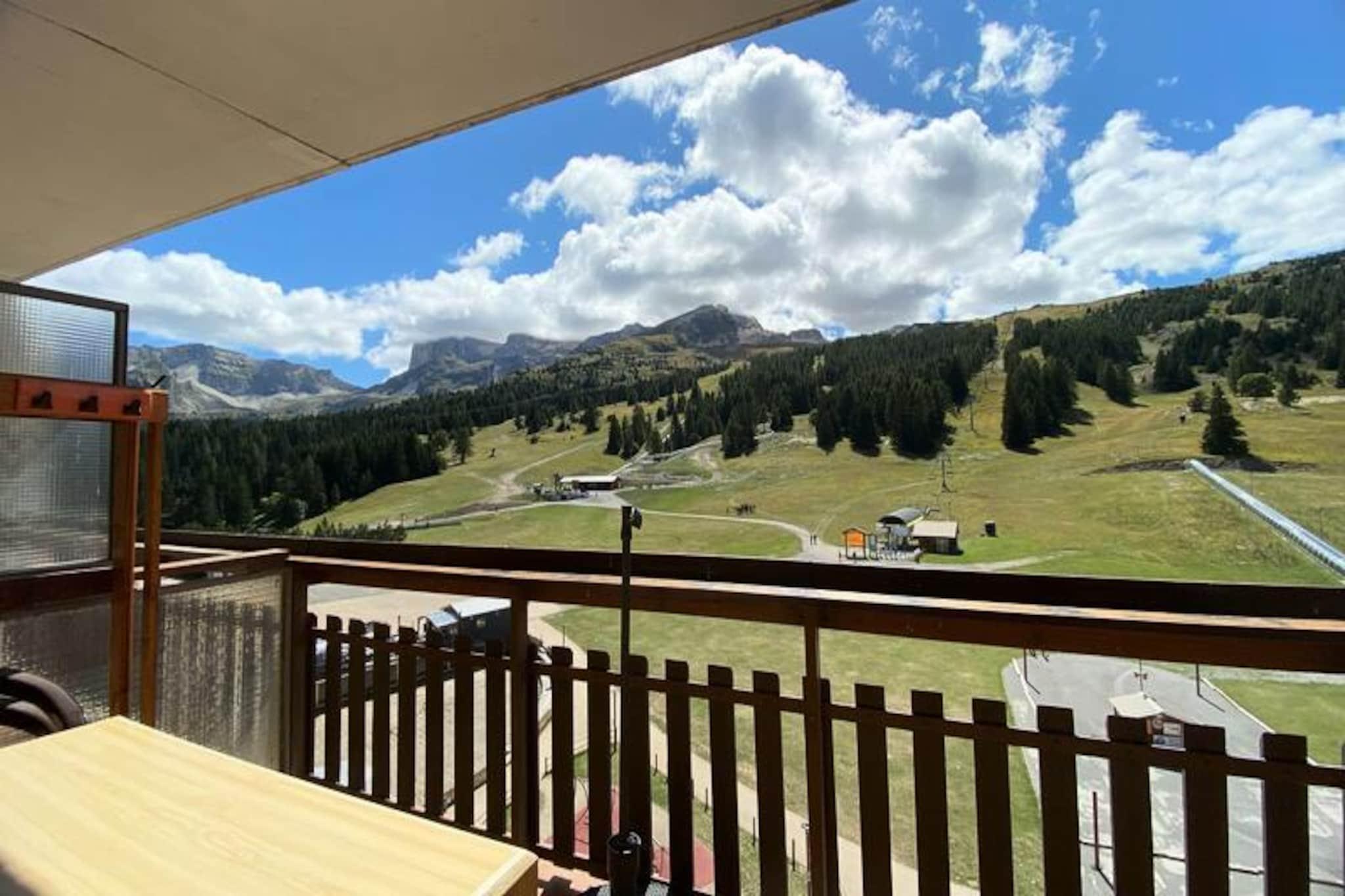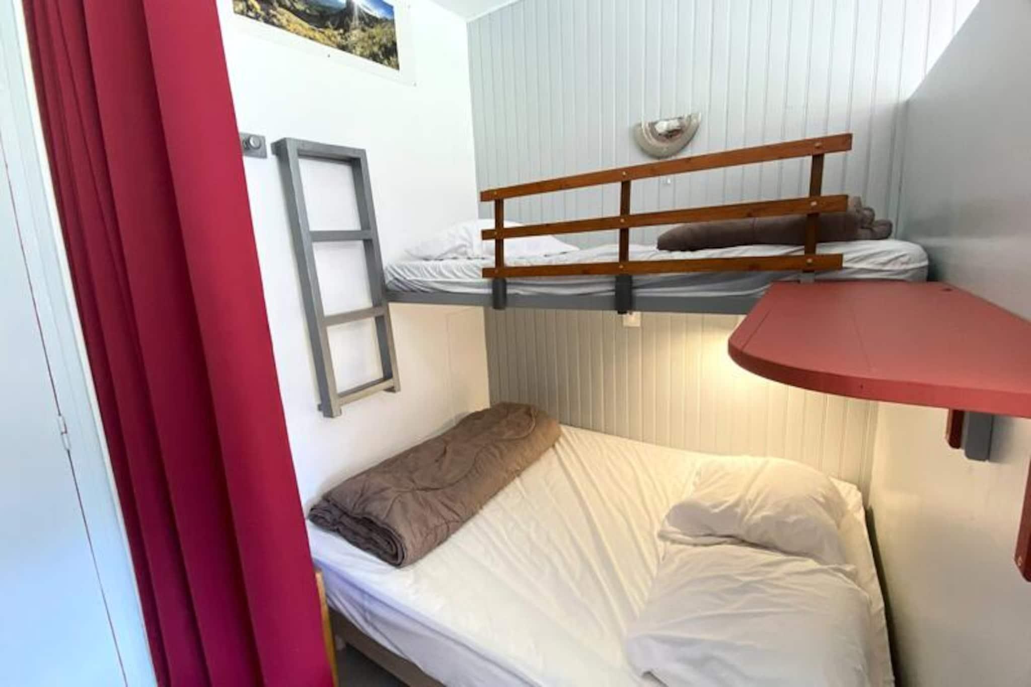 Højt over Superdévoluys fredfyldte landskaber tilbyder dette charmerende studie en unik blanding af alpin arv og moderne komfort. Ejendommen er beliggende i en residens fra 1970'erne, der er anerkendt som en arkitektonisk perle fra det 20. århundrede, og har direkte adgang til pisterne, hvilket gør det til et ideelt tilflugtssted for både skientusiaster og naturelskere. Uanset om du kigger ud over det majestætiske Pic de Bure eller det rolige Faraud-bjerg, er udsigten fra dette sydvendte studie intet mindre end betagende. Balkonen inviterer dig til at nyde den friske bjergluft og skønheden i det omkringliggende skiområde og skabe den perfekte kulisse for din alpine flugt. \n\nStudioet er designet til op til fire gæster og har en smart indretning med en sovealkove, en mezzaninseng og en sovesofa i stuen. Tekøkkenet er fuldt udstyret med moderne apparater, herunder mikrobølgeovn/grillovn, køleskab, opvaskemaskine og filterkaffemaskine, hvilket sikrer, at du har alt, hvad du behøver for at tilberede solide måltider efter en dag på pisterne. Badeværelset er udstyret med bruser og toilet, hvilket tilbyder bekvemmelighed og komfort. Med et tv inkluderet og varme er dit ophold garanteret hyggeligt og afslappende.\n\nSelve boligen er et knudepunkt for bekvemmeligheder med butikker og essentielle tjenester lige i stueetagen. Gratis parkering omgiver bygningen, og overdækket parkering er tilgængelig efter reservation for ekstra bekvemmelighed. For dem, der rejser med kæledyr, er ejendommen velkommen mod et mindre gebyr, hvilket gør det til et godt valg for familier. Yderligere faciliteter såsom leje af linned og slutrengøring sikrer en problemfri oplevelse.\n\nUanset om du er her for at grave dig gennem uberørt puddersne, udforske naturskønne stier eller blot slappe af midt i fantastiske bjergudsigter, lover denne studiolejlighed ved foden af ??pisterne en uforglemmelig ferie i hjertet af de franske alper.