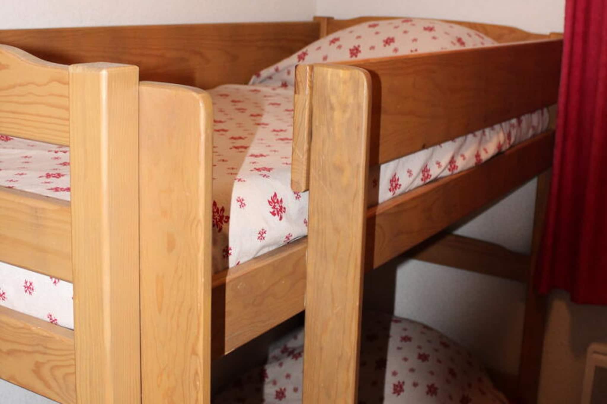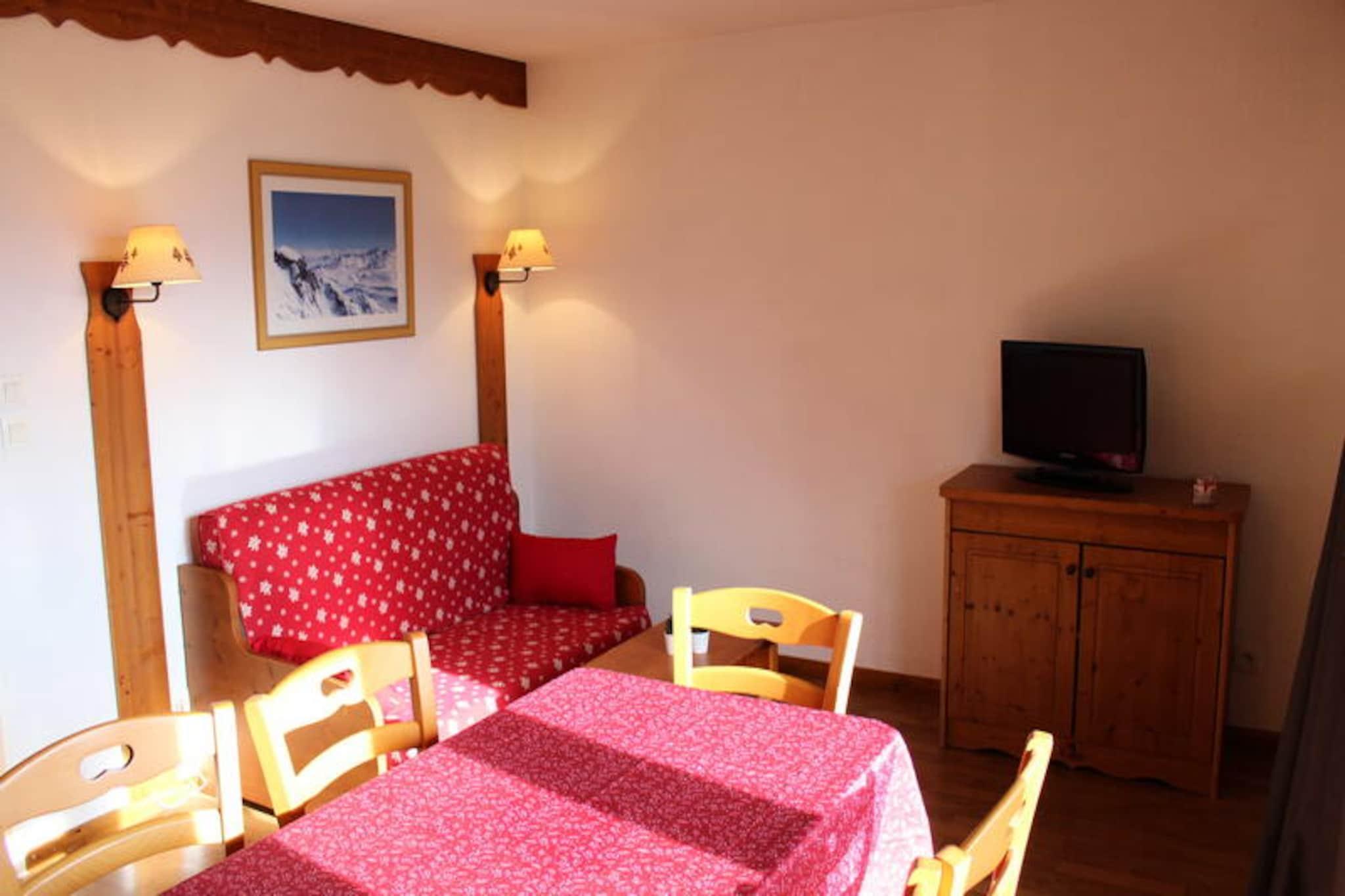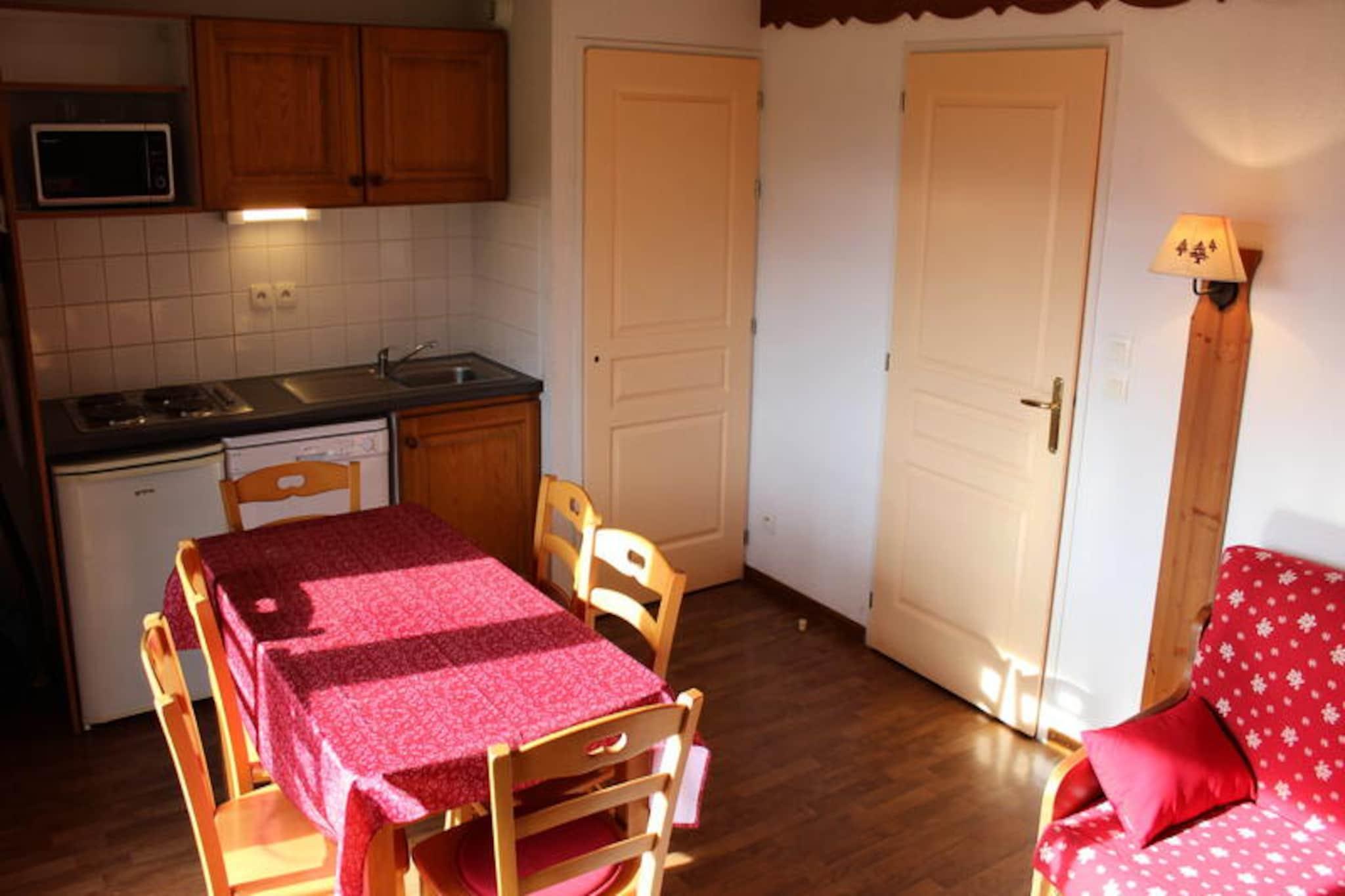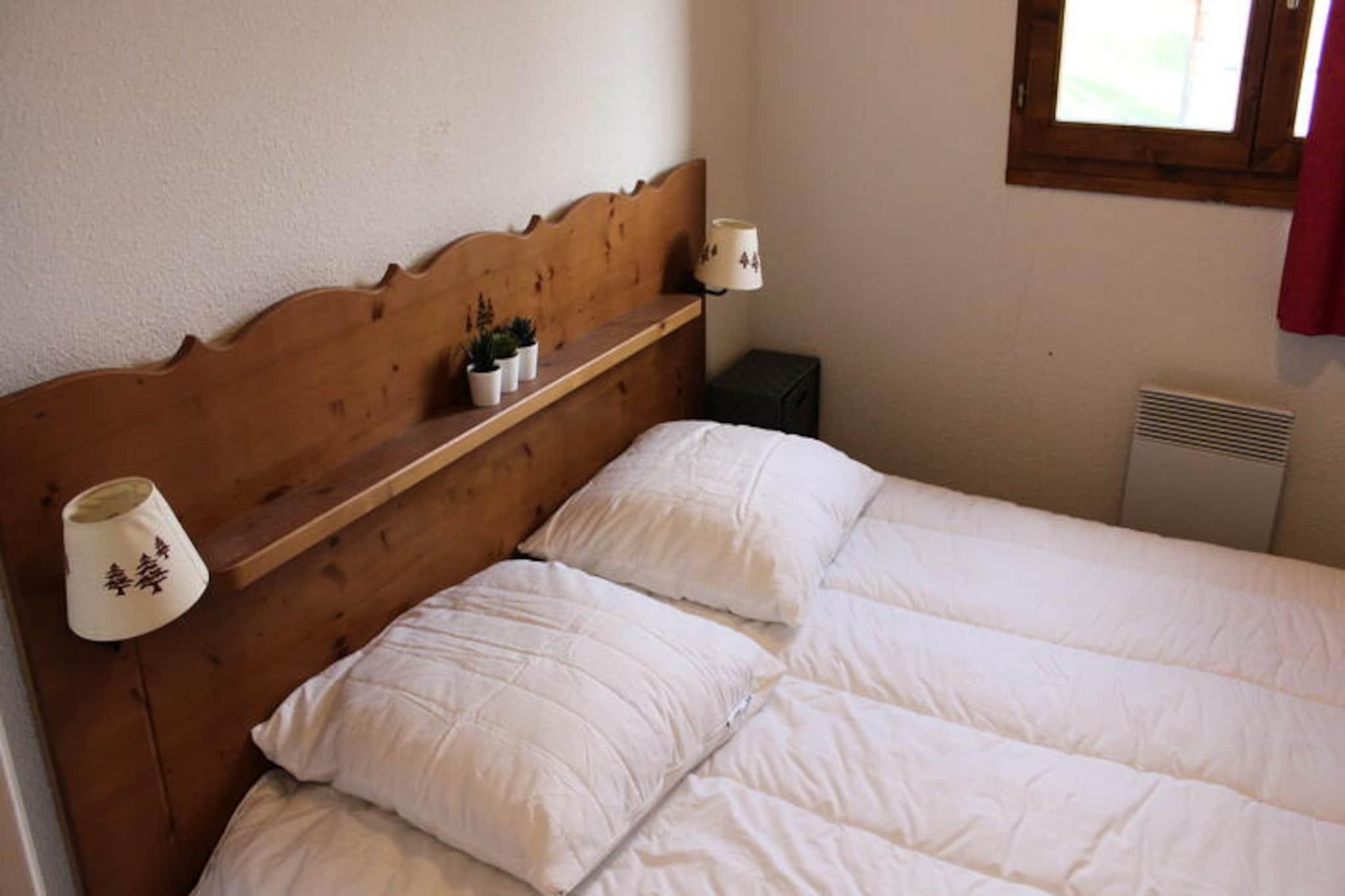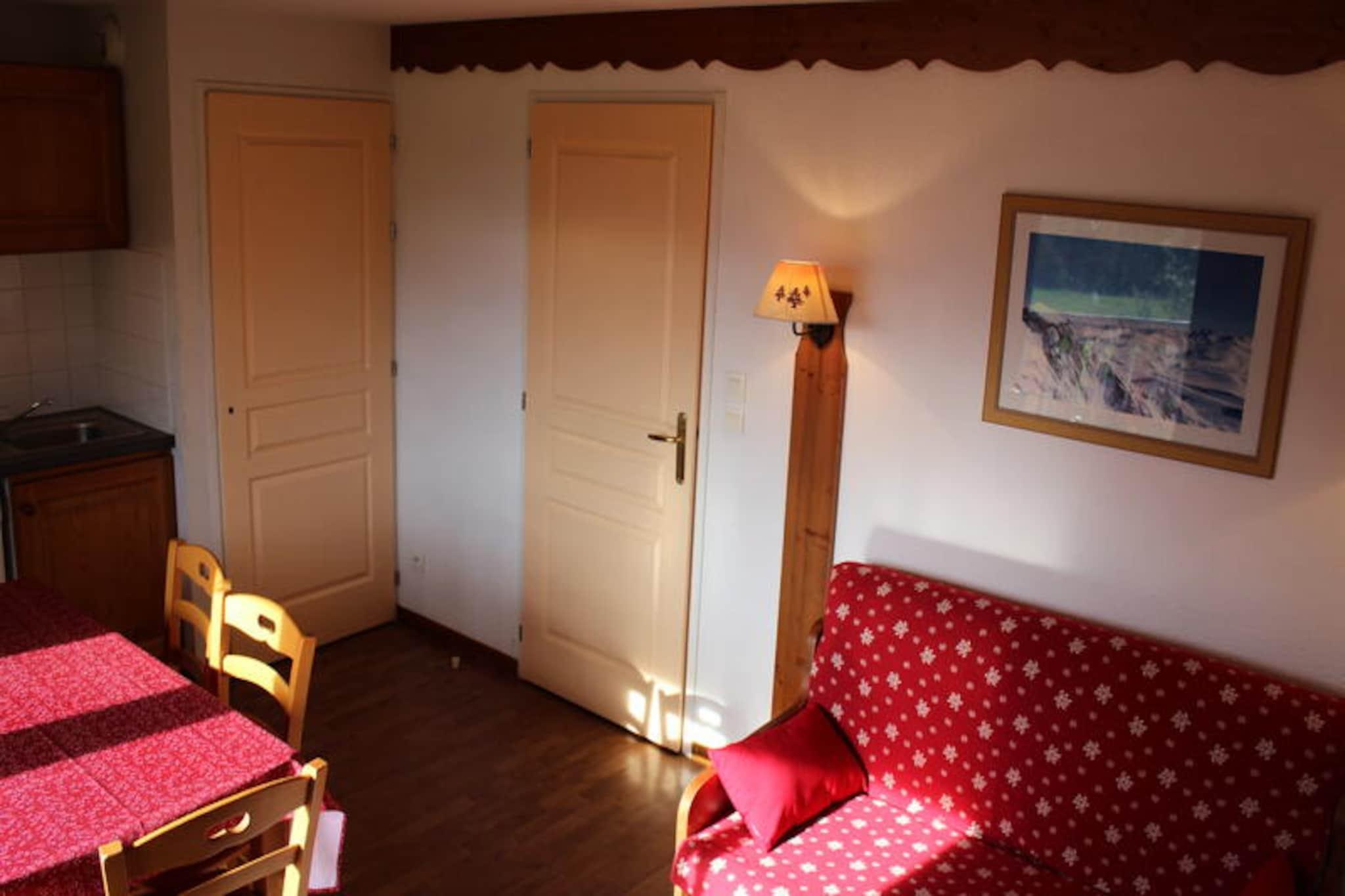 Omgivet af Ferrand-bjergets betagende skønhed tilbyder denne charmerende lejlighed i La Marmotte-bygningen en rolig oase for op til seks gæster. Beliggende kun 500 meter fra feriestedets centrum og skiløjperne kombinerer den bekvemmelighed med ro, hvilket gør den til et ideelt valg til både vinter- og sommerferie. Uanset om du nyder den sydvestvendte udsigt eller den friske alpine luft på din private balkon, føles hvert øjeblik her som et tilflugtssted i naturens favn. \n\nLejligheden kan prale af en gennemtænkt planløsning med en hyggelig stue med sovesofa, et soveværelse med dobbeltseng og en alkove med køjesenge, perfekt til familier eller små grupper. Det fuldt udstyrede tekøkken inkluderer opvaskemaskine, mikrobølgeovn og elektrisk kaffemaskine, hvilket sikrer, at du har alt, hvad du behøver for at tilberede lækre måltider efter en dag med eventyr. Et badeværelse med badekar og separat toilet bidrager til komforten, mens moderne bekvemmeligheder som tv forbedrer dit ophold. \n\nOm sommeren kan gæsterne slappe af ved den udendørs swimmingpool og nyde solskinnet og udsigten over bjergene. Ejendommen tilbyder også gratis parkering og individuelle skibokse, hvilket gør dit ophold endnu mere bekvemt. I nærheden ligger feriestedets centrum kun en kort gåtur væk, hvor der findes butikker, restauranter og nem adgang til pisterne. Til afslapning kan man benytte sig af wellnesscentret