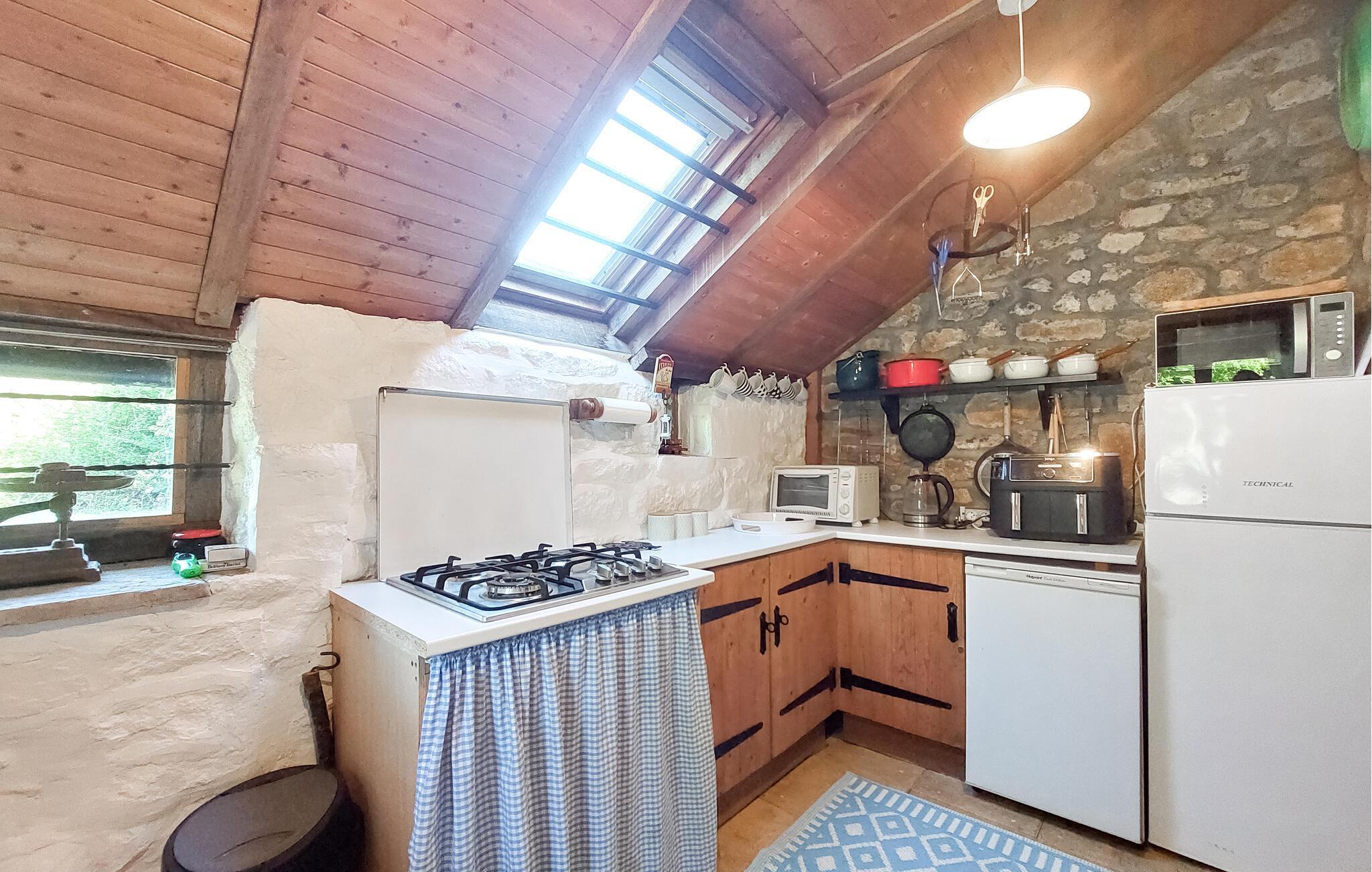 Ren ferieafslapning venter jer i dette charmerende stenhus, der ligger ideelt som udgangspunkt for at udforske Bretagne. Gør det behageligt sammen med familien i de indbydende rum og brug huset som funktionel base for spændende udflugter i området. Vend tilbage om aftenen og nyd hyggelige stunder i stuen.