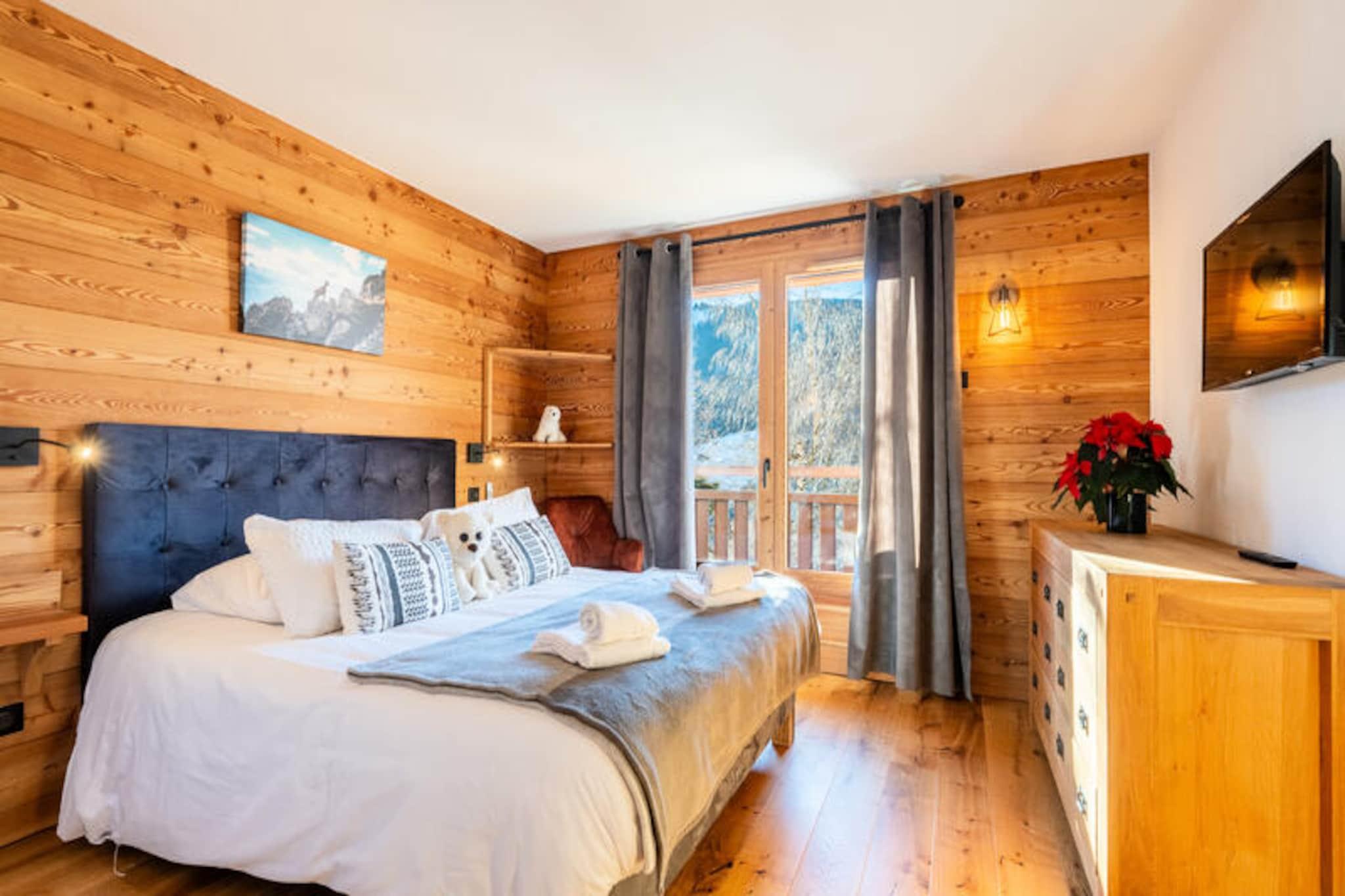 Højt over den maleriske landsby Grand-Bornand, omgivet af den betagende skønhed i Aravis-bjergkæden, tilbyder Chalet Hartza et luksuriøst alpint ophold for op til 12 gæster. Dette nybyggede, fritliggende chalet kombinerer moderne elegance med traditionel charme og skaber en varm og indbydende atmosfære til din ferie. Uanset om du søger eventyr eller afslapning, er dette 5-stjernede feriested designet til at opfylde alle dine behov. \n\nMed et imponerende areal på 178 m² kan chaleten prale af rummelige interiører med fem komfortable soveværelser, et fuldt udstyret køkken og hyggelige opholdsområder, der er perfekte til at samles med familie eller venner. Forkæl dig selv med den ultimative afslapning med den private sauna og det nordiske bad, eller gå ud på den sydvendte terrasse for at nyde panoramaudsigten over de omkringliggende tinder og den maleriske landsby nedenfor. Med parkering til op til fem køretøjer og betænksomme faciliteter som redte senge ved ankomst og sengetøj er dit ophold garanteret problemfrit. \n\nChalet Hartza ligger kun 2 km fra hjertet af Grand-Bornand Village og 2,6 km fra de nedadgående skiløjper og er ideelt placeret til at udforske regionen. En gratis shuttlebus stopper bekvemt kun 150 meter væk, hvilket sikrer nem adgang til områdets attraktioner, herunder langrendsløjper og busstationen. Uanset om du er på pisterne, vandrer på naturskønne stier eller blot nyder de rolige alpine omgivelser, placerer denne hytte dig i centrum af det hele. \n\nChalet Hartza inviterer dig til at skabe uforglemmelige minder i de franske alper, hvor hver eneste detalje er omhyggeligt udvalgt for at give en problemfri og luksuriøs ferieoplevelse.