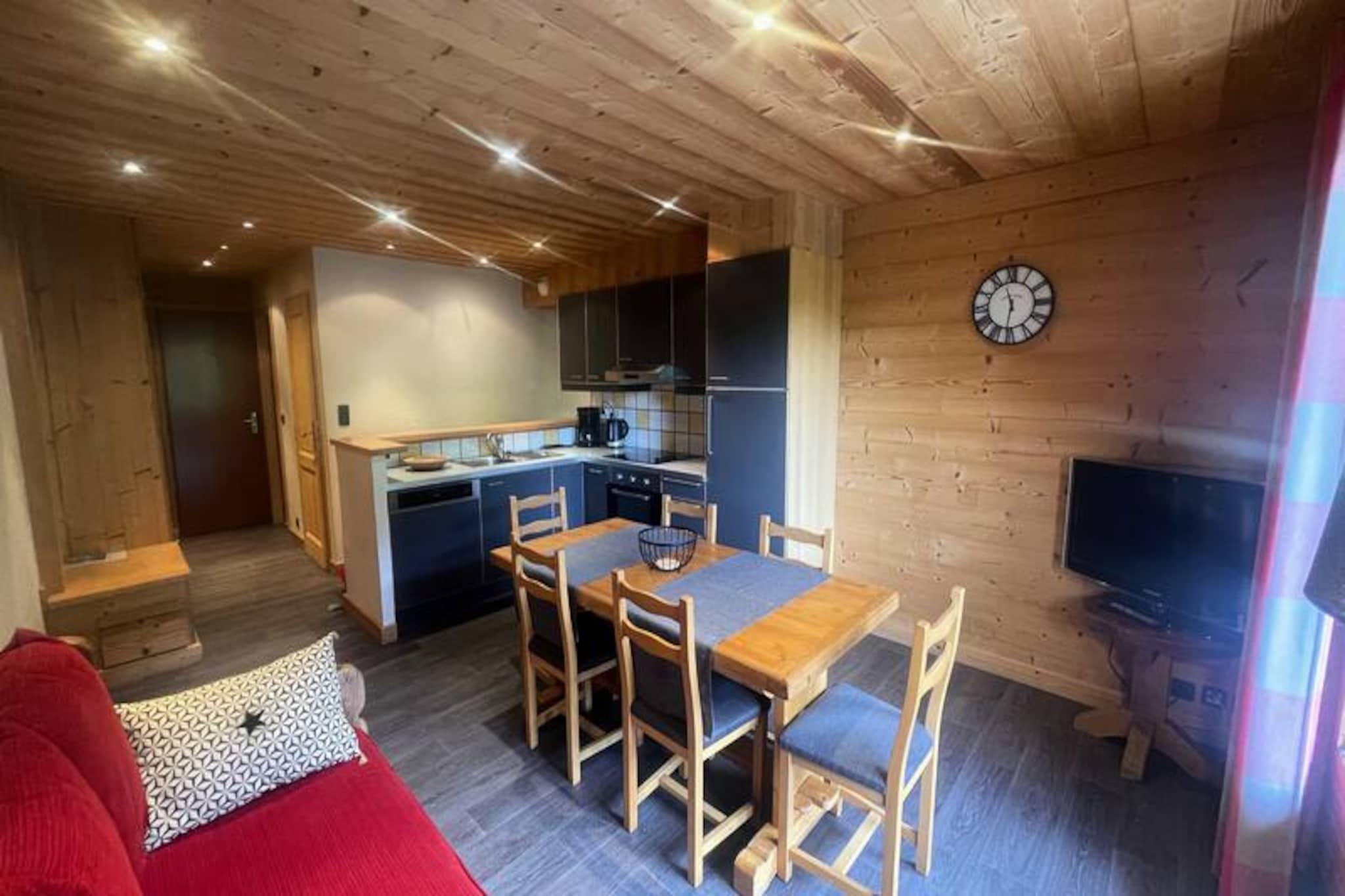 Hvor alpin ro møder bekvemmelighed, tilbyder denne charmerende lejlighed på 50 m² et idyllisk tilflugtssted for op til seks gæster. Beliggende på anden sal i en indbydende bolig, kan ejendommen prale af en sydvendt balkon med betagende udsigt over bjergene, perfekt til at nyde din morgenkaffe eller slappe af efter en dag med eventyr. Uanset om du planlægger en familieferie eller en tur med venner, tilbyder denne lejlighed alle de bekvemmeligheder, der er nødvendige for et mindeværdigt ophold i de franske alper. \n\nIndenfor finder du en hyggelig, men funktionel indretning designet til afslapning og praktisk anvendelighed. Opholdsstuen er omhyggeligt udstyret for at sikre en behagelig oplevelse, mens køkkenet tilbyder alt, hvad du behøver for at tilberede solide måltider efter en dag på pisterne eller udforskning af stierne. Kæledyr er velkomne, og der er bekvem udendørs parkering, hvilket gør dette til en virkelig tilgængelig mulighed for alle rejsende. For ekstra bekvemmelighed kan rengøringsservice samt leje af sengelinned og håndklæder arrangeres på forhånd. \n\nBeliggenheden er en drøm for friluftsentusiaster. Kun 500 meter fra både alpint og langrendsløjper, og kun 1 kilometer fra det charmerende centrum af Grand-Bornand Village, har du adgang til en række aktiviteter og lokale attraktioner. Et gratis shuttle-stoppested er bekvemt placeret kun 20 meter fra boligen, hvilket tilbyder nem transport til Grand-Bornands gondollifte, swimmingpool og fritidsområde i sommermånederne. Den nærliggende busstation, kun 1,1 kilometer væk, sikrer problemfri forbindelser til yderligere udforskning. \n\nUanset om du er her for at stå på ski, vandre eller blot fordybe dig i Alpernes skønhed, er denne lejlighed din port til uforglemmelige oplevelser. Lad den majestætiske bjergudsigt og charmen i Grand-Bornand Village skabe varige minder for dig og dine kære.