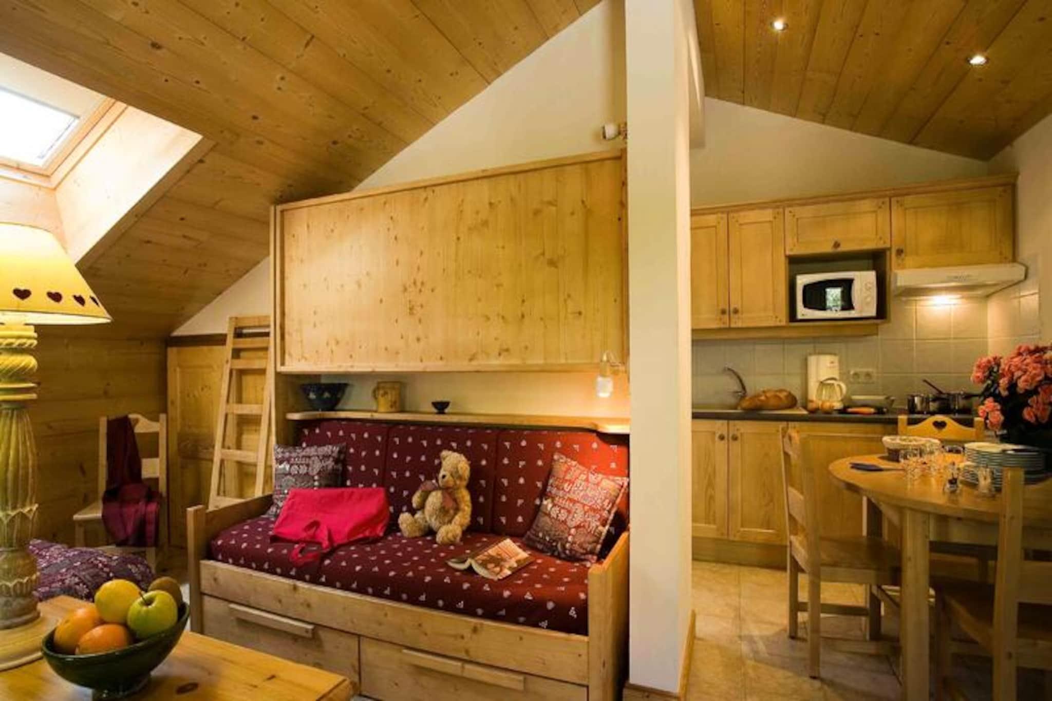 I udkanten af ??den maleriske landsby Grand-Bornand tilbyder denne charmerende studiolejlighed et hyggeligt alpint tilflugtssted for op til fire gæster. Beliggende på fjerde sal i en bolig kombinerer den traditionel bjergstil med moderne komfort og skaber en varm og indbydende atmosfære, der er perfekt til en afslappende ferie. Uanset om du besøger stedet om vinteren eller sommeren, inviterer denne ejendom dig til at fordybe dig i de franske alpers skønhed. \n\nDet 26 m² store studio er omhyggeligt designet til at maksimere plads og komfort. Det har et veludstyret tekøkken, en komfortabel opholdsstue og sovepladser, der sikrer afslappende nætter efter dages eventyr. Gæsterne har også adgang til wellness-området på det nærliggende Hotel La Croix Saint-Maurice, hvilket tilføjer et ekstra strejf af luksus til dit ophold. Med sengelinned og håndklæder samt rengøring inkluderet bliver din ferie ubesværet og stressfri. Udendørs parkering er tilgængelig, og kæledyr er velkomne, hvilket gør den ideel for familier eller par, der rejser med pelsede ledsagere. \n\nLejligheden ligger kun 800 meter fra landsbyens centrum og tilbyder nem adgang til lokale butikker, restauranter og kulturelle attraktioner. For skientusiaster er der kun 1,4 kilometer til nedkørslerne, mens langrendsløjperne ligger inden for 1 kilometer. Den gratis shuttlebus stopper bekvemt 200 meter fra boligen, hvilket sikrer problemfri transport til alle nærliggende aktiviteter. Om sommeren kan du udforske de frodige vandrestier og det betagende bjerglandskab, der omgiver Grand-Bornand. \n\nUanset om du søger spændende vintersport eller rolige sommerferier, er denne studiolejlighed den perfekte base for uforglemmelige alpine eventyr. Med sin blanding af komfort, bekvemmelighed og charme lover den en ferie fyldt med værdsatte minder.