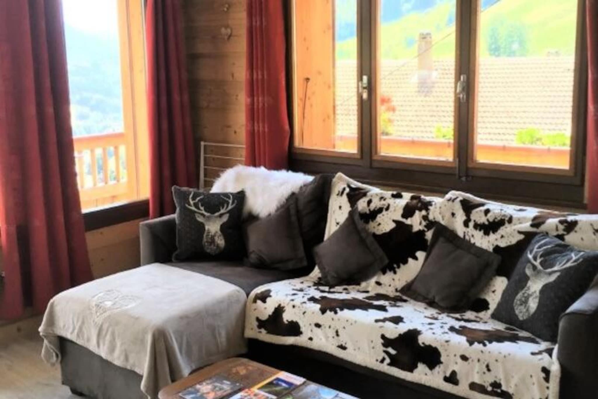 Denne charmerende lejlighed på 55 m² ligger midt i Aravis-bjergkædens betagende landskaber og tilbyder et roligt tilflugtssted for op til fire gæster. Med sin sydvendte balkon kan du sole dig i solen, mens du nyder panoramaudsigten over den maleriske landsby Grand-Bornand og de majestætiske tinder, der omgiver den. Uanset om du søger ro eller eventyr, er denne ejendom perfekt placeret til at levere begge dele. \n\nIndvendigt kombinerer lejligheden komfort og praktisk anvendelighed med en hyggelig planløsning designet til afslapning. Opholdsstuen er omhyggeligt indrettet for at få mest muligt ud af det naturlige lys, mens det veludstyrede køkken inviterer dig til at tilberede solide måltider efter en dag med udforskning. Ejendommen byder et kæledyr velkommen, hvilket sikrer, at din lodne ledsager kan deltage i feriesjov. Parkering er bekvemt tilgængelig på den udendørs plads, og yderligere tjenester såsom rengøring, leje af linned og håndklæder kan arrangeres for at gøre dit ophold endnu mere behageligt. \n\nLejligheden ligger mellem Grand-Bornand Village og Le Chinaillon og tilbyder nem adgang til en række aktiviteter. Skipisterne ligger kun 2,6 km væk, mens langrendsløjperne ligger inden for 2,2 km. En gratis shuttlebus stopper kun 150 meter fra din dør, hvilket gør det nemt at udforske området uden behov for en bil. Om sommeren forvandles regionen til et paradis for vandrere og cyklister, med stier, der snor sig gennem frodige alpine enge og tilbyder fantastiske udsigter fra hvert hjørne. \n\nUanset om du er tiltrukket af pisterne om vinteren eller stierne om sommeren, er denne lejlighed din port til de franske alpers vidundere. Med sine idylliske omgivelser og gennemtænkte faciliteter lover den en ferie fyldt med uforglemmelige øjeblikke og uovertruffen naturlig skønhed.