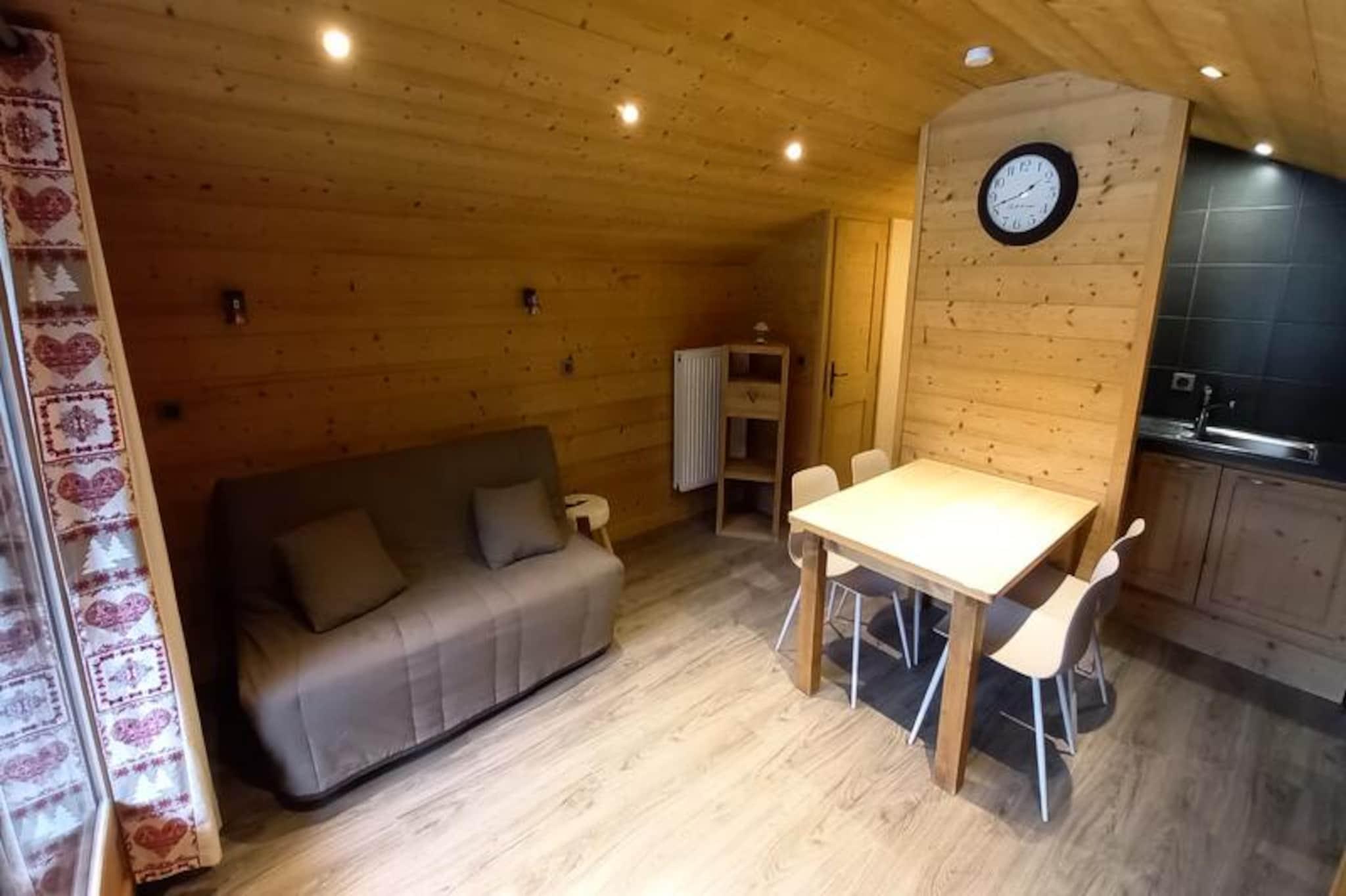 Denne charmerende lejlighed ligger i udkanten af ??en fredfyldt alpeeng og tilbyder en idyllisk tilflugtssted for rejsende, der søger både ro og eventyr. Beliggende i den maleriske landsby Grand-Bornand er ejendommen perfekt placeret til at fordybe dig i de franske alpers skønhed med betagende udsigter og nem adgang til udendørsaktiviteter. Uanset om du besøger stedet om vinteren for de uberørte skiløjper eller om sommeren for frodige vandrestier, lover dette hyggelige tilflugtssted uforglemmelige minder. \n\nLejligheden er på 26 m² og har komfortabel plads til op til fire gæster, hvilket gør den ideel til par eller små familier. Den ligger på anden sal og har en sydvendt balkon, hvor du kan nyde solskinnet og beundre det omkringliggende bjerglandskab. Ejendommen er omhyggeligt udstyret med alle nødvendige faciliteter, herunder en privat udendørs parkeringsplads, sengelinned og valgfri håndklædeudlejning. Kæledyr er velkomne, hvilket sikrer, at ingen familiemedlemmer bliver efterladt. Rengøring er påkrævet for at sikre et friskt og indbydende miljø under dit ophold. \n\nLejligheden har en bekvem beliggenhed kun 600 meter fra alpin- og langrendsløjper og kun 50 meter fra et gratis shuttle-stoppested, hvilket giver dig mulighed for nemt at udforske regionen. Det pulserende centrum af landsbyen Grand-Bornand ligger kun 1,1 km væk og byder på charmerende butikker, restauranter og lokale attraktioner. Om sommeren forvandles området til et paradis for vandrere og cyklister med stier, der snor sig gennem fantastiske alpine landskaber. \n\nUanset om du søger spændende udendørseventyr eller fredelige øjeblikke omgivet af natur, er denne lejlighed din port til de franske alpers vidundere. Lad den friske bjergluft og den majestætiske udsigt forynge din ånd under en uforglemmelig ferie.