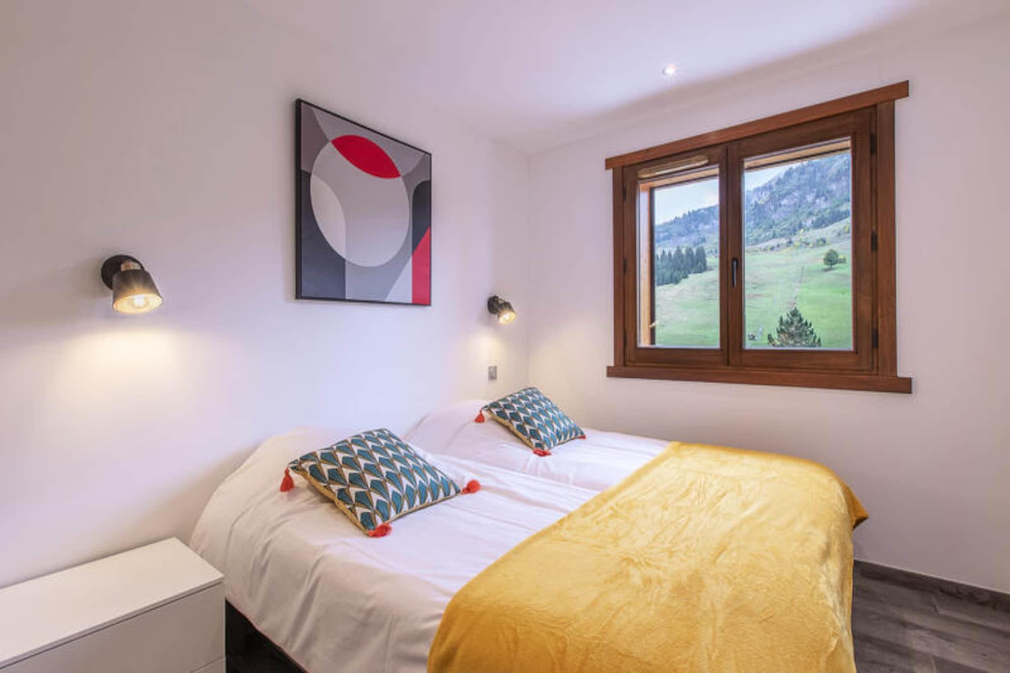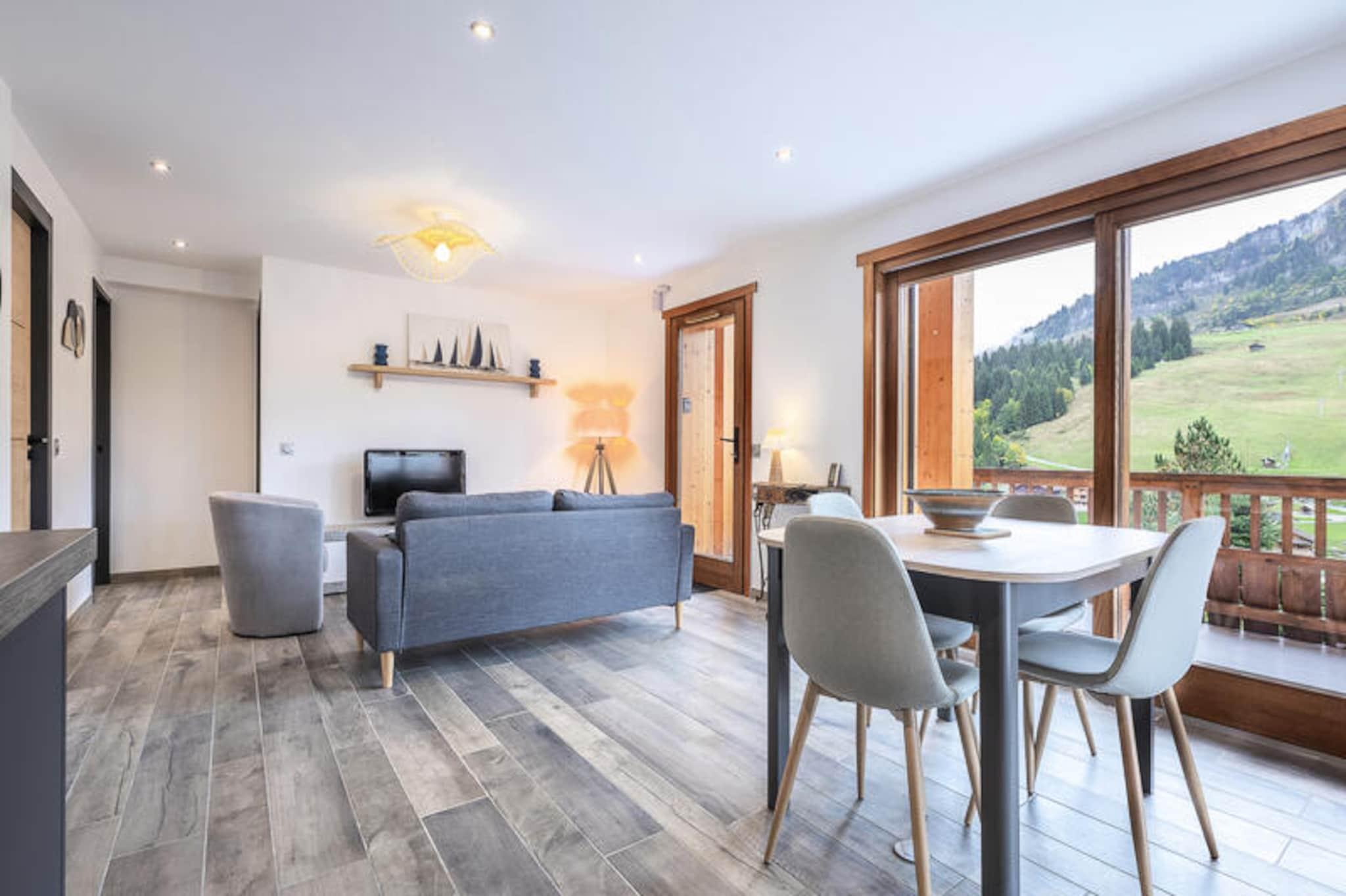 I den maleriske landsby Le Grand-Bornand tilbyder denne charmerende lejlighed på 63 m² et roligt bjergparadis for op til fire gæster. Med sin sydvendte balkon og terrasse vågner du op til en betagende udsigt over de omkringliggende tinder og nyder den friske alpine luft under hele dit ophold. Uanset om du søger eventyr eller afslapning, tilbyder denne ejendom den perfekte balance mellem komfort og bekvemmelighed. \n\nIndvendigt er lejligheden omhyggeligt designet for at sikre en hyggelig og imødekommende atmosfære. Den lyse opholdsstue inviterer dig til at slappe af efter en dag med udforskning, mens det fuldt udstyrede køkken giver dig mulighed for nemt at tilberede lækre måltider. Ejendommen inkluderer udendørs parkering, en garage og alt nødvendigt sengetøj, hvilket sikrer en problemfri oplevelse. Bemærk venligst, at kæledyr ikke er tilladt, og rengøring er inkluderet, eksklusive køkken, opvask og bortskaffelse af affald. \n\nLejligheden ligger kun 600 meter fra centrum af Chinaillon og de nedadgående skiløjper og giver nem adgang til det bedste af Le Grand-Bornand. Et gratis shuttle-stoppested er bekvemt placeret kun 50 meter væk, hvilket gør det nemt at udforske området uden bil. Om vinteren kan du nyde skiløb og snowboarding på uberørte pister, mens sommeren byder på vandrestier, cykelruter og fantastiske naturlandskaber. \n\nUanset om du er her for at grave dig gennem frisk puddersne eller sole dig i de franske alpers skønhed, er denne lejlighed din port til uforglemmelige bjergoplevelser. Book dit ophold og skab varige minder i denne idylliske alpeparadis.