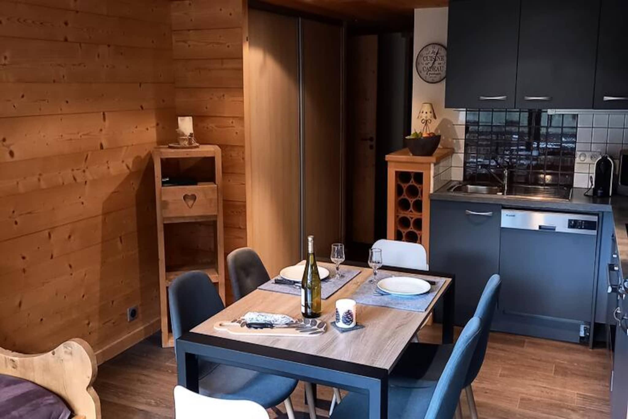 På tredje sal i en charmerende alpebolig inviterer denne hyggelige lejlighed på 36 m² dig til at slappe af og nyde den betagende udsigt over bjergene fra dens sydvendte balkon. Perfekt til en familie eller en gruppe venner, tilbyder den et varmt og imødekommende tilflugtssted i hjertet af de franske alper. Uanset om du søger eventyr på pisterne eller fredelige øjeblikke omgivet af natur, sikrer denne ejendom et mindeværdigt ophold. Indenfor finder du alle de bekvemmeligheder, der er nødvendige for en afslappende ferie. Lejligheden har plads til op til fem gæster og har et veludstyret køkken, en komfortabel opholdsstue og omhyggeligt indrettede sovepladser. Det lyse interiør er designet til at få dig til at føle dig hjemme, mens moderne bekvemmeligheder sikrer bekvemmelighed under hele dit ophold. Parkering er tilgængelig på en udendørs plads, og sengelinned er inkluderet for din komfort. Håndklæder kan lejes efter anmodning, og rengøring er påkrævet for at opretholde ejendommens perfekte stand. Denne lejlighed ligger kun 500 meter fra alpinskibakken og langrendsløjperne og er en drøm for vintersportsentusiaster. Om sommeren tilbyder det nærliggende fritidsområde og swimmingpoolen sjove aktiviteter for alle aldre. En gratis shuttlebus stopper bekvemt kun 20 meter væk, hvilket giver nem adgang til Grand-Bornand-svævebanerne og landsbyens centrum, som kun ligger 1 kilometer væk. For dem, der ankommer med bus, ligger stationen kun 1,1 kilometer fra boligen. Med sin førsteklasses beliggenhed og fantastiske alpine omgivelser er denne lejlighed den perfekte base for at udforske Grand-Bornands skønhed. Uanset om du står på ski, vandrer eller blot nyder den rolige atmosfære, er hvert øjeblik her en mulighed for at skabe uforglemmelige minder.