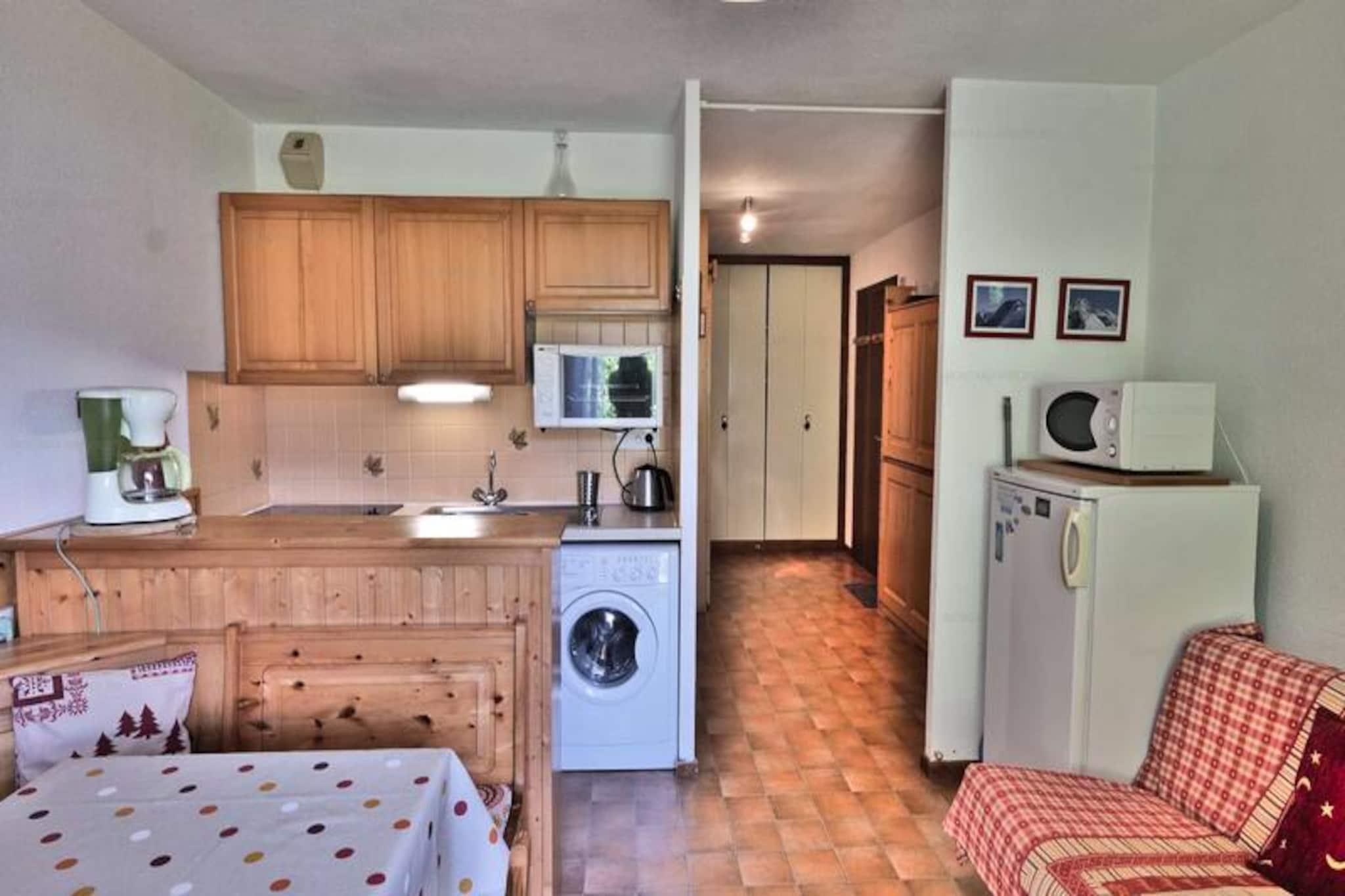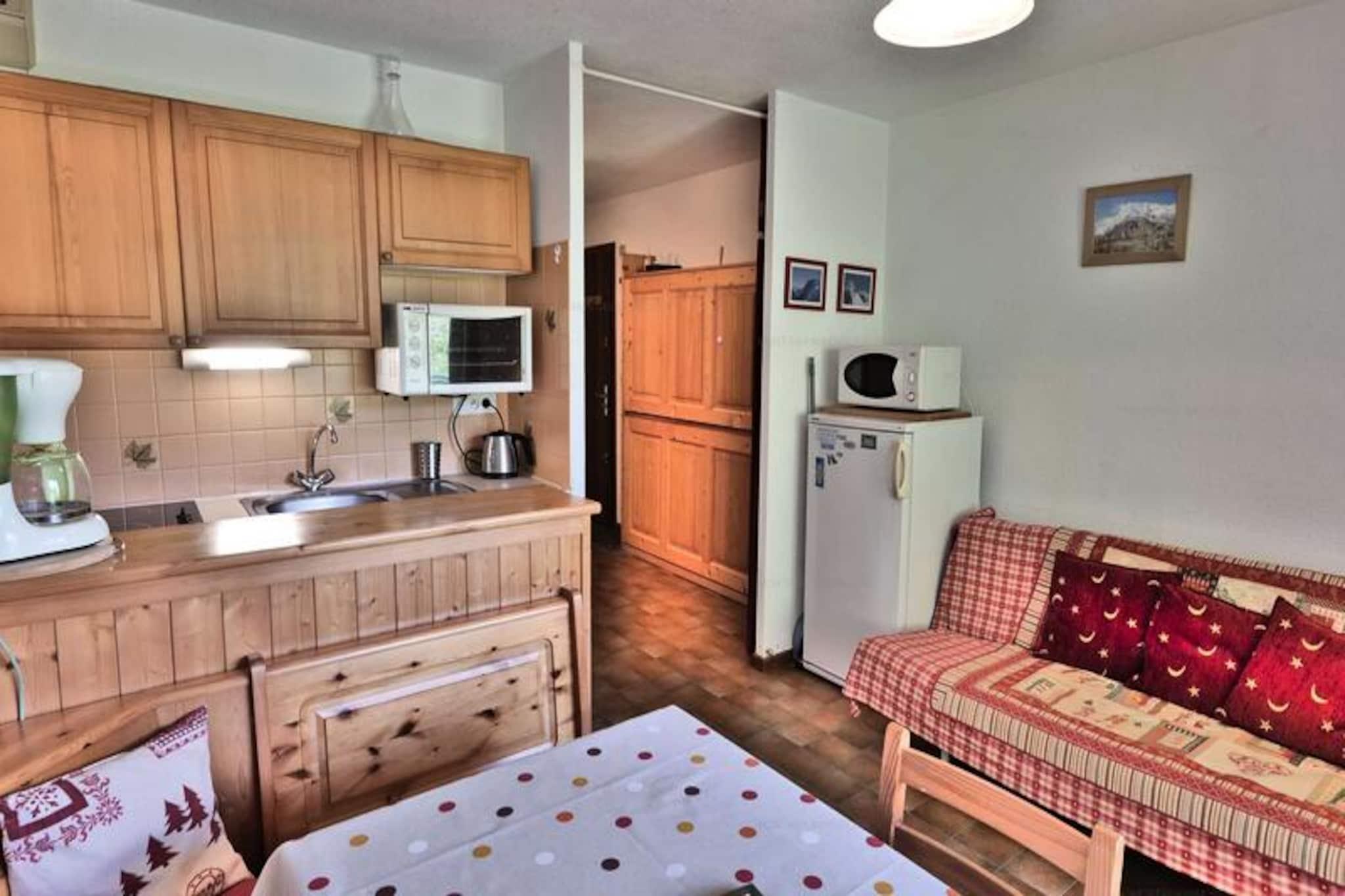 Højt over den charmerende landsby Nant Robert tilbyder denne hyggelige lejlighed i Millepertuis-residensen en rolig oase med betagende udsigt over de omkringliggende bjerge og dalen. Uanset om du søger et fredeligt tilflugtssted eller en eventyrfyldt ferie, tilbyder denne ejendom den perfekte balance mellem komfort og bekvemmelighed. Forestil dig at nippe til din morgenkaffe på balkonen, mens solen står op over de alpine tinder og sætter tonen for en dag med udforskning eller afslapning. \n\nIndvendigt er lejligheden omhyggeligt designet til at maksimere plads og komfort. Det åbne køkken og stue skaber en indbydende atmosfære, komplet med en sovesofa til ekstra sovepladser. En hyggelig alkove har en dobbeltseng, mens et separat soveområde inkluderer en enkelt køjeseng, hvilket gør den ideel til par eller små familier. Badeværelset er udstyret med moderne bekvemmeligheder, der sikrer et behageligt ophold. Bemærk venligst, at lagner og håndklæder ikke er inkluderet, så sørg for at medbringe dine egne fornødenheder for en problemfri oplevelse. \n\nResidensen er let tilgængelig i bil, med en parkeringsgarage til rådighed for køretøjer under 1,95 m i højden. Fra parkeringspladsen fører en kort gåtur op ad fem trapper dig til lejligheden, hvor du finder ro og en fantastisk udsigt. Landsbyens centrum, kun fem minutters kørsel væk, byder på butikker, restauranter og lokale attraktioner, så du har alt, hvad du behøver, lige ved hånden. \n\nUanset om du besøger stedet for en romantisk ferie eller en familieferie, tilbyder denne lejlighed en unik mulighed for at fordybe dig i de franske alpers skønhed. Med sin to-stjernede vurdering og charmerende atmosfære lover den et uforglemmeligt ophold omgivet af natur og alpin charme.