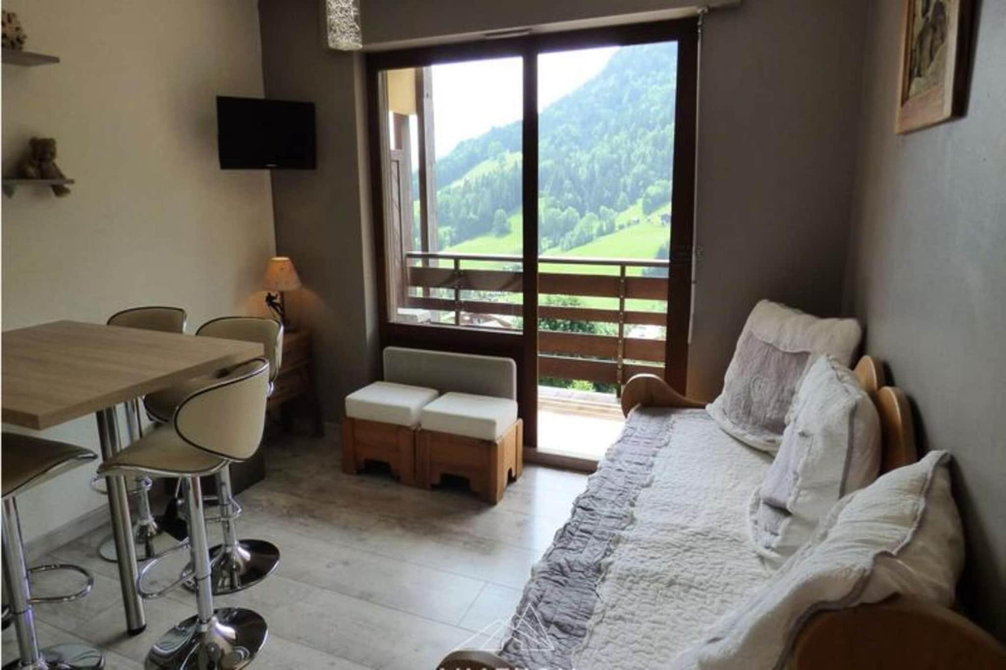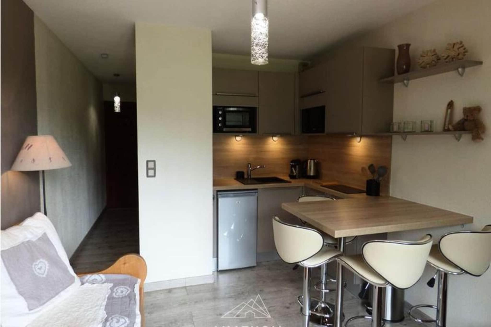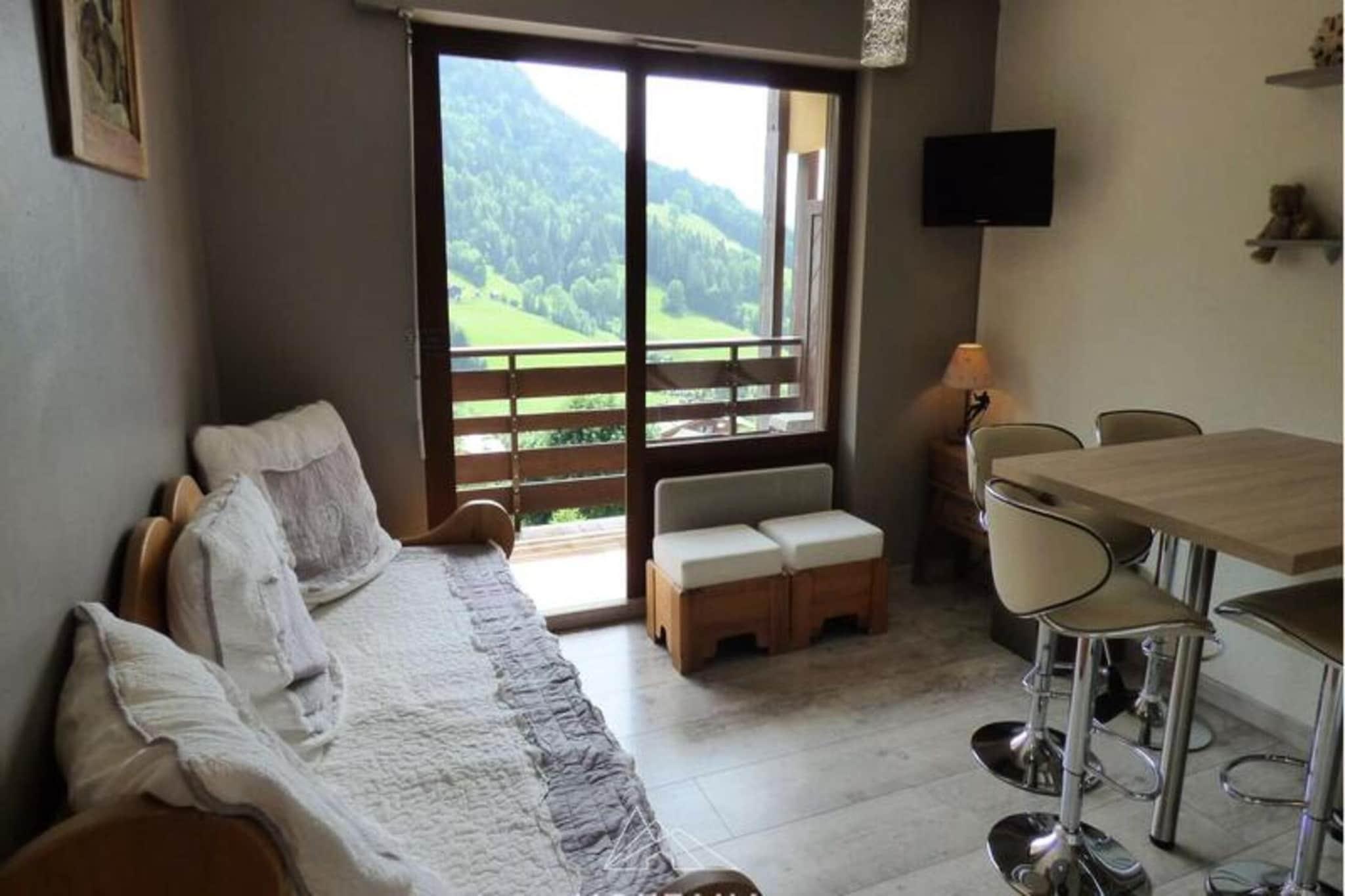 Dette smukt renoverede 20 m² store studie er ideelt for op til 4 personer og er beliggende i Nant Robert-området, kun 5 minutter i bil fra centrum af landsbyen og butikker. Lejligheden byder på en sydvestvendt altan med en fantastisk udsigt over landsbyen og den omkringliggende Aravis-bjergkæde. Indvendigt har studiet en dobbeltseng (140 cm) i soveværelset, en stue med en 2x80 sovesofa og et brusebadeværelse med toilet. Lejligheden er beliggende på første sal (fjerde fra foden af ??boligen) og er bedømt til 2 stjerner for 2 personer. Gæsterne kan nyde de fredelige omgivelser og den naturskønne udsigt, mens de er tæt på landsbyens faciliteter. Sengelinned og håndklæder leveres ikke, og der skal betales turistskat for voksne (18+ år). Ejendommen er bekvemt placeret med nem adgang til transportforbindelser: Annecy SNCF-togstation ligger 32 km derfra, Genève Lufthavn ligger 52 km derfra, og Lyon Lufthavn ligger 155 km derfra.