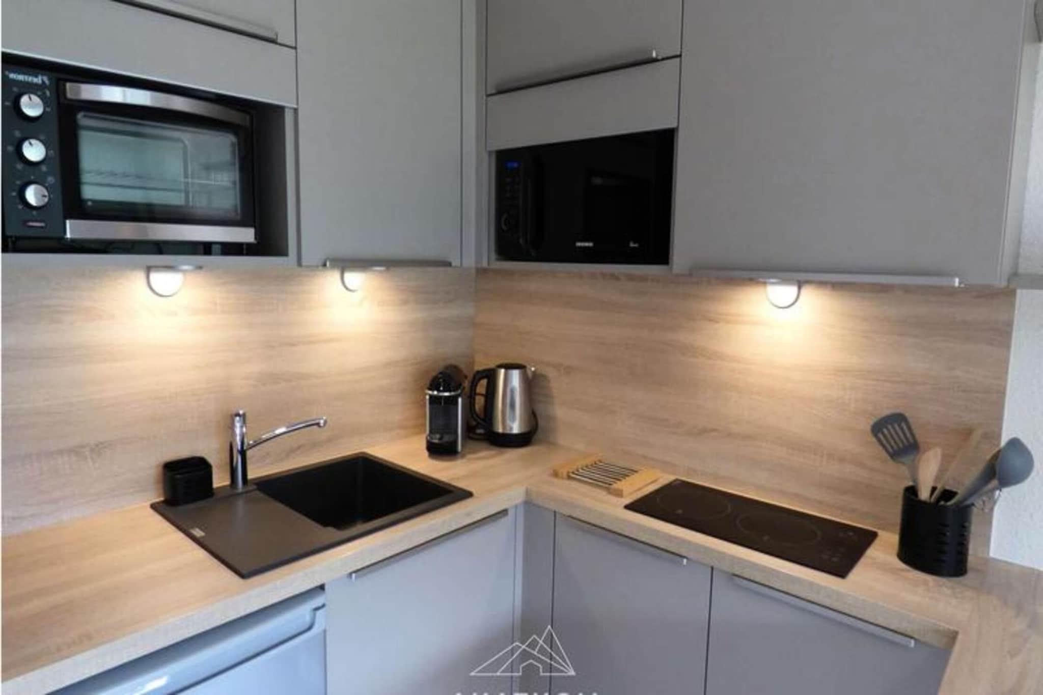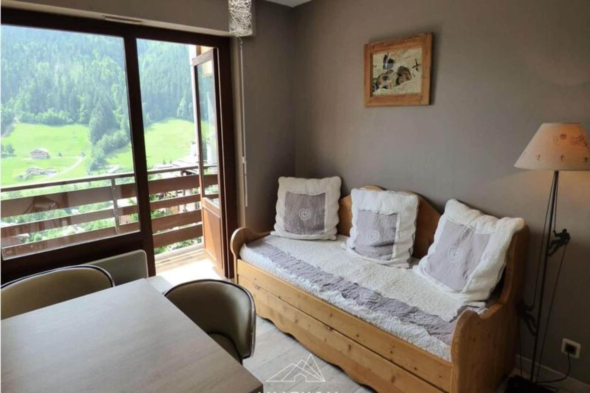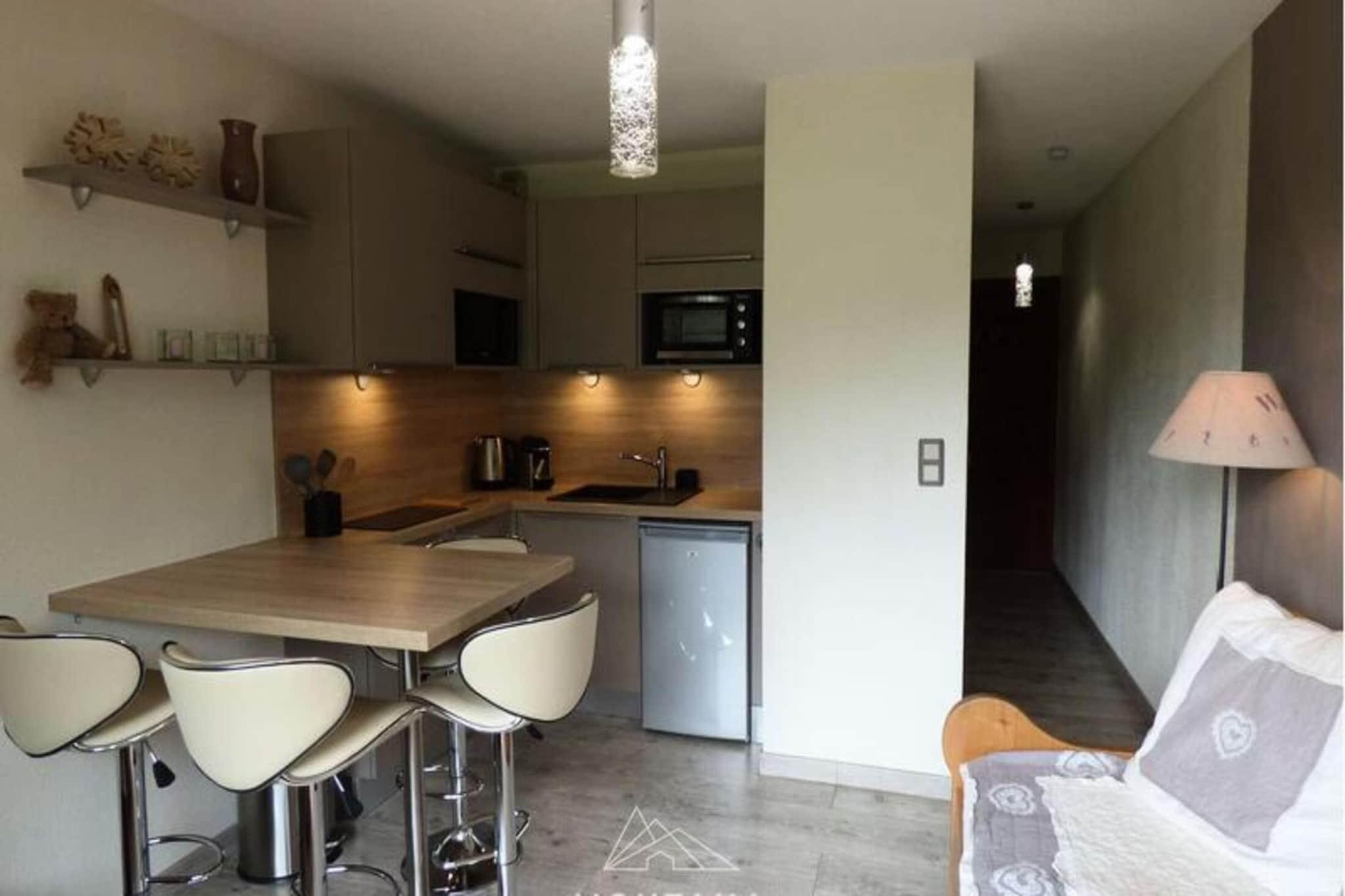 Dette smukt renoverede 20 m² store studie er ideelt for op til 4 personer og er beliggende i Nant Robert-området, kun 5 minutter i bil fra centrum af landsbyen og butikker. Lejligheden byder på en sydvestvendt altan med en fantastisk udsigt over landsbyen og den omkringliggende Aravis-bjergkæde. Indvendigt har studiet en dobbeltseng (140 cm) i soveværelset, en stue med en 2x80 sovesofa og et brusebadeværelse med toilet. Lejligheden er beliggende på første sal (fjerde fra foden af ??boligen) og er bedømt til 2 stjerner for 2 personer. Gæsterne kan nyde de fredelige omgivelser og den naturskønne udsigt, mens de er tæt på landsbyens faciliteter. Sengelinned og håndklæder leveres ikke, og der skal betales turistskat for voksne (18+ år). Ejendommen er bekvemt placeret med nem adgang til transportforbindelser: Annecy SNCF-togstation ligger 32 km derfra, Genève Lufthavn ligger 52 km derfra, og Lyon Lufthavn ligger 155 km derfra.