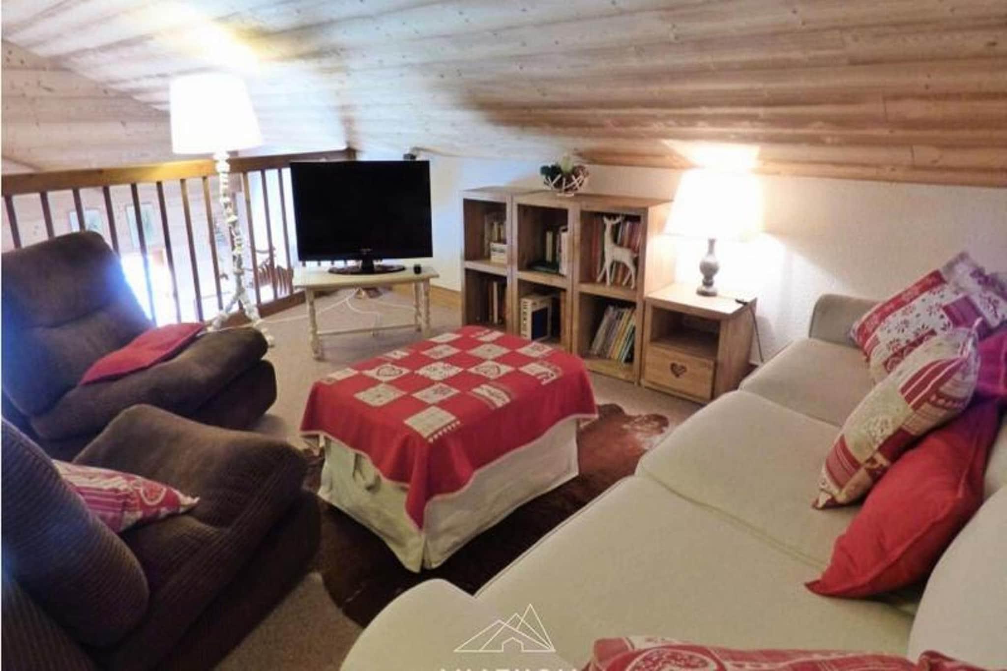 Denne charmerende lejlighed er beliggende i residensen i Grand Bornand og tilbyder et rummeligt og komfortabelt tilflugtssted for op til 5 personer. Beliggende kun 200 meter fra lokale butikker og 1 km fra svævebanerne, med en gratis shuttle-stop kun 50 meter væk, er lejligheden ideelt placeret til både vinter- og sommeraktiviteter. Lejlighedens beliggenhed giver også nem adgang til udendørs rekreation, herunder den nærliggende fitnesssti og naturskønne vandremuligheder. Om vinteren er Grand Bornand kendt for sine skiløjper, mens gæsterne i de varmere måneder kan nyde mountainbiking, vandreture og udforske den smukke Aravis-række. Den charmerende landsby Grand Bornand ligger kun en kort afstand derfra og byder på restauranter, butikker og lokale attraktioner. Derudover er Annecy (32 km), Genève (52 km) og Lyon (155 km) inden for rækkevidde for dem, der søger dagsture eller yderligere udforskning. Indkvarteringen har et fuldt udstyret køkken, der åbner til en hyggelig stue, et soveværelse med en dobbeltseng og en mezzanin med to enkeltsenge og en sovesofa, der giver rigelig plads til en familie eller en lille gruppe. Et badeværelse med badekar og separat toilet tilføjer til bekvemmeligheden. Den store sydvendte balkon byder på en fantastisk udsigt over floden og de omkringliggende bjerge.