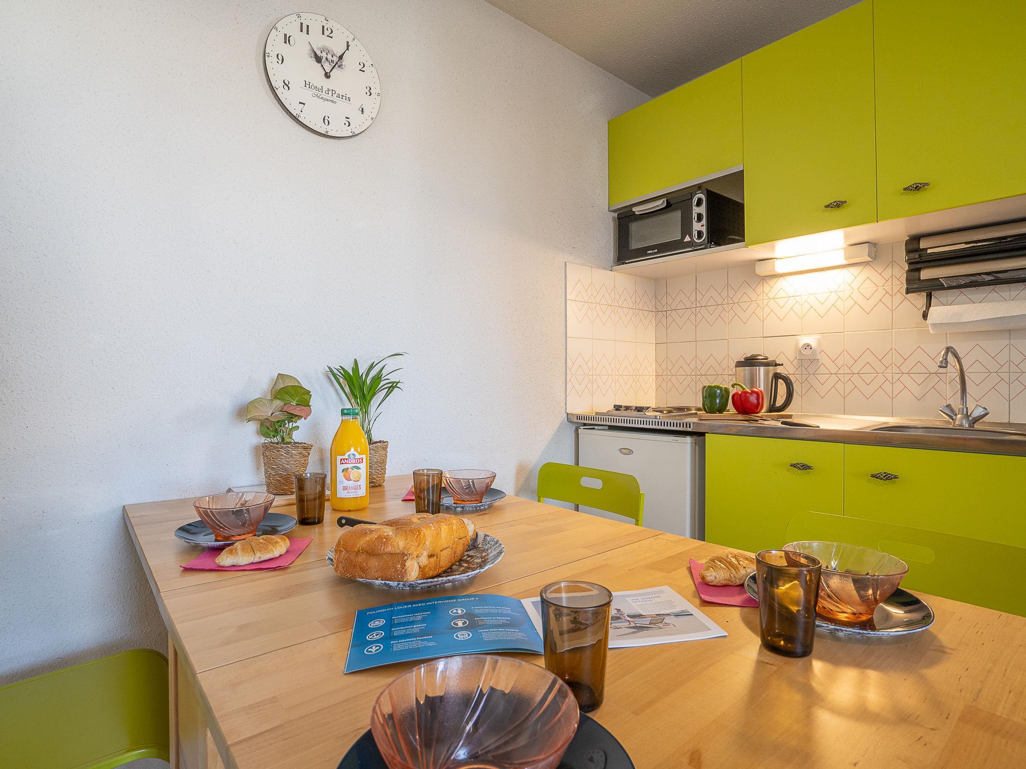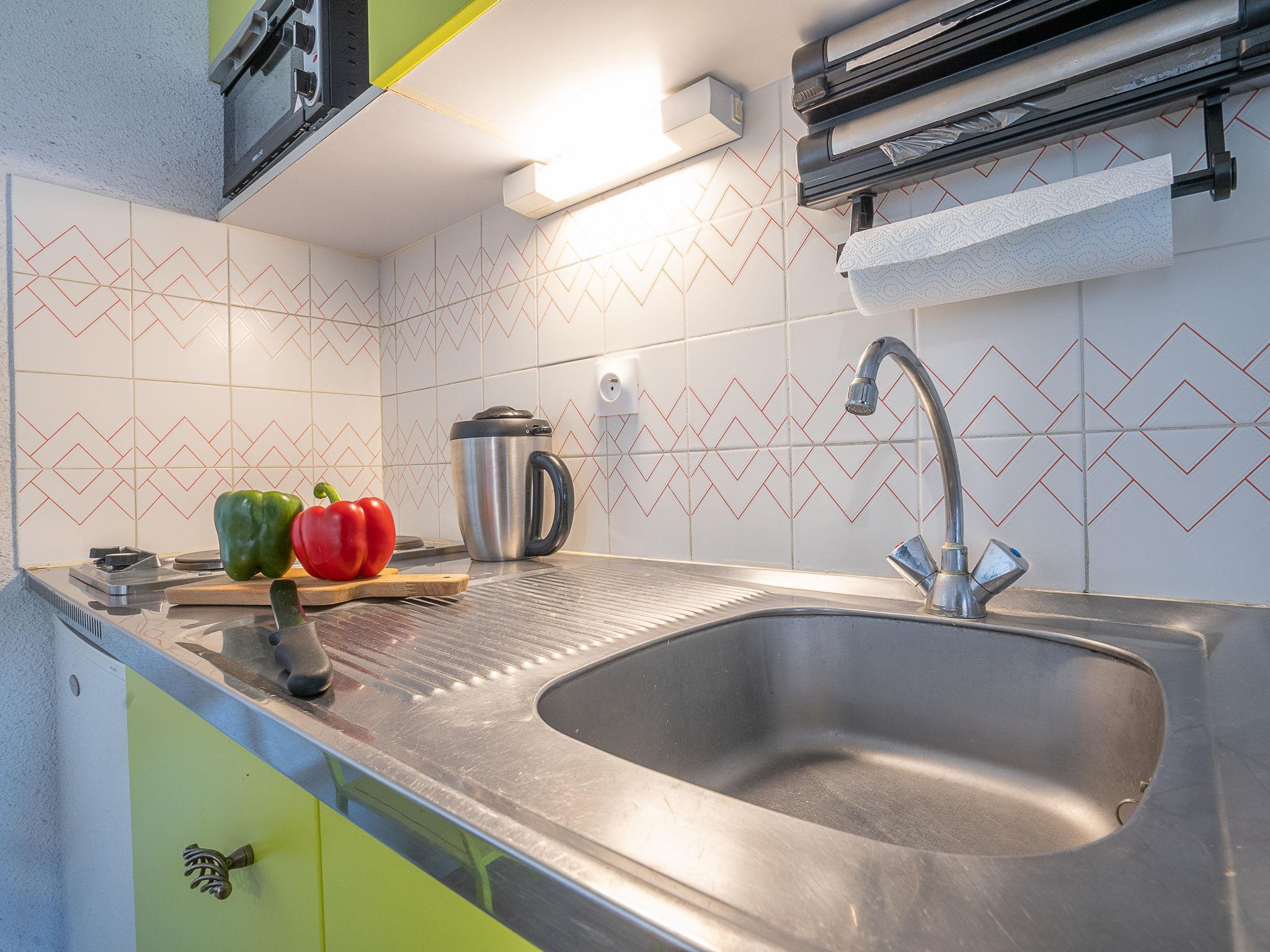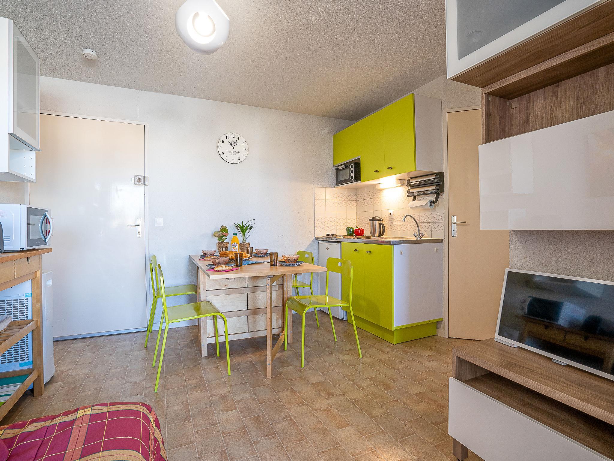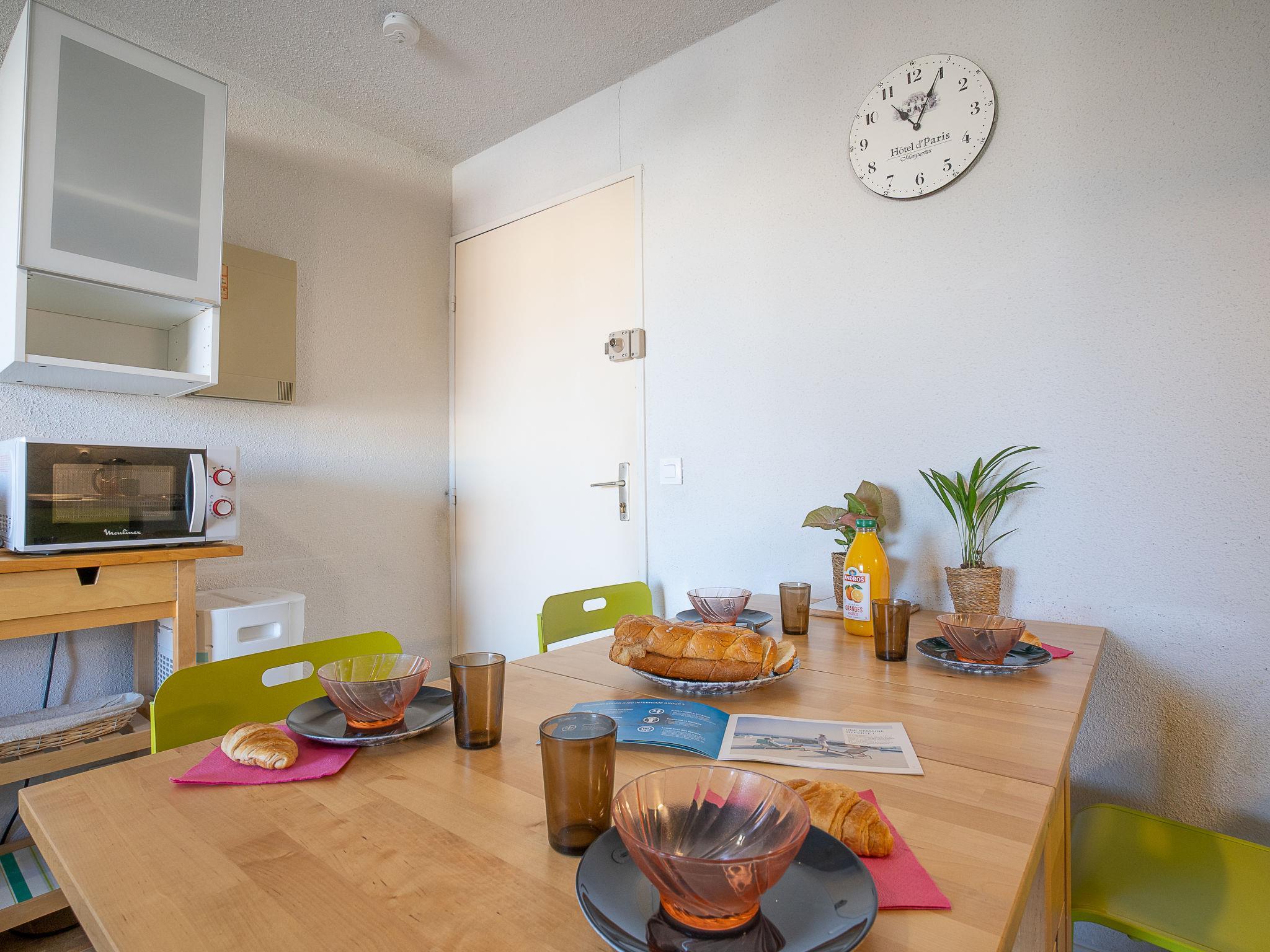 2-room apartment 22 m2 on 2nd floor. Living/dining room with 1 double sofabed (140 cm, length 190 cm), TV (flat screen). Exit to the terrace. 1 small room with 1 french bed (140 cm, length 190 cm). Kitchenette (2 hot plates, mini-oven). Shower/WC. Terrace 9 m2, north-west facing position. Terrace furniture. View of the swimming pool. Facilities: Internet (WiFi, extra). Please note: maximum 1 pet/ dog allowed. Smoke alarm.