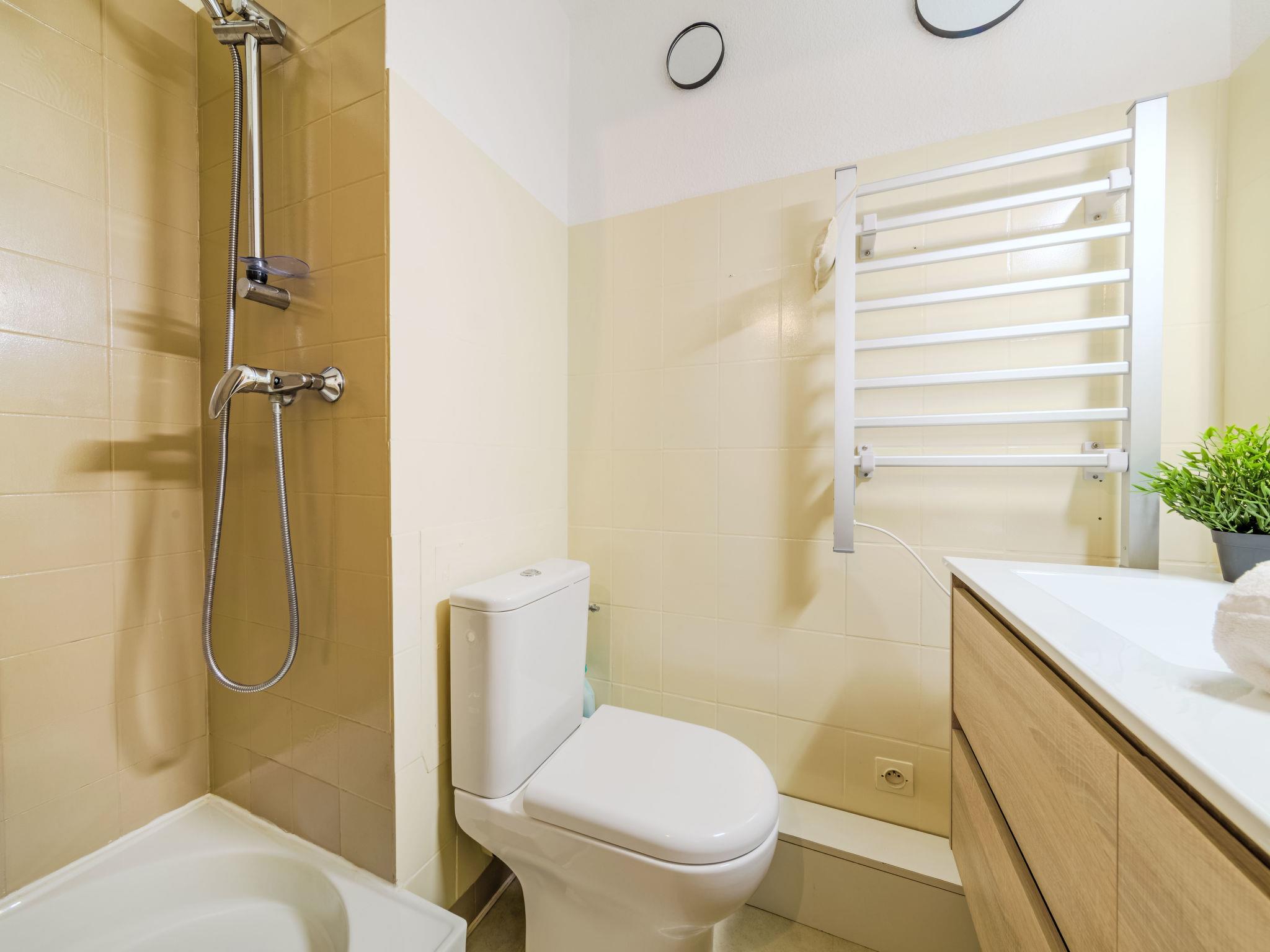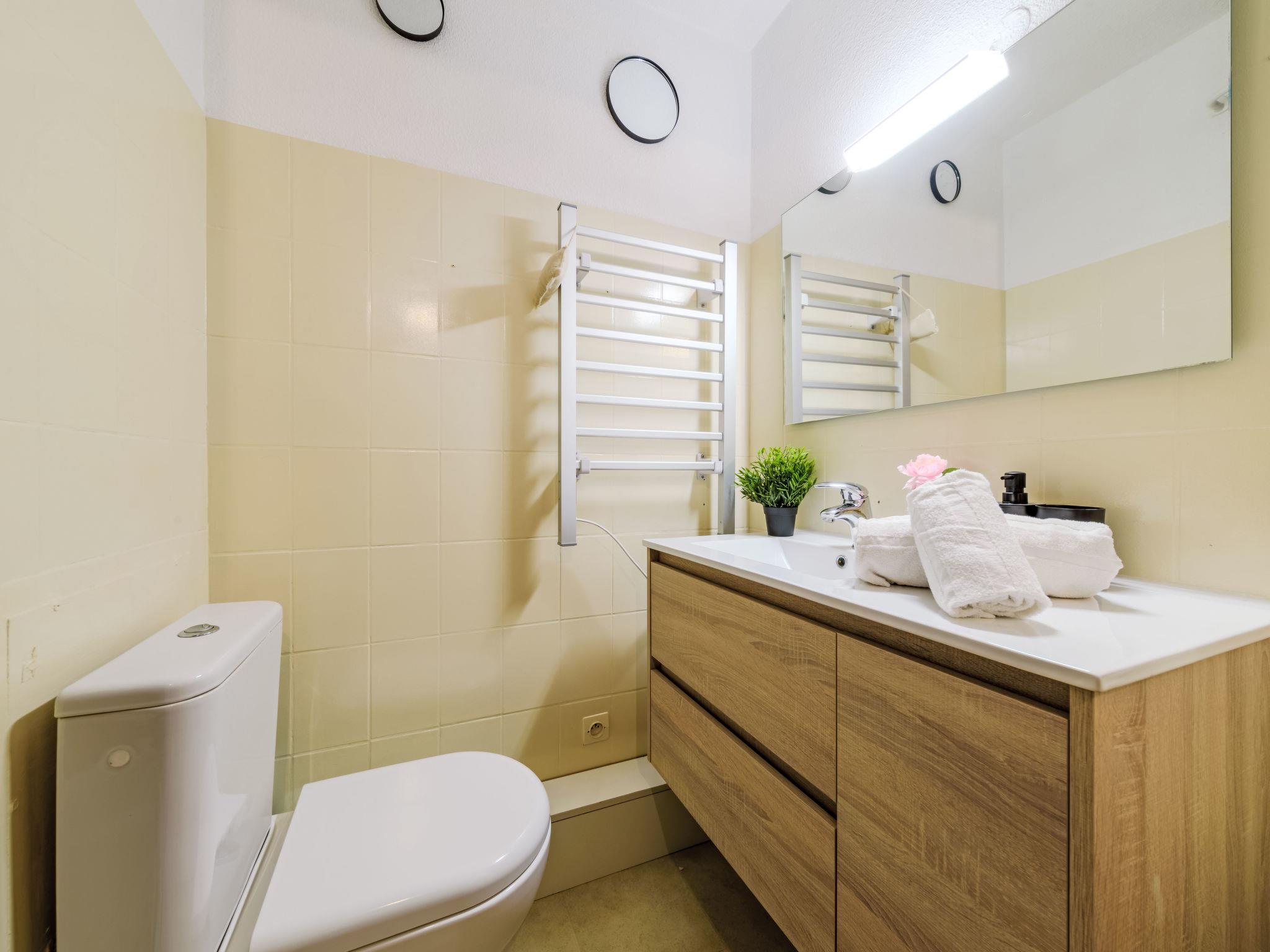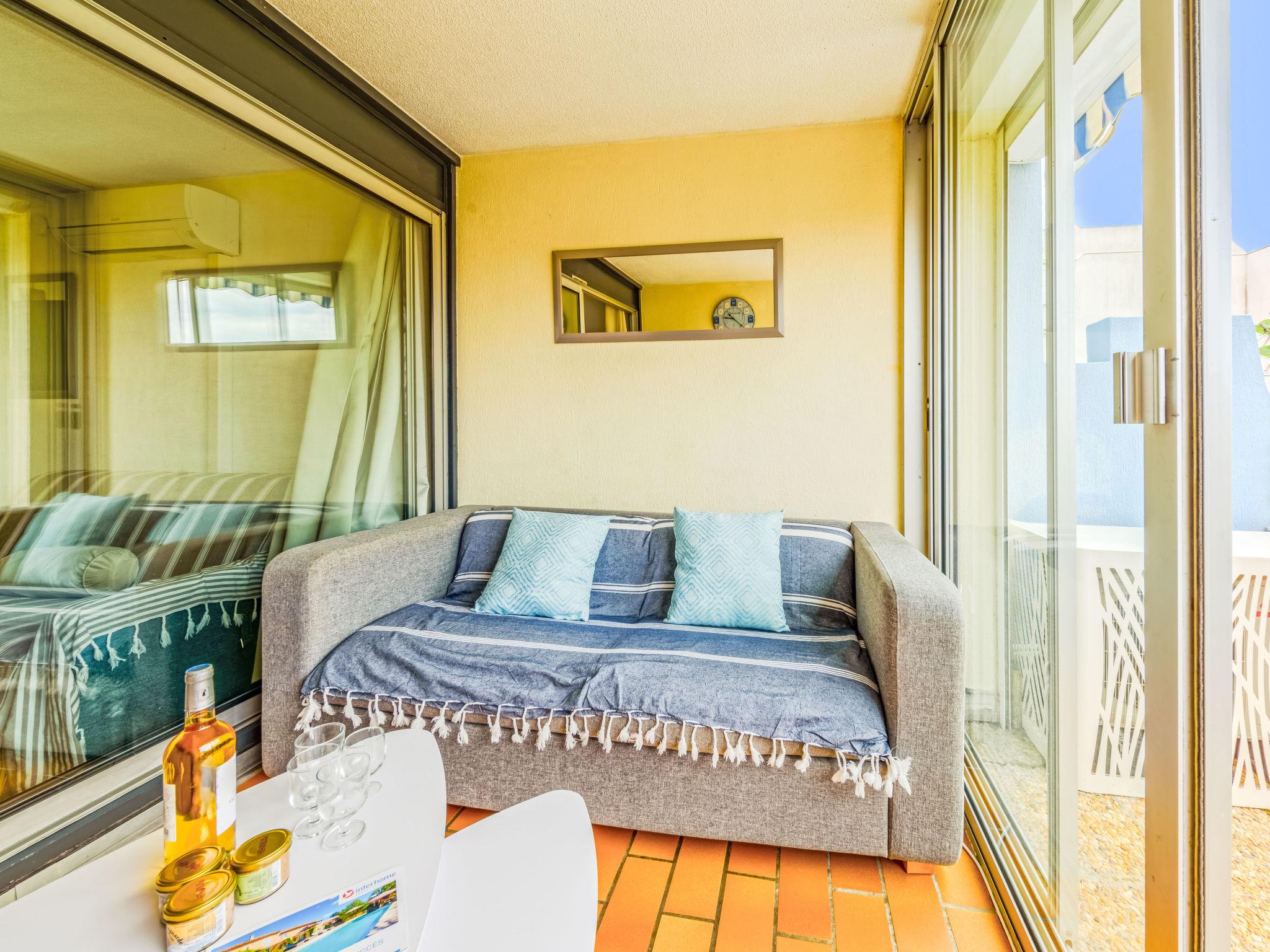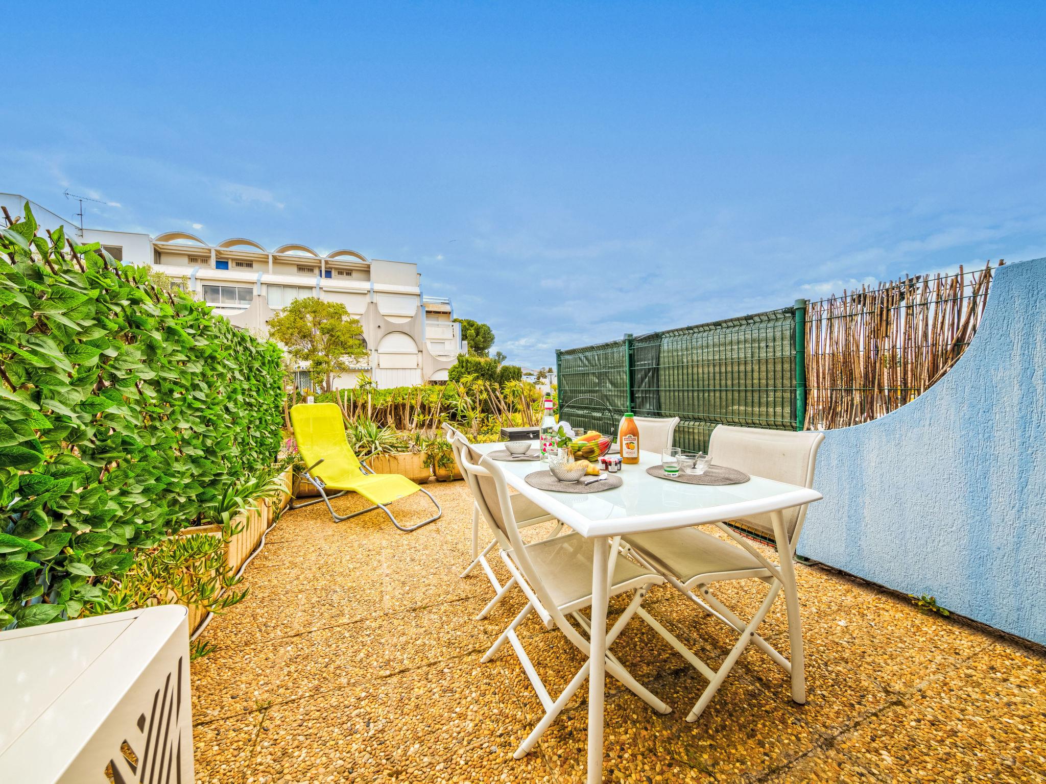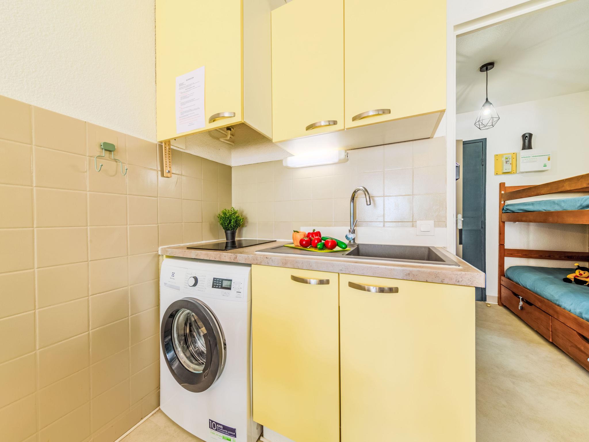 1-room studio 22 m2, on the ground floor. Very beautiful furnishings: living/dining room with 1 double sofabed (140 cm, length 190 cm), TV (flat screen). Entrance hall with 2 beds (70 cm, length 190 cm). Kitchenette (mini-oven, oven, 2 ceramic glass hob hotplates, toaster, kettle, microwave, electric coffee machine). Shower/WC. Air-conditioning. Terrace 15 m2, south facing position. Terrace furniture, covered balcony. Facilities: washing machine, baby cot. Internet (WiFi, extra). Parking space n 2127. Please note: maximum 1 pet/ dog allowed. Smoke alarm. Offer by a private individual according to Art. 155, IV of CGI.