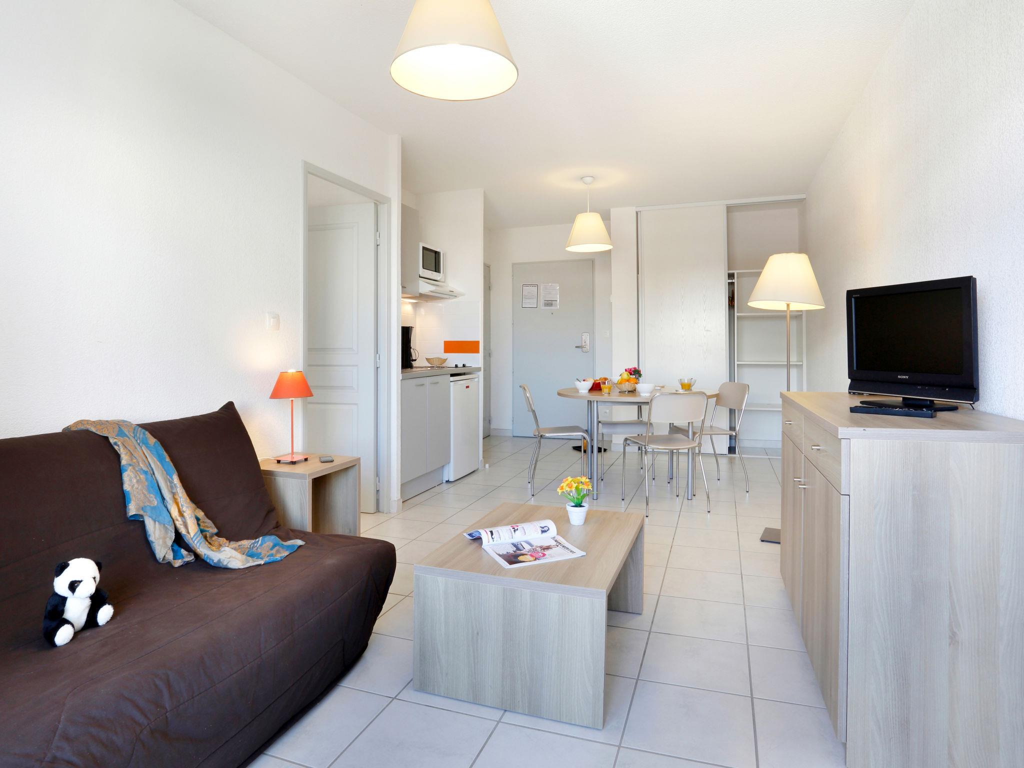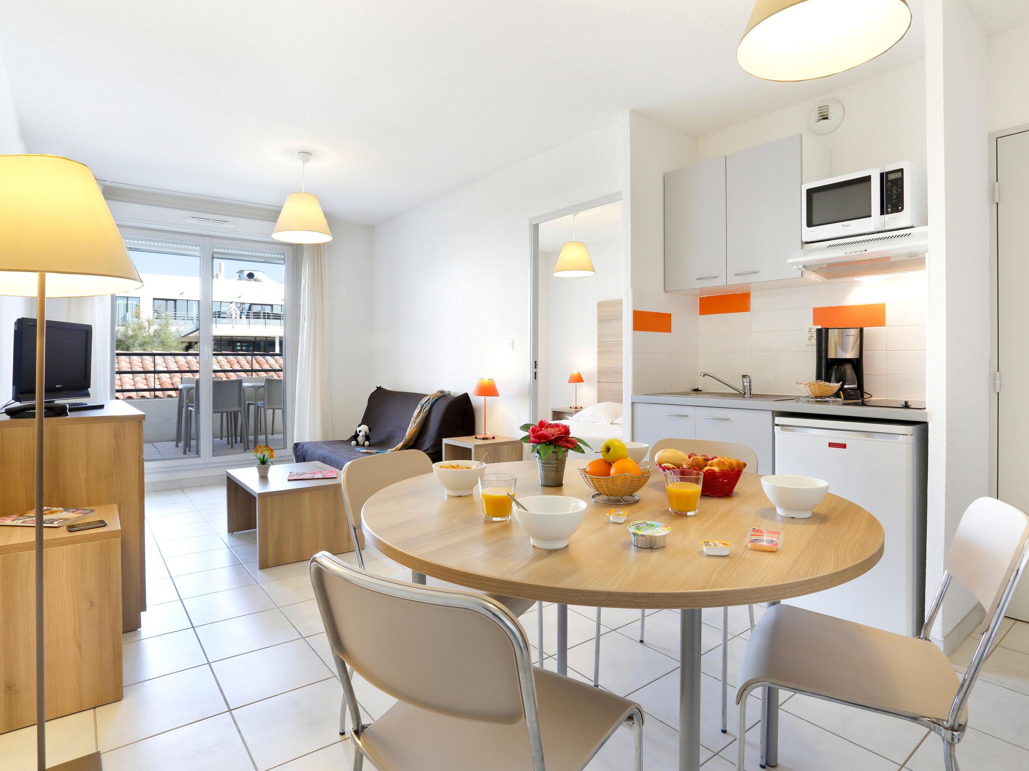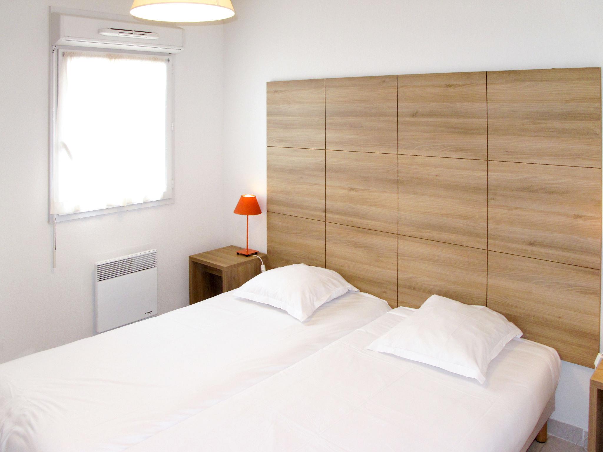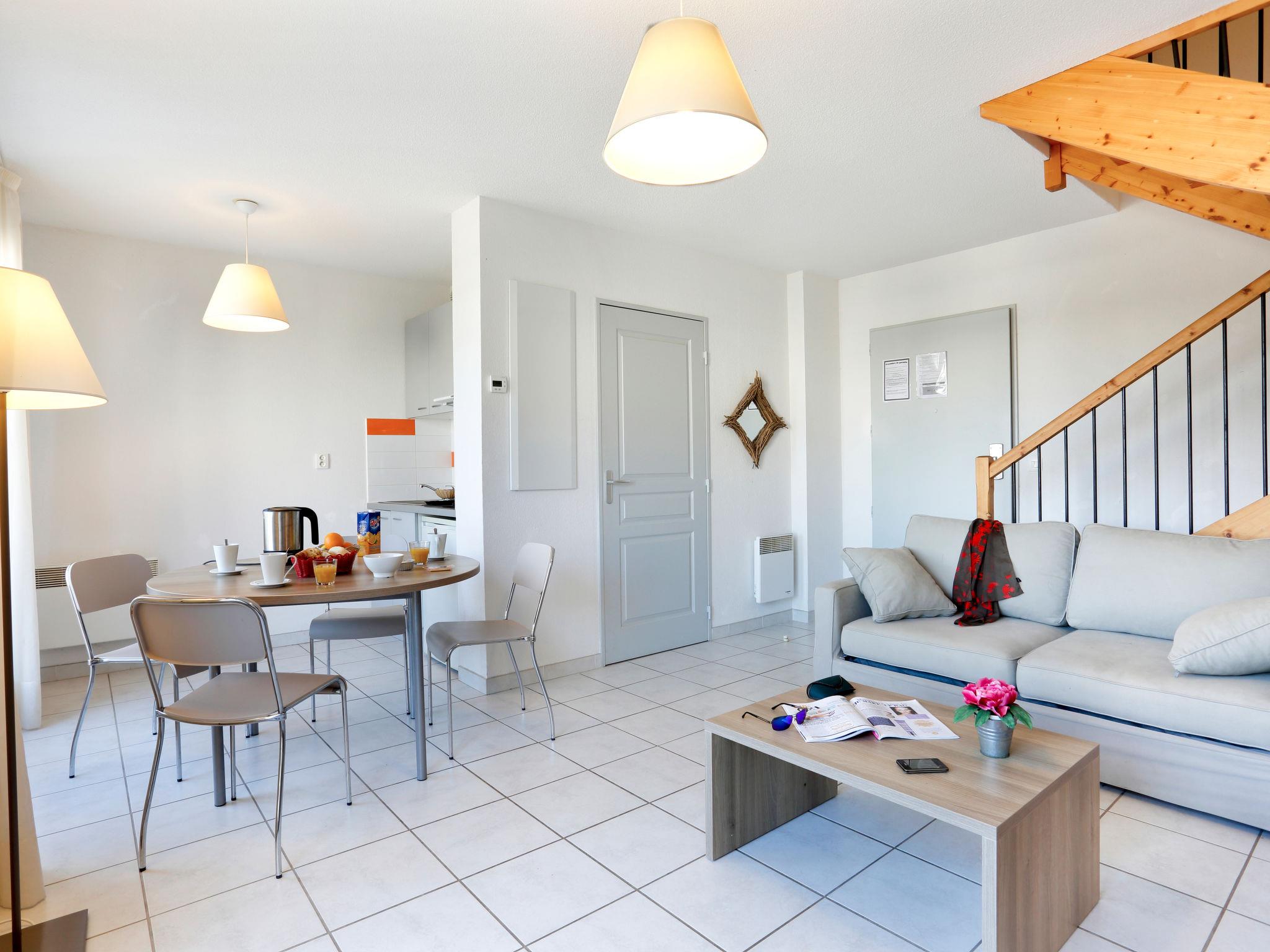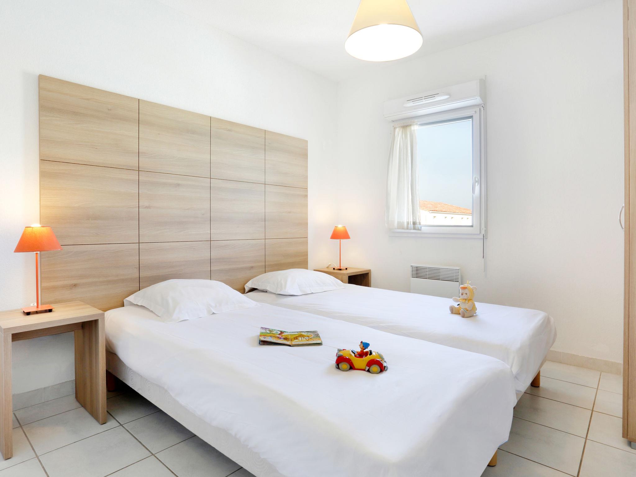 Resort "Cap Med". 7 houses in the resort. 126 apartments in the residence. 3 km from the centre of Le Grau du Roi, 9 km from the centre of Aigues-Mortes, 35 km from the centre of Montpellier, in a busy position, 3 km from the sea. For shared use: property (fenced), plants, swimming pool heated, fenced (20 x 8 m, depth 150 cm, seasonal availability: 02.May. - 12.Sep.). Terrace. In the complex: reception, WiFi, sauna (extra). Fitness room, washing machine (extra), tumble dryer (for shared use, extra). Parking (limited number of spaces) on the premises. Supermarket 250 m, sandy beach 3 km. Nearby attractions: Amigoland 300 m. Please note: the photograph shows a typical example. The holiday properties may differ in living space, floorplan, equipment and furnishing.