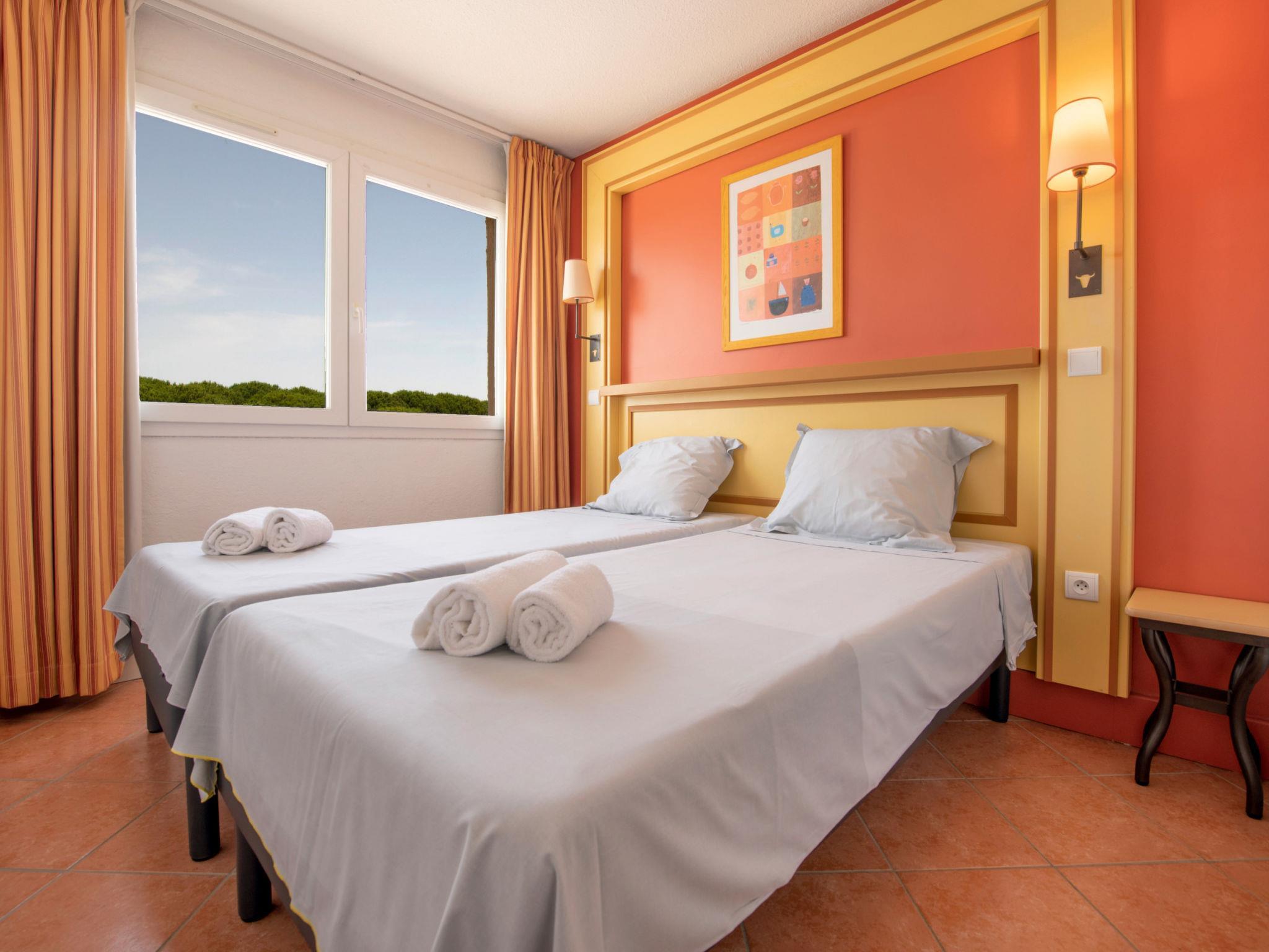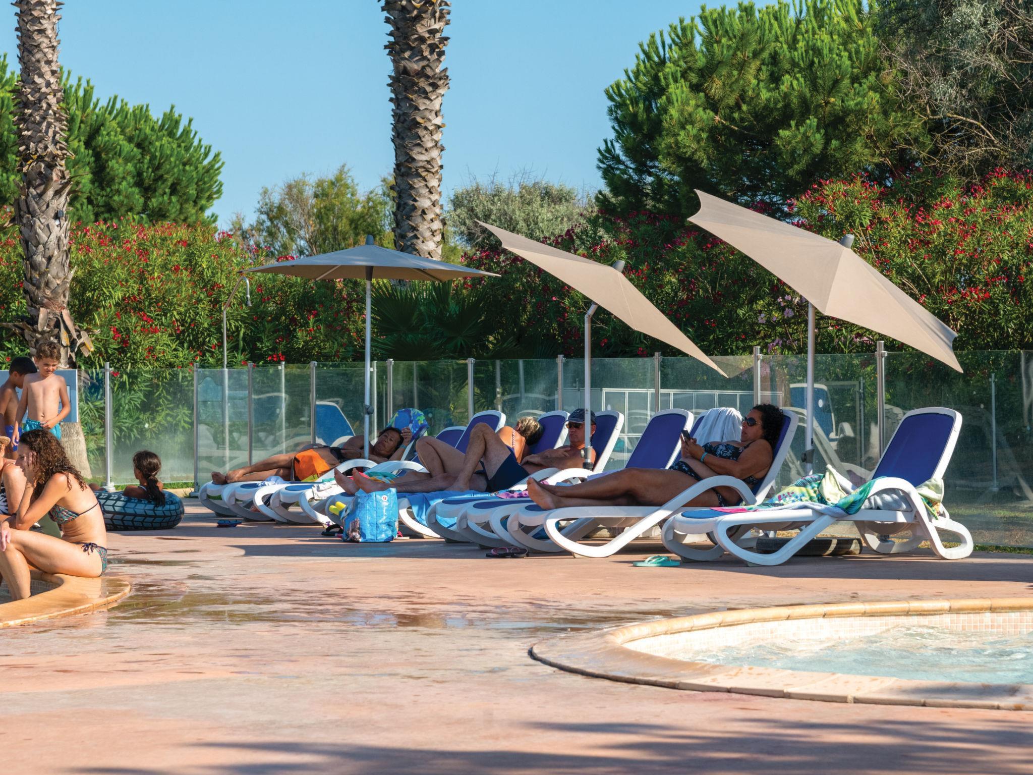 Holiday village "Sowell Résidence Les Sablons". 57 apartments in the residence. 3.5 km from the centre of Grau du Roi, 4 km from the centre of La Grande Motte, 9 km from the centre of Aigues Mortes, in the heart of the city, 50 m from the sea, 50 m from the beach, direct access to the beach. For shared use: well-kept garden 3 ha, swimming pool heated (100 m2, seasonal availability: 01.Jun. - 31.Sep.) with internal staircase. Children's pool, tennis (2 x hard court), table tennis, boccia, children's playground. In the complex: reception, bar, WiFi, solarium, washing machine, tumble dryer (extra). Breakfast and half board possible (extra). Parking. Grocery 2 km, bakery 2 km, bicycle rental 800 m, bus stop 150 m, railway station "Gare du Grau-du-Roi" 5 km, thermal baths "La Grande Motte" 2.5 km. Sports harbour 4 km, golf course (18 hole) 4 km, sailing school 800 m, riding stable 10 km. Nearby attractions: Parc Aquatique 2 km, Montpellier 28 km, Arles / Nîmes 50 km, Les Saintes Maries de la Mer 70 km, Uzès 80 km, Béziers 90 km. Please note: the photograph shows a typical example. The holiday properties may differ in living space, floorplan, equipment and furnishing.