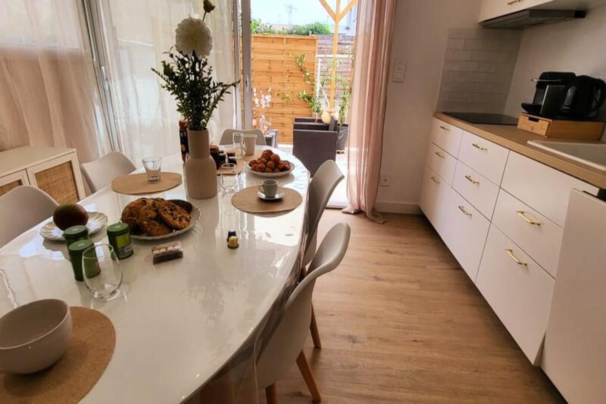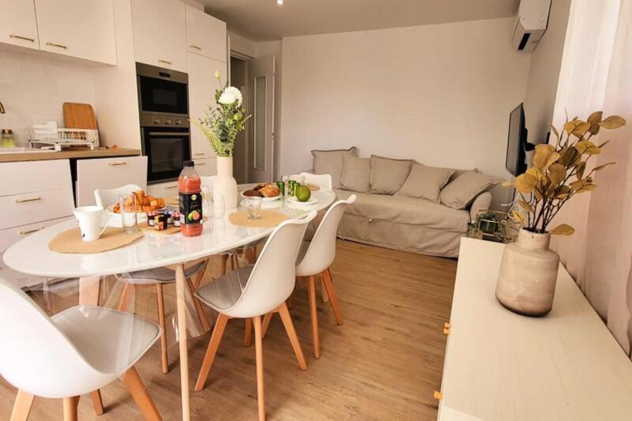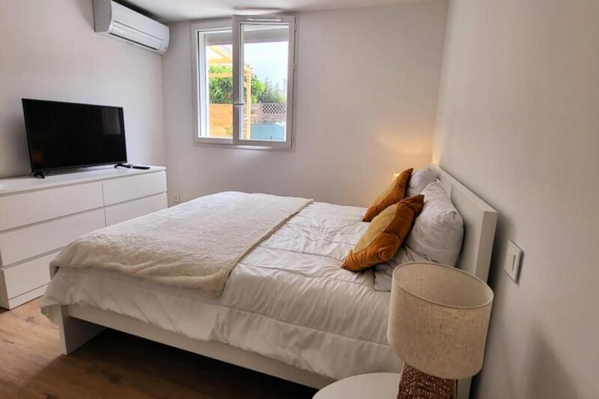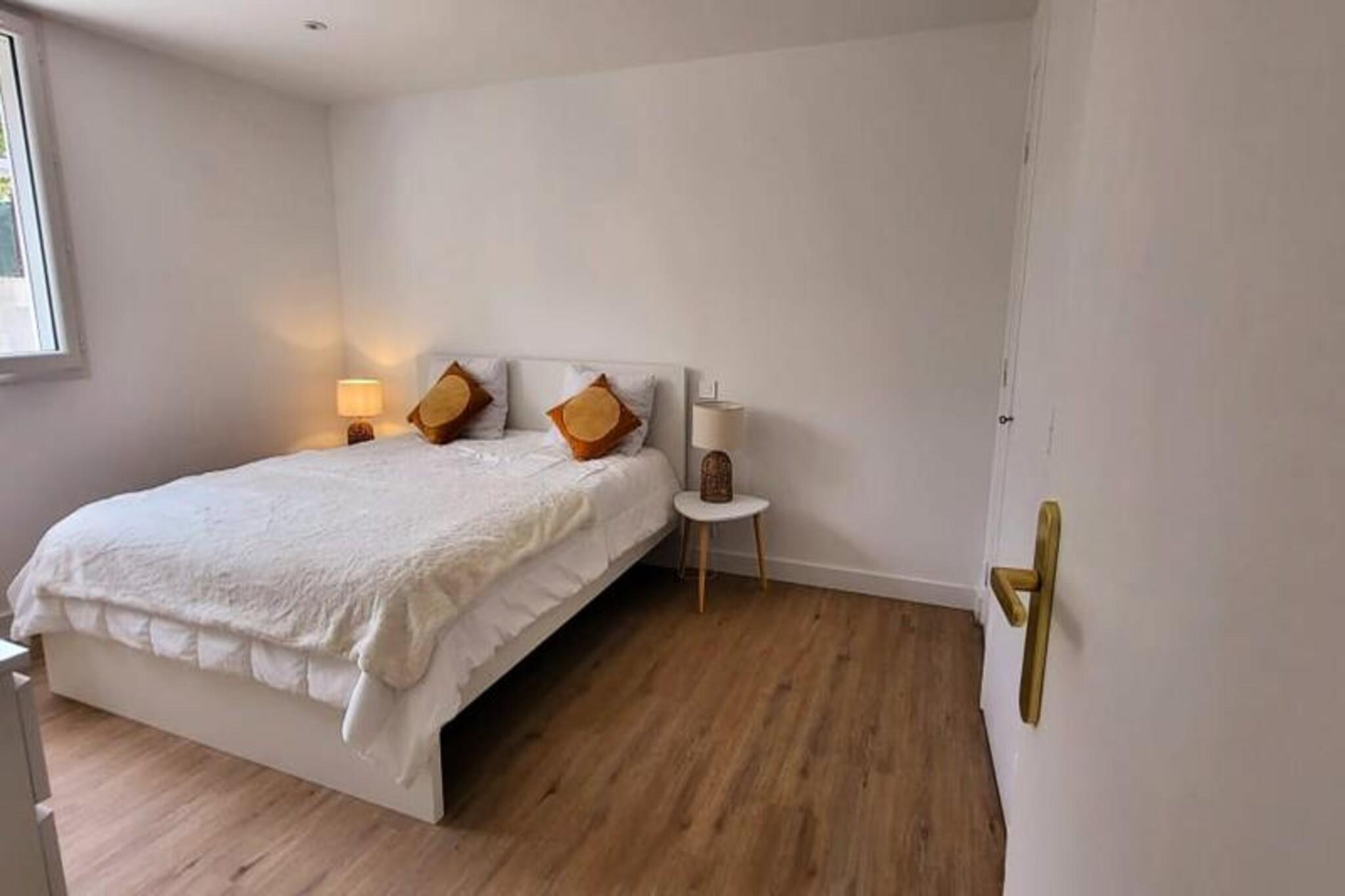 Denne smukt renoverede lejlighed tilbyder et behageligt ophold med to soveværelser, der hver har en 160 cm seng med bløde puder og dyner. Beliggende i stueetagen i en lukket bolig, giver det et fredeligt tilflugtssted kun 300 meter fra stranden og lokale butikker. Lejligheden har aircondition og Wifi for ekstra bekvemmelighed. Kæledyr er ikke tilladt, hvilket sikrer et roligt og roligt miljø for alle gæster. Med parkering tilgængelig på stedet eller på gaden er det nemt at udforske det omkringliggende område til fods. Lejligheden ligger i det rolige rådhuskvarter kun 500 meter fra Boucanet-strandpromenaden, hvor gæsterne kan nyde fantastiske solnedgange og udsigt over Middelhavet. Den nærliggende fiskerihavn giver et glimt af det lokale liv, med trawlere, der passerer gennem kanalen og salgsboder langs Quai Colbert. Port-Camargue, 1 km væk, er Europas første lystbådehavn og et knudepunkt for yachter og sejlbåde. Besøgende kan også nyde lokale caféer, markeder og vinmarker i nærheden. Stuen i åbent plan fører til en stor karnap med udgang til en terrasse, perfekt til måltider eller afslapning i haven. Det fuldt udstyrede køkken omfatter to induktionsbrændere, ovn, mikroovn, køleskab, fryser, opvaskemaskine, vaskemaskine, Nespresso kaffemaskine, brødrister og elkedel. Bruserummet har et vaskeskab med skuffer og et separat toilet for nemheds skyld.
