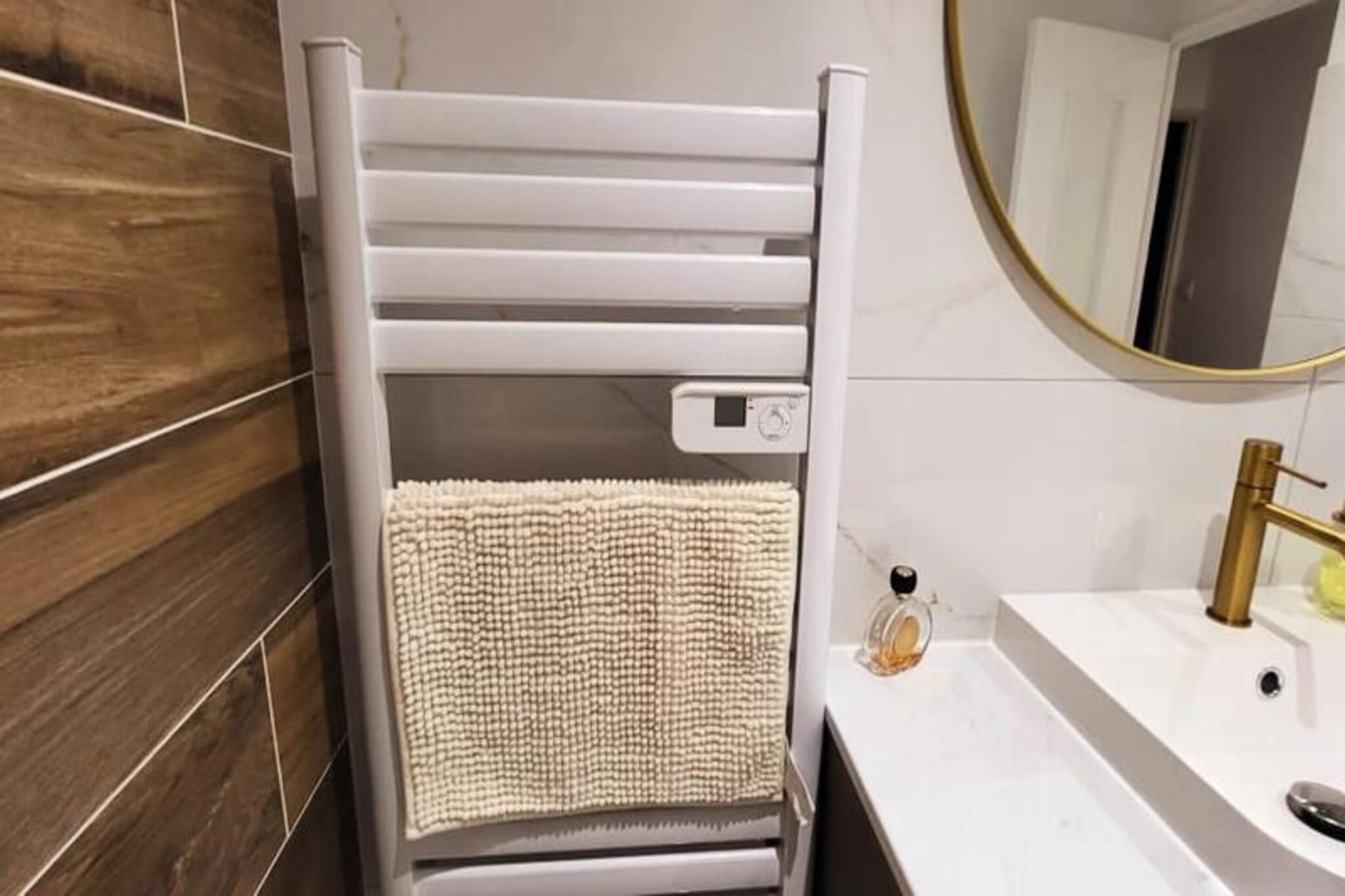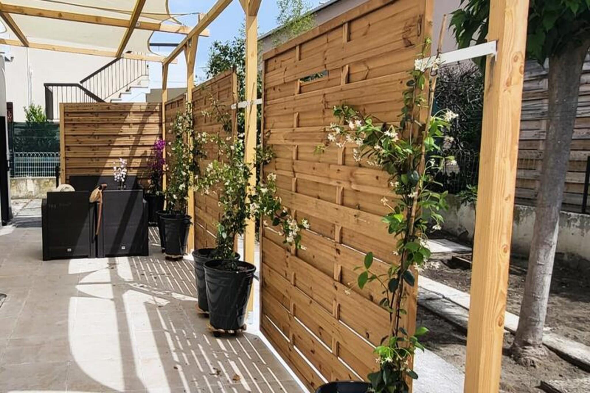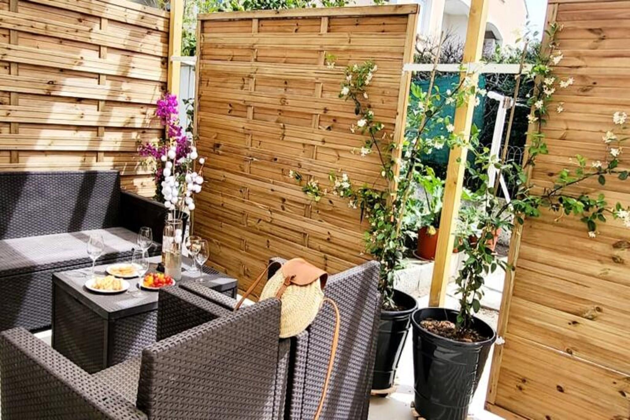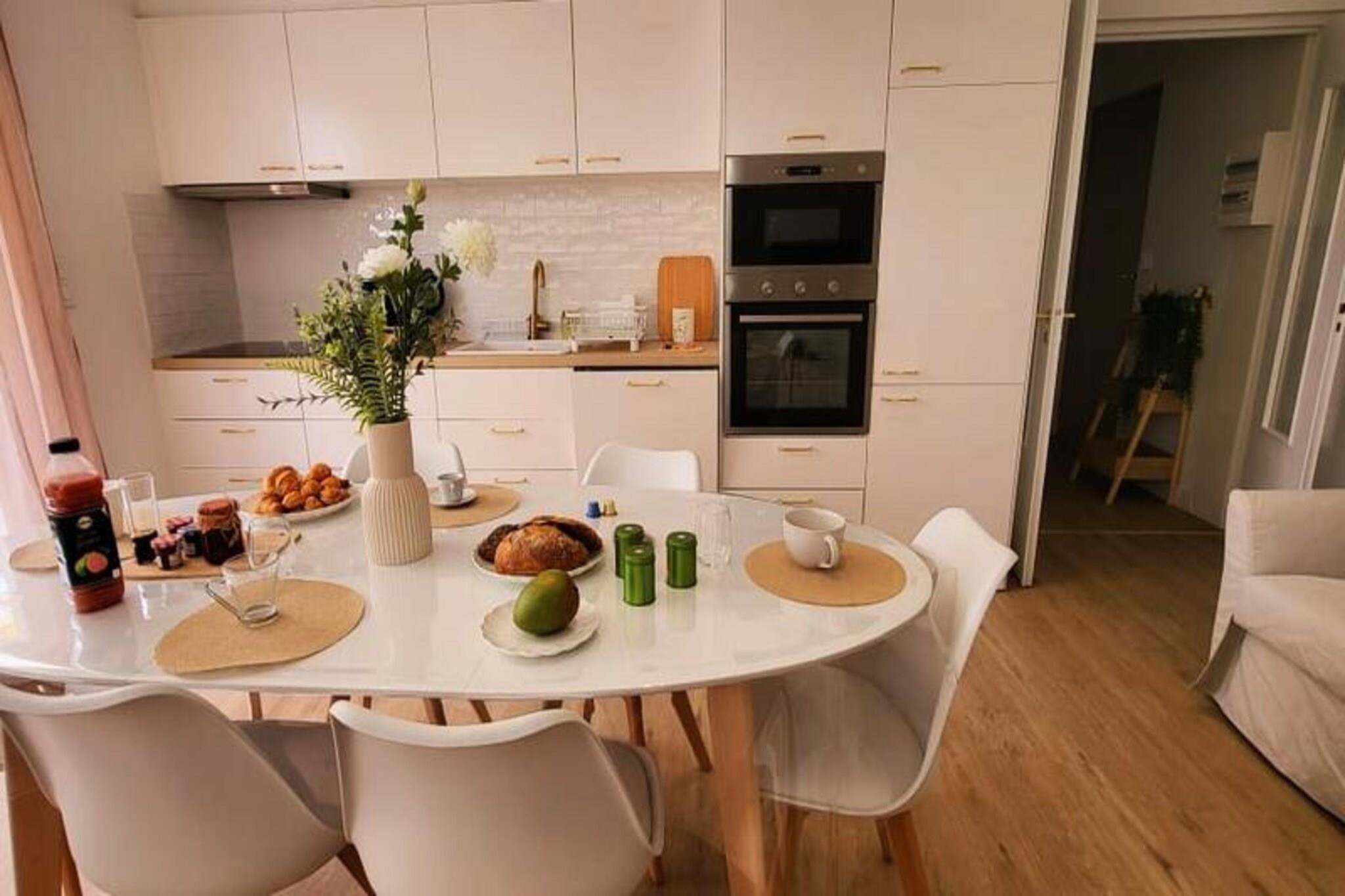 Denne smukt renoverede lejlighed tilbyder et behageligt ophold med to soveværelser, der hver har en 160 cm seng med bløde puder og dyner. Beliggende i stueetagen i en lukket bolig, giver det et fredeligt tilflugtssted kun 300 meter fra stranden og lokale butikker. Lejligheden har aircondition og Wifi for ekstra bekvemmelighed. Kæledyr er ikke tilladt, hvilket sikrer et roligt og roligt miljø for alle gæster. Med parkering tilgængelig på stedet eller på gaden er det nemt at udforske det omkringliggende område til fods. Lejligheden ligger i det rolige rådhuskvarter kun 500 meter fra Boucanet-strandpromenaden, hvor gæsterne kan nyde fantastiske solnedgange og udsigt over Middelhavet. Den nærliggende fiskerihavn giver et glimt af det lokale liv, med trawlere, der passerer gennem kanalen og salgsboder langs Quai Colbert. Port-Camargue, 1 km væk, er Europas første lystbådehavn og et knudepunkt for yachter og sejlbåde. Besøgende kan også nyde lokale caféer, markeder og vinmarker i nærheden. Stuen i åbent plan fører til en stor karnap med udgang til en terrasse, perfekt til måltider eller afslapning i haven. Det fuldt udstyrede køkken omfatter to induktionsbrændere, ovn, mikroovn, køleskab, fryser, opvaskemaskine, vaskemaskine, Nespresso kaffemaskine, brødrister og elkedel. Bruserummet har et vaskeskab med skuffer og et separat toilet for nemheds skyld.