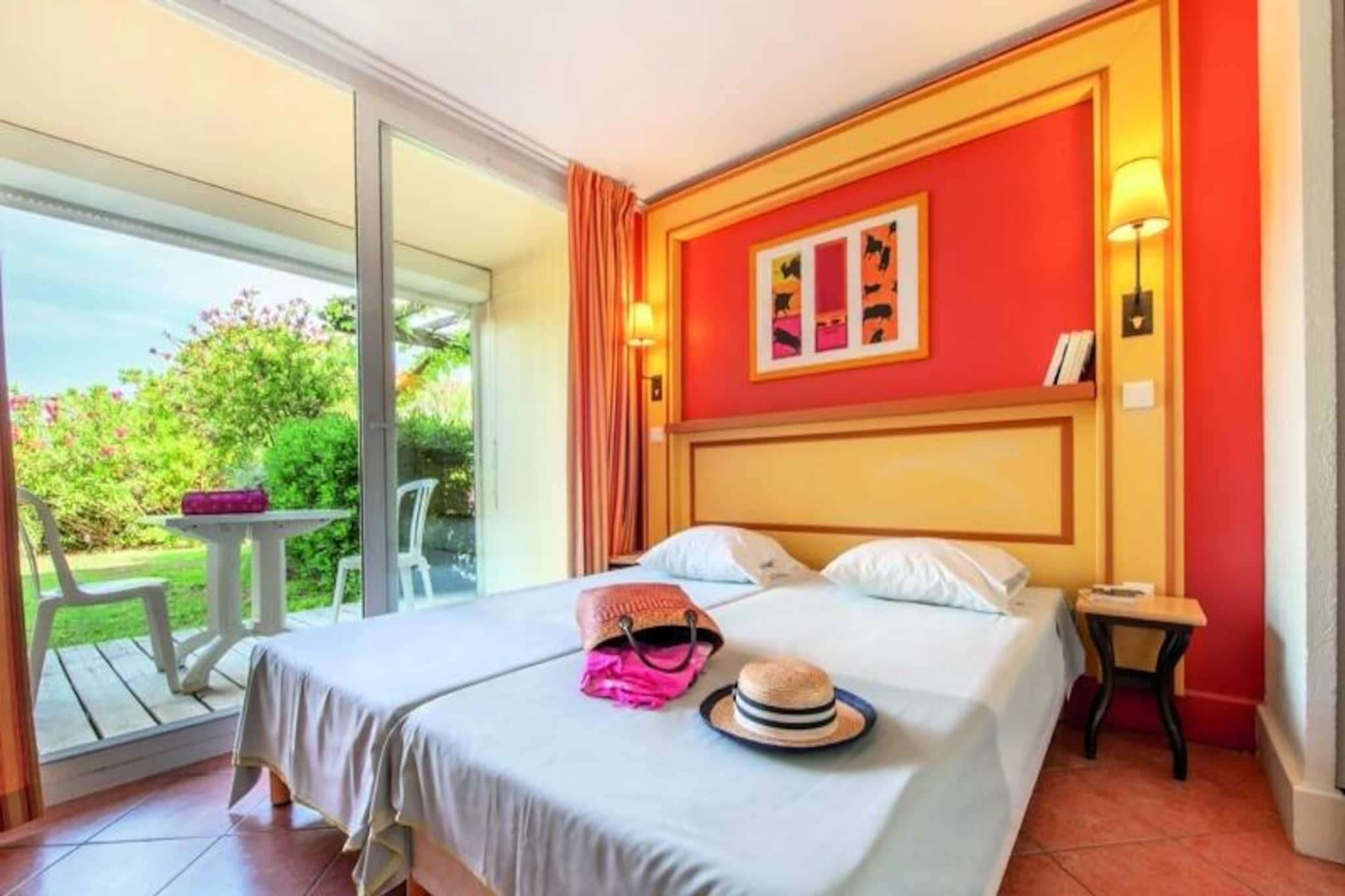 Dette rummelige feriehus, ideelt beliggende ved havnefronten, tilbyder komfortabel indkvartering i 2- eller 3-etagers lejligheder beliggende i en 3 hektar stor anlagt have. Hver lejlighed har en stue med sovesofa eller trilleseng, to soveværelser med hver to enkeltsenge og et badeværelse med bruser og separat toilet. Ejendommen er kæledyrsvenlig og tillader ét kæledyr pr. lejlighed. Der er gratis trådløs internetadgang på både fællesområderne og overnatningsstederne. Parkering er tilgængelig ved indgangen, med adgang for bevægelseshæmmede. Ejendommen har en førsteklasses beliggenhed med direkte adgang til stranden, kun få skridt fra vandet. Gæsterne kan nyde forskellige vandaktiviteter i nærheden. De nærmeste butikker og tjenester ligger kun 2 km væk, hvilket giver nem adgang til lokale faciliteter. Ejendommen ligger også tæt på caféer og restauranter, hvilket sikrer bekvemme spisemuligheder under dit ophold. Lejlighederne er udstyret med et fuldt funktionelt køkken, så gæsterne kan tilberede måltider under deres ophold. Et babysæt (seng, bad og høj stol) er tilgængeligt efter anmodning. Sengetøj, håndklæder og slutrengøring er inkluderet. Den opvarmede swimmingpool er åben året rundt og tilbyder specifikt udstyr til gæster med nedsat mobilitet.