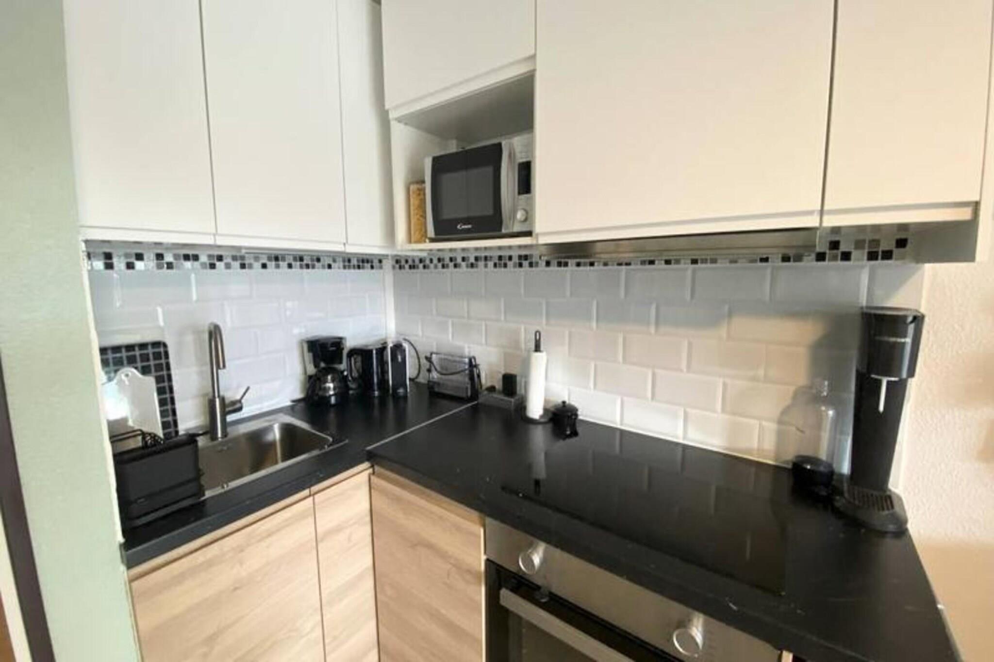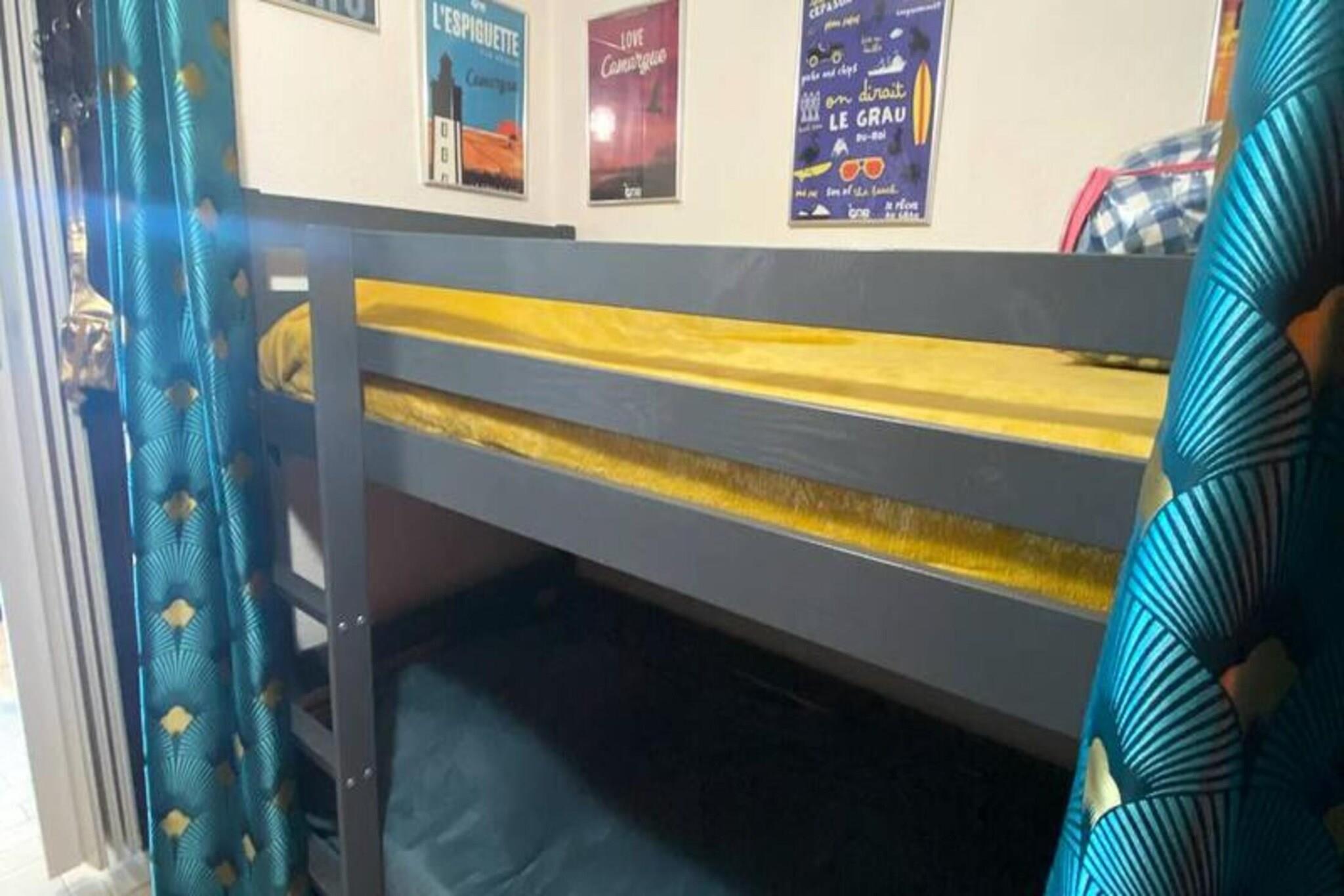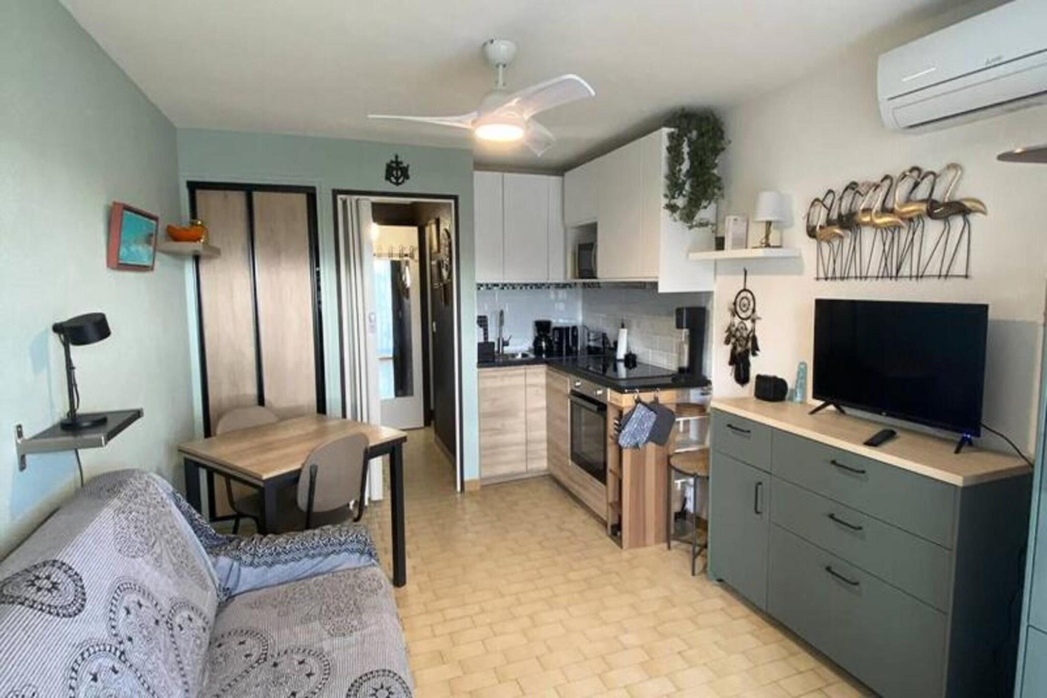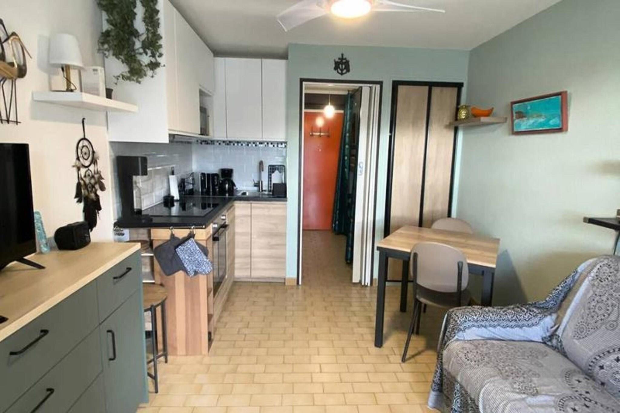 Denne studiohytte på 22 m², beliggende på 2. sal, tilbyder et behageligt ophold for op til 4 personer. Opholdsområdet inkluderer en 140 cm sovesofa, tv, aircondition og Wi-Fi, hvilket skaber et hyggeligt rum til afslapning. En kahyt med 2 køjesenge (90 cm hver) giver ekstra sovepladser. Ejendommen er ikke kæledyrsvenlig, hvilket sikrer et fredeligt miljø for alle gæster. Det åbner ud til en 5m² stor terrasse med havemøbler og en grill, perfekt til at nyde den friske luft. Lejligheden er ideelt beliggende nær lokale butikker og stranden, kun 200 meter væk, hvilket gør det nemt at udforske det omkringliggende område. Nyd nærliggende caféer og markeder, hvor du kan forkæle dig med lokale smagsoplevelser og afhente væsentlige ting. Uanset om du leder efter en afslappende dag på stranden eller en spadseretur gennem det pulserende lokalområde, tilbyder denne beliggenhed det bedste fra begge verdener. Køkkenet er fuldt udstyret med moderne bekvemmeligheder, herunder en mikrobølgeovn, ovn, køleskab/fryser, kogeplader og opvaskemaskine, hvilket gør tilberedning af måltider bekvemt. Badeværelset er funktionelt med toilet, hvilket sikrer, at alle basale behov er opfyldt. Privat parkering er tilgængelig for ekstra bekvemmelighed, hvilket giver et sikkert sted til dit køretøj.