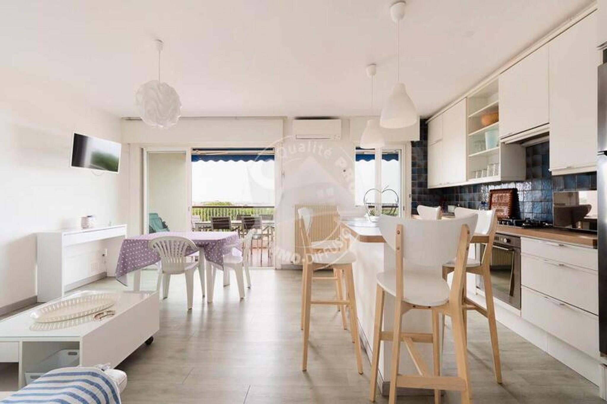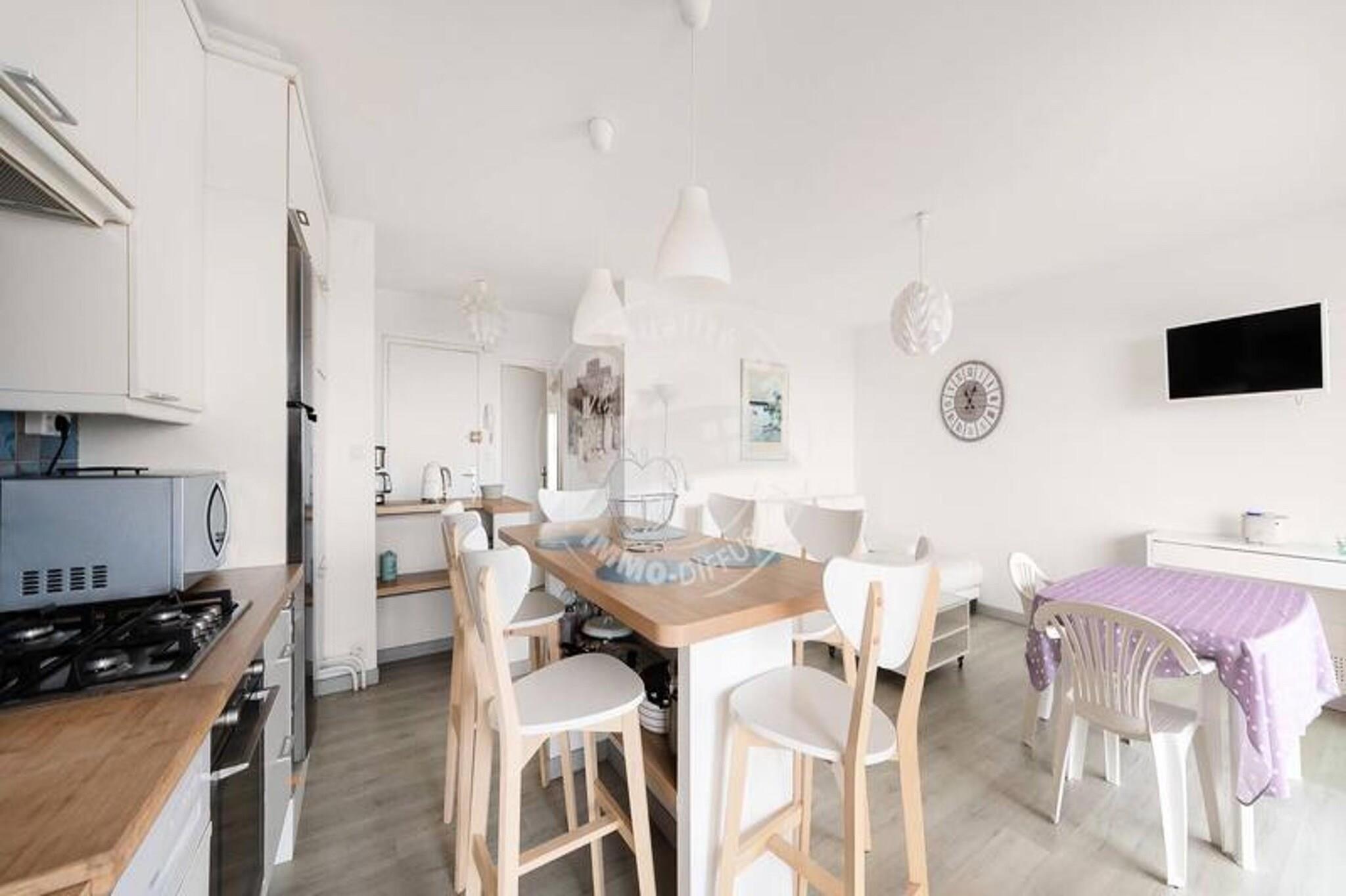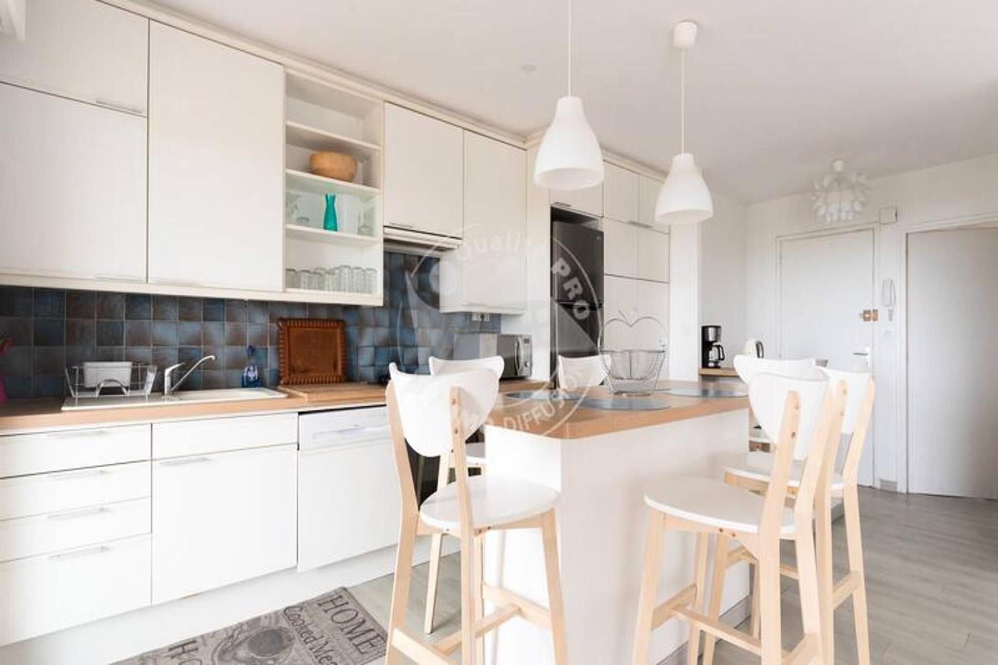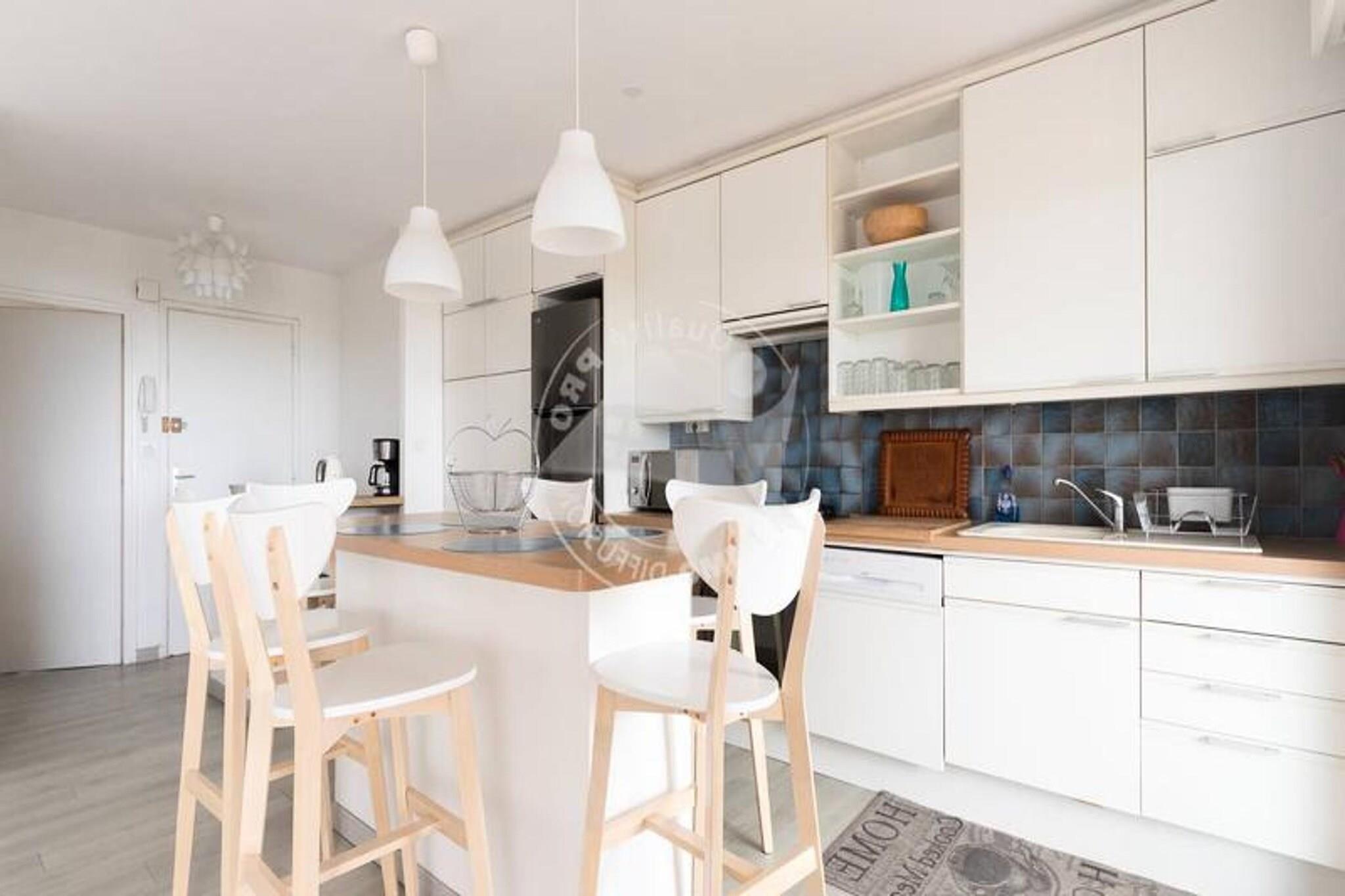 Denne rummelige lejlighed på 70 m² kan rumme op til 6 personer. Det har en stor stue med tv og aircondition, der tilbyder et lyst og afslappende rum. Det store soveværelse har en 140 cm dobbeltseng med udgang til en 2m² stor balkon, mens det andet soveværelse er udstyret med 2 enkeltsenge og 2 ekstra 90 cm senge. Lejligheden er ikke-kæledyrsvenlig, hvilket sikrer et fredeligt miljø for alle gæster. Beliggende kun 100 meter fra Seaquarium og 800 meter fra hovedgaden i byens centrum, tilbyder lejligheden nem adgang til lokale attraktioner, caféer og markeder. Gæsterne kan nyde forskellige aktiviteter i det omkringliggende område, herunder vandsport, shopping og spisemuligheder, hvilket gør det til et ideelt sted for dem, der ønsker at udforske Grau du Roi-regionen. Lejligheden indeholder et fuldt udstyret køkken med mikroovn, ovn, køleskab/fryser, opvaskemaskine og en 4-brænder gaskomfur med en central ø. Badeværelset har brusekabine og vaskemaskine, mens et separat toilet bidrager til bekvemmeligheden. Derudover byder den sydvestvendte 8m² store terrasse på en storslået udsigt over haven og havet.