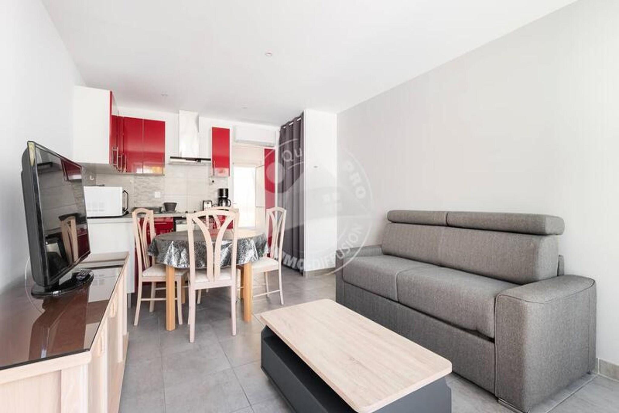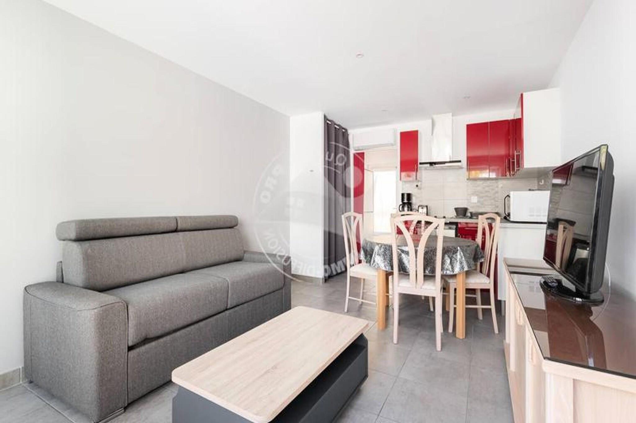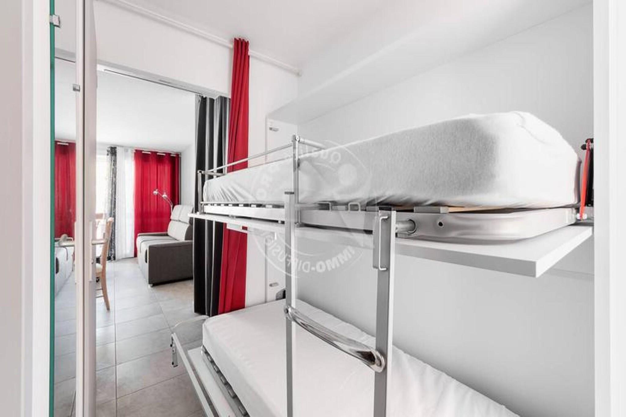 Denne renoverede studiehytte tilbyder et behageligt ophold for op til 4 personer, med en 140 cm sovesofa i den rummelige stue, aircondition og et tv til underholdning. Lejligheden indeholder også en kahyt med garderobe og køjeseng, der giver rigelig soveplads til alle gæster. Kæledyr er ikke tilladt. Studiet har en 3m² terrasse med sideudsigt over havet, perfekt til at slappe af udendørs. Boligen ligger kun 20 m fra stranden og tilbyder nem adgang til vandet. Ejendommen er ideelt beliggende med bymidten kun 600 meter væk, hvor du kan udforske lokale caféer, butikker og attraktioner. Det nærliggende indkøbscenter, kun 500 meter fra lejligheden, byder på yderligere bekvemmeligheder og muligheder for spisning og shopping. Denne beliggenhed er perfekt for dem, der ønsker at nyde både stranden og den pulserende byatmosfære. Lejligheden har et fuldt udstyret køkken med topkøleskab, ovn/mikrobølgeovn og kogeplader, ideel til at tilberede måltider. Bruserummet inkluderer en vaskemaskine, og der er et separat toilet for ekstra bekvemmelighed. Lejligheden er omhyggeligt indrettet for at sikre et behageligt og funktionelt ophold.