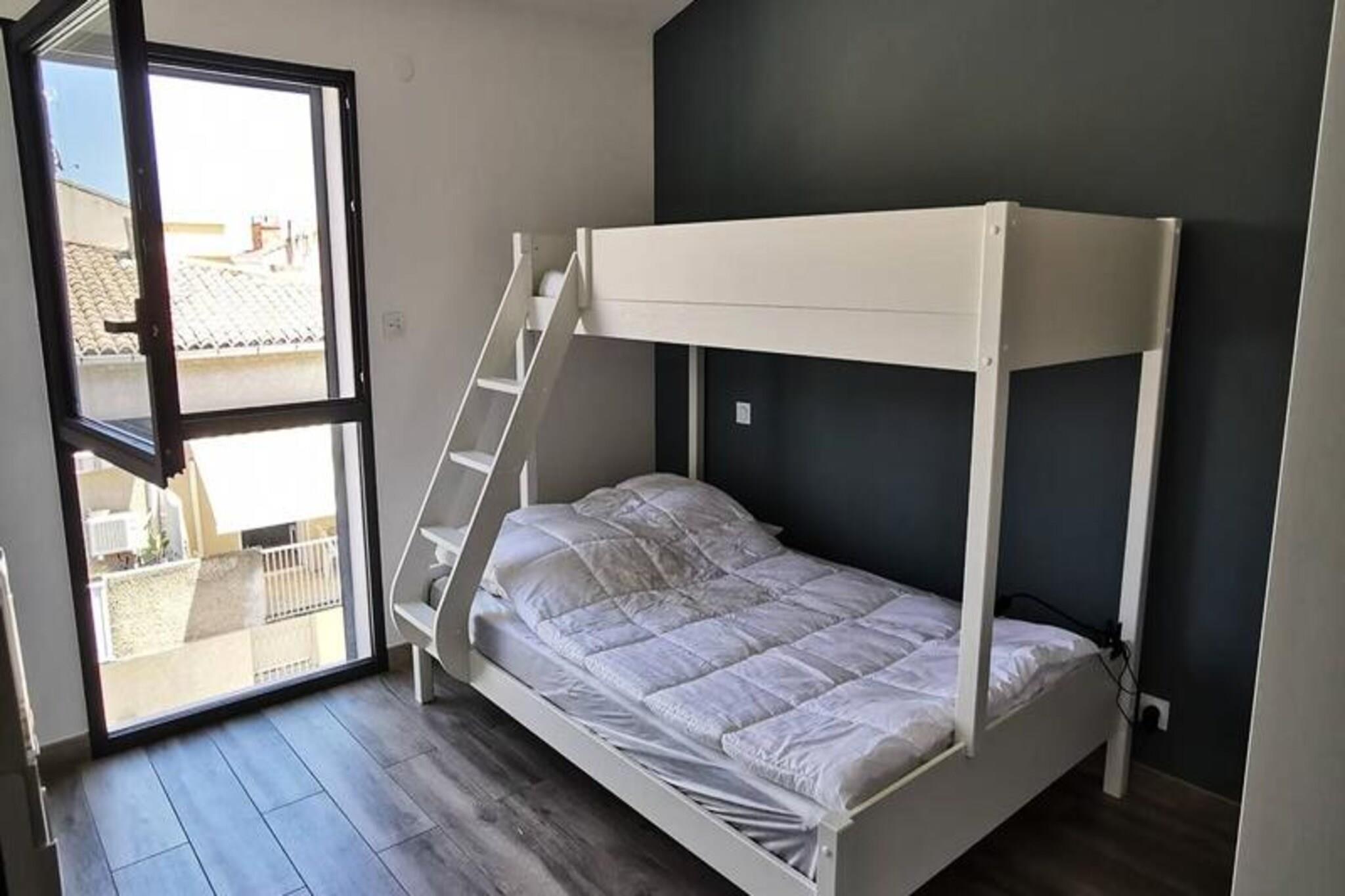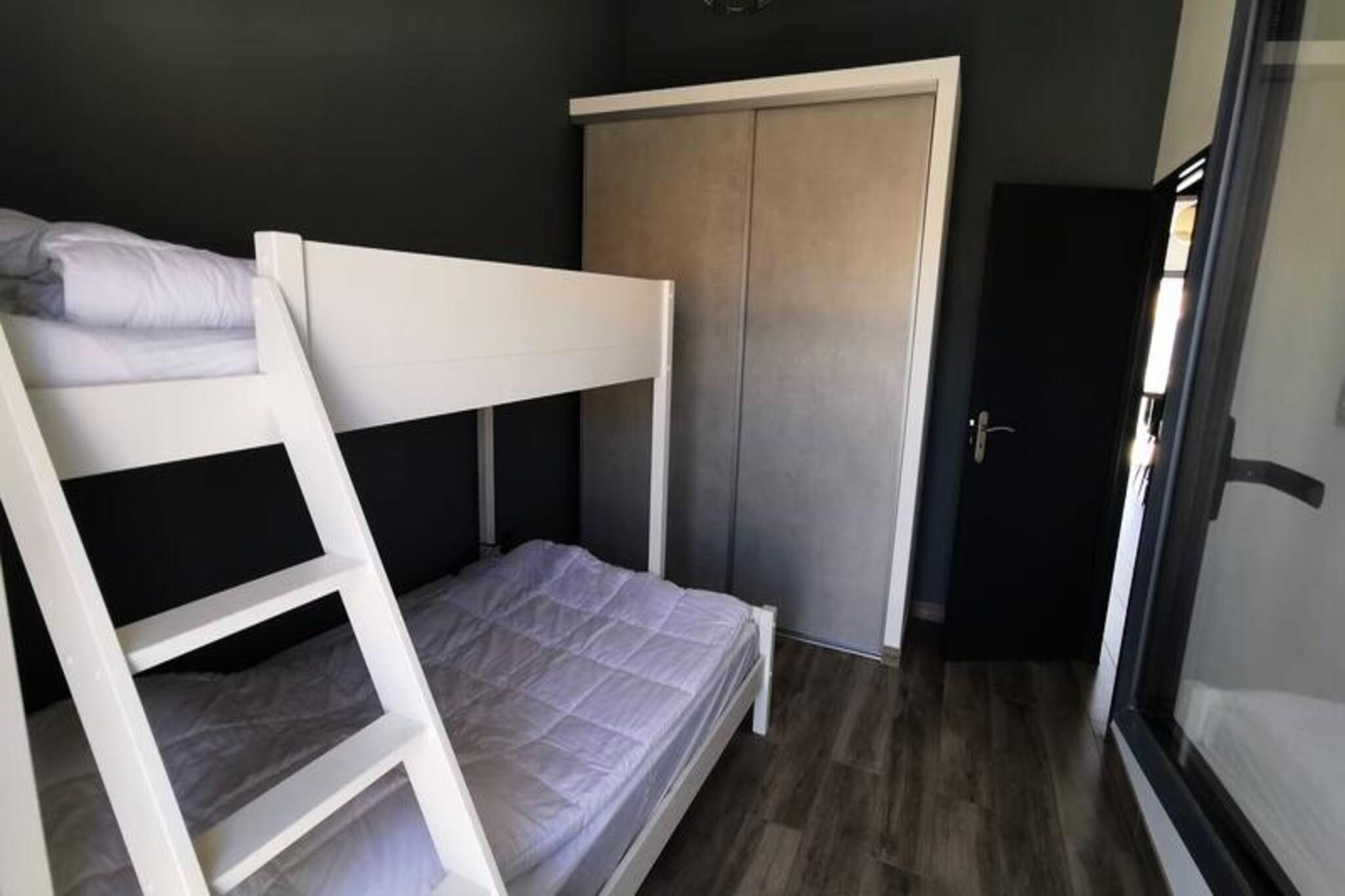 Denne stilfulde P3-lejlighed ligger på 2. og øverste etage i en ny bolig, og tilbyder en perfekt blanding af komfort og bekvemmelighed. Det kan rumme op til 7 gæster, med soveværelse 1 med en mezzaninseng til 3 (en 140 cm dobbeltseng og en 90 cm enkeltseng) og soveværelse 2 med en 160 cm dobbeltseng, begge med aircondition. I stuen er der en 160 cm sovesofa, aircondition, wifi og et tv til underholdning. Lejligheden er kæledyrsfri og har en lukket garageparkeringsplads, hvilket sikrer et sikkert og behageligt ophold. Denne lejlighed ligger kun 100 meter fra stranden og 250 meter fra bymidten og tilbyder nem adgang til områdets attraktioner, caféer og markeder. Gæsterne kan nyde en pulserende blanding af lokale butikker, restauranter og aktiviteter ved havet, alt inden for gåafstand. Den centrale beliggenhed giver mulighed for en afslappet udforskning af byen, hvilket gør den ideel for dem, der ønsker at opleve både stranden og den lokale kultur. Det fuldt udstyrede køkken omfatter ovn, køleskab/fryser, opvaskemaskine, mikroovn og vaskemaskine, som giver alt det nødvendige for et ophold med egen forplejning. Badeværelset har brusekabine, dobbelt håndvask og håndklædetørrer, hvilket giver en luksuriøs oplevelse. Gæsterne kan også nyde to rummelige terrasser: en 22 m² tagterrasse med en pergola og en 23 m² anden terrasse, som begge vender mod sydvest til solfyldt afslapning.