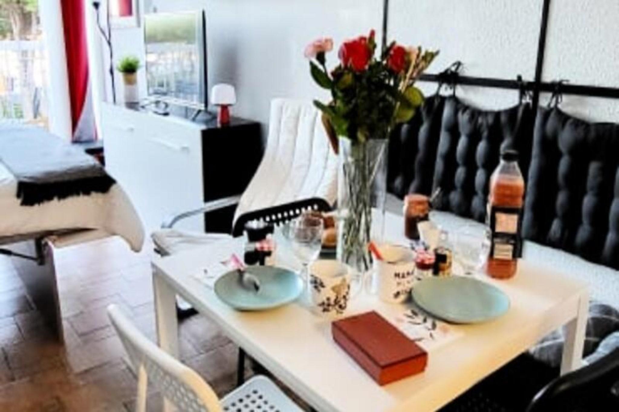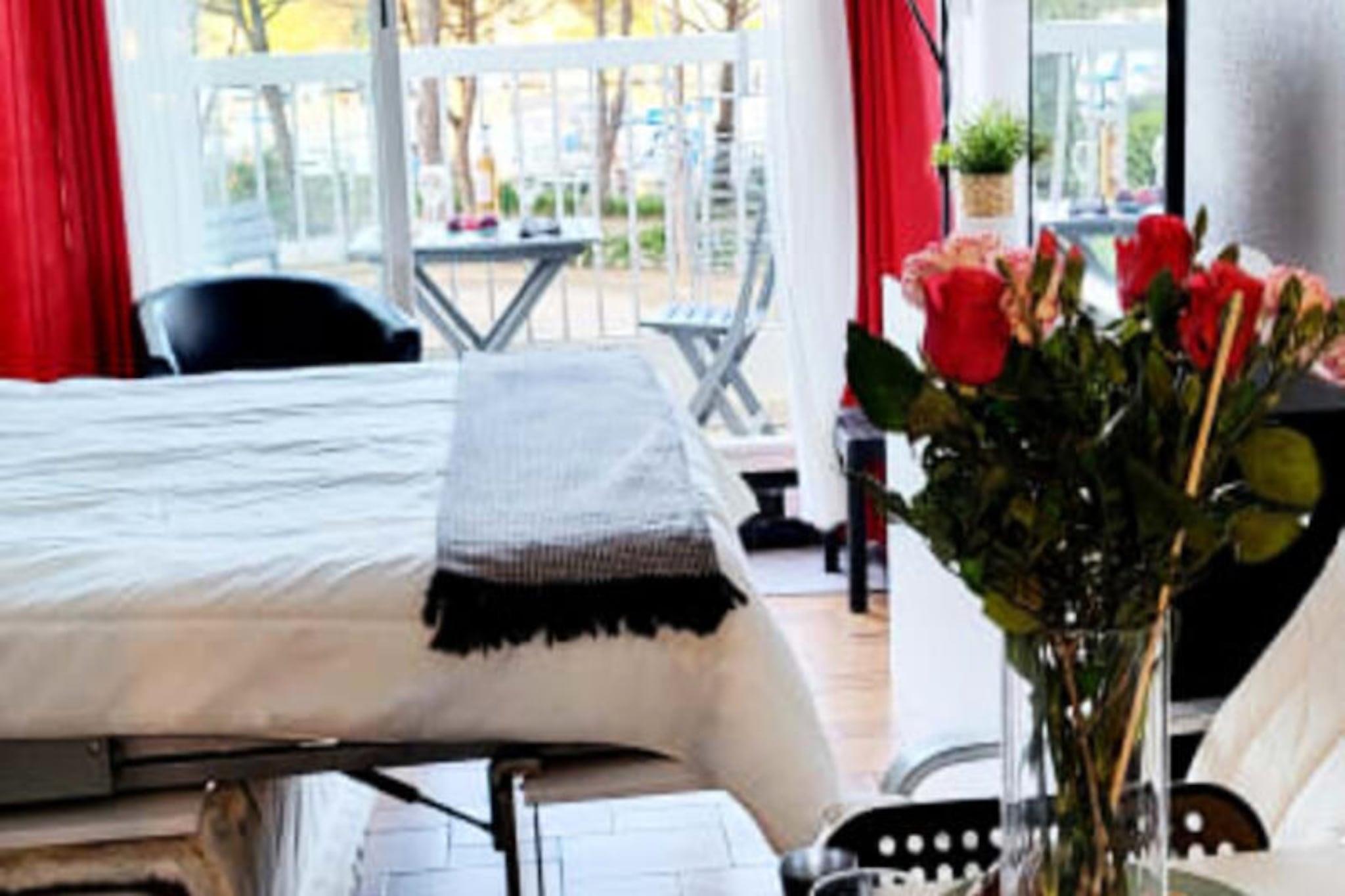 Med udsigt over den fredfyldte Port-Camargue marina inviterer denne smukt renoverede studiolejlighed dig til at opleve Middelhavets charme. Forestil dig at vågne op til den blide svajen af ??yachter og sejlbåde, med den pulserende South Beach kun 400 meter væk. Beliggende i Marinas-distriktet tilbyder dette airconditionerede tilflugtssted en rolig tilflugtssted midt i skønheden i Europas største marina. Uanset om du nyder en morgenkaffe på balkonen eller slentrer langs promenaden ved solnedgang, er atmosfæren her uforglemmelig. \n\nIndvendigt er lejligheden omhyggeligt designet til komfort og bekvemmelighed. Den primære opholdsstue åbner ud til en balkon med malerisk udsigt over marinaen og boligens frodige have. Det åbne køkken er fuldt udstyret med moderne apparater, herunder en keramisk kogeplade, mikrobølgeovn og Nespresso-kaffemaskine, hvilket gør den perfekt til at tilberede måltider til selskab med dine kære. Sovepladserne henvender sig til både voksne og børn, med en hyggelig 160 cm seng og charmerende køjesenge til de yngre gæster. Et elegant brusebadeværelse med rigelig opbevaringsplads fuldender rummet og sikrer et komfortabelt ophold for op til fire gæster.\n\nTræd udenfor og fordyb dig i det pulserende lokale liv. Udforsk den nærliggende South Beach og det travle Trident-shoppingområde, hvor du finder bagerier, slagtere, restauranter og isbarer. Tag en afslappet gåtur langs fiskerihavnen, se trawlere vende tilbage med deres fangst, og oplev regionens rige maritime traditioner. For naturelskere danner Camargues lyserøde flamingoer og fantastiske solnedgange en magisk baggrund for din ferie.\n\nUanset om du er her for at slappe af ved havet, forkæle dig selv med lokale delikatesser som havtaske-bourride og vin des sables eller blot nyde marinaens fredelige atmosfære, tilbyder denne studiolejlighed en idyllisk middelhavsferie.