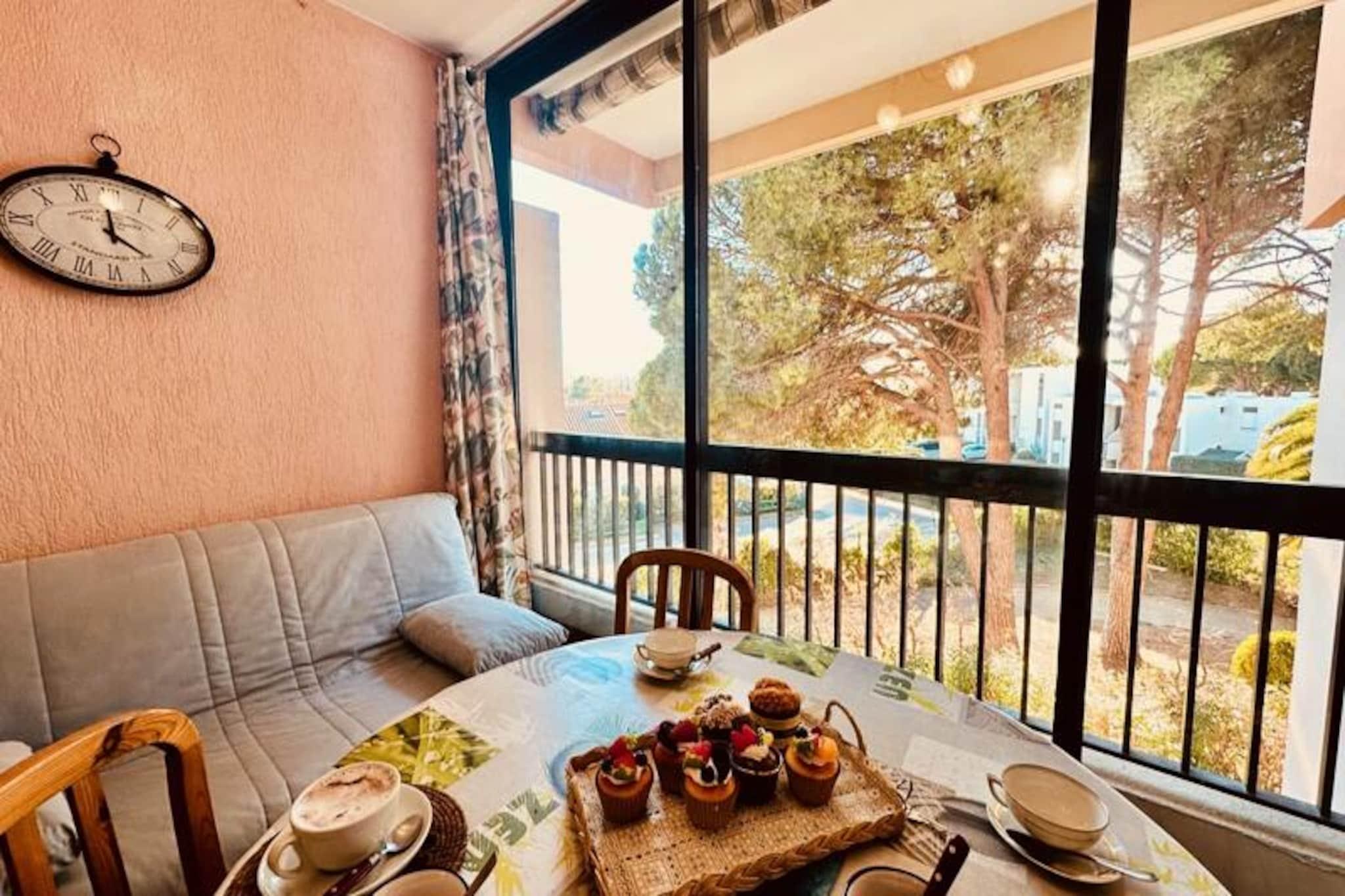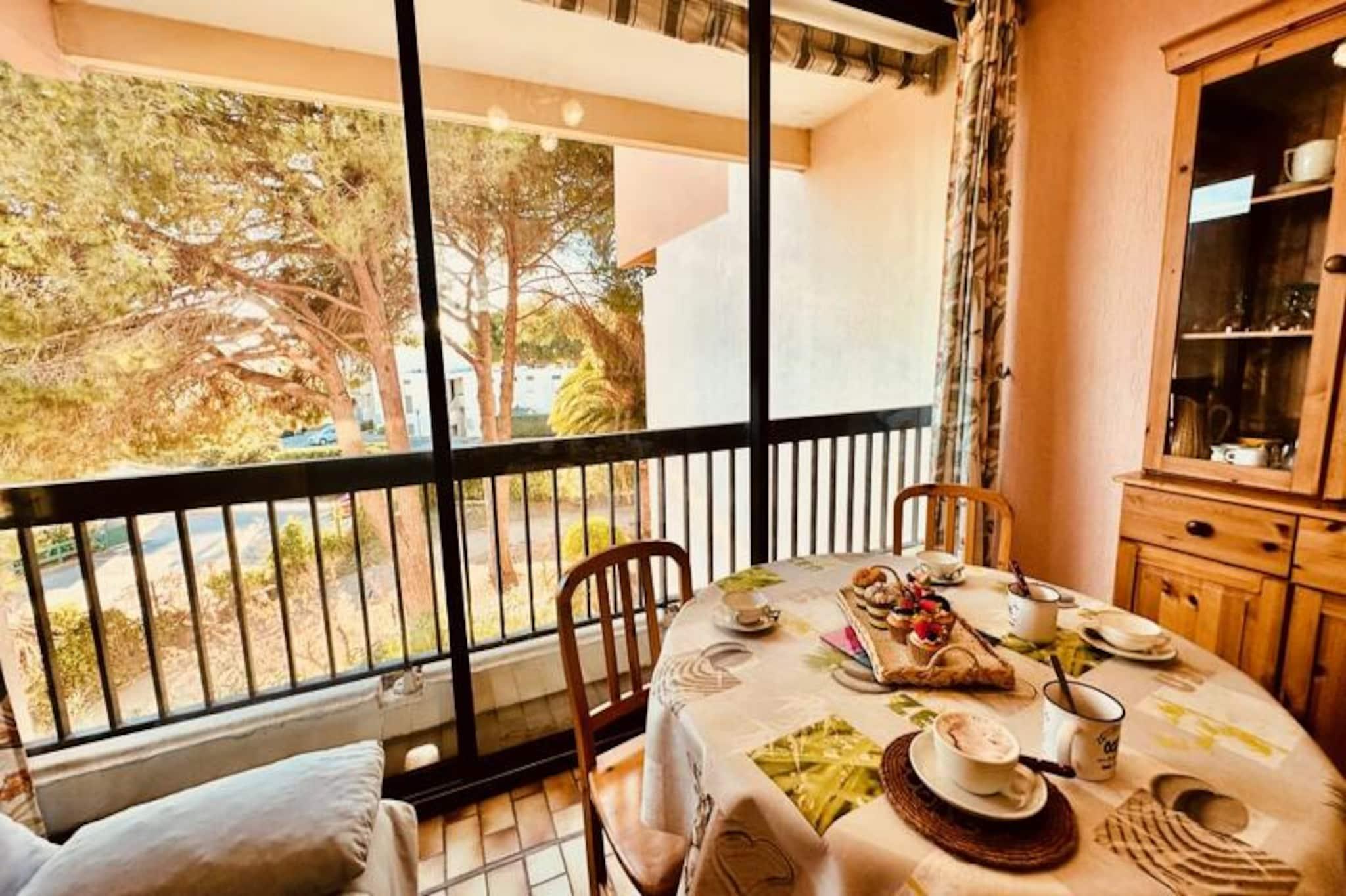 Væk dine sanser i den rolige atmosfære i Port Camargue, hvor den blide havbrise og charmen ved Middelhavskysten skaber den perfekte baggrund for din ferie. Beliggende i hjertet af denne maleriske kystdestination tilbyder 'Le Triangle de la Baronnie' et hyggeligt tilflugtssted kun få skridt fra det gyldne sand og det glitrende vand. Uanset om du nyder en rolig morgenkaffe på loggiaen med udsigt over frodige haver eller slentrer til den nærliggende strand, er denne lejlighed din port til afslapning og opdagelse. \n\nDenne omhyggeligt designede lejlighed med et soveværelse ligger på anden sal i en sikker bolig med digital adgang for ro i sindet. Indenfor finder du et indbydende opholdsrum med en komfortabel sovesofa, et tv og adgang til loggiaen, hvor et spisebord inviterer dig til at nyde måltider under åben himmel. Det separate køkken er fuldt udstyret til dine kulinariske behov, mens soveværelset med en dobbeltseng og badeværelset med badekar sikrer afslappende nætter og forfriskende morgener. Sengelinned er inkluderet, hvilket gør dit ophold endnu mere bekvemt. \n\nTræd udenfor og fordyb dig i Port Camargues pulserende liv. Europas største marina ligger kun en kort gåtur væk og tilbyder en dejlig blanding af butikker, restauranter og forretninger. Udforsk Seaquarium, nyd naturskønne vandreture langs kysten, eller slap blot af på den nærliggende strand. For naturelskere lokker den omkringliggende Camargue-region med sine unikke landskaber og dyreliv. \n\nLe Triangle de la Baronnie er let tilgængeligt med tog, bus eller bil og kun en kort køretur fra Montpellier Lufthavn. Det er den ideelle base for en mindeværdig ferie ved havet. Uanset om du er her for en afslappende ferie, en forretningsrejse eller en hurtig weekendtur, lover denne charmerende lejlighed komfort, bekvemmelighed og Middelhavets tidløse charme.