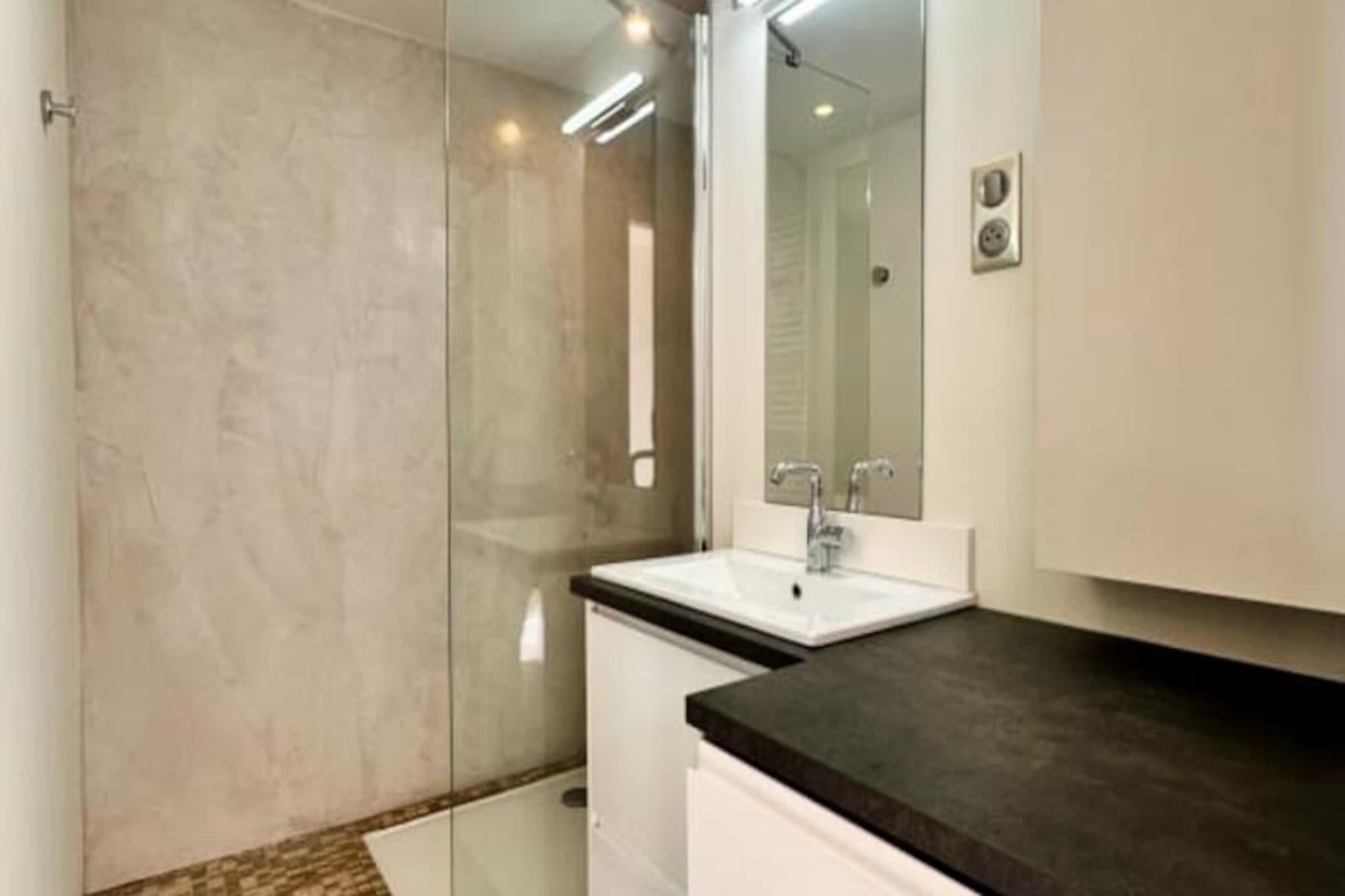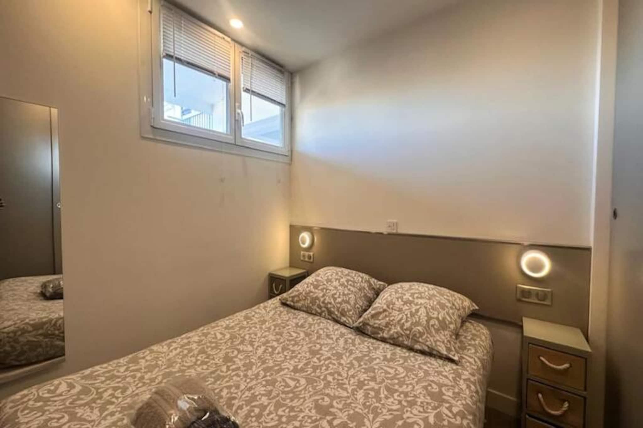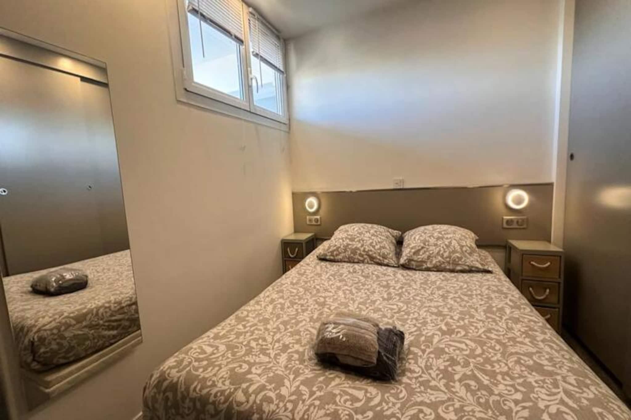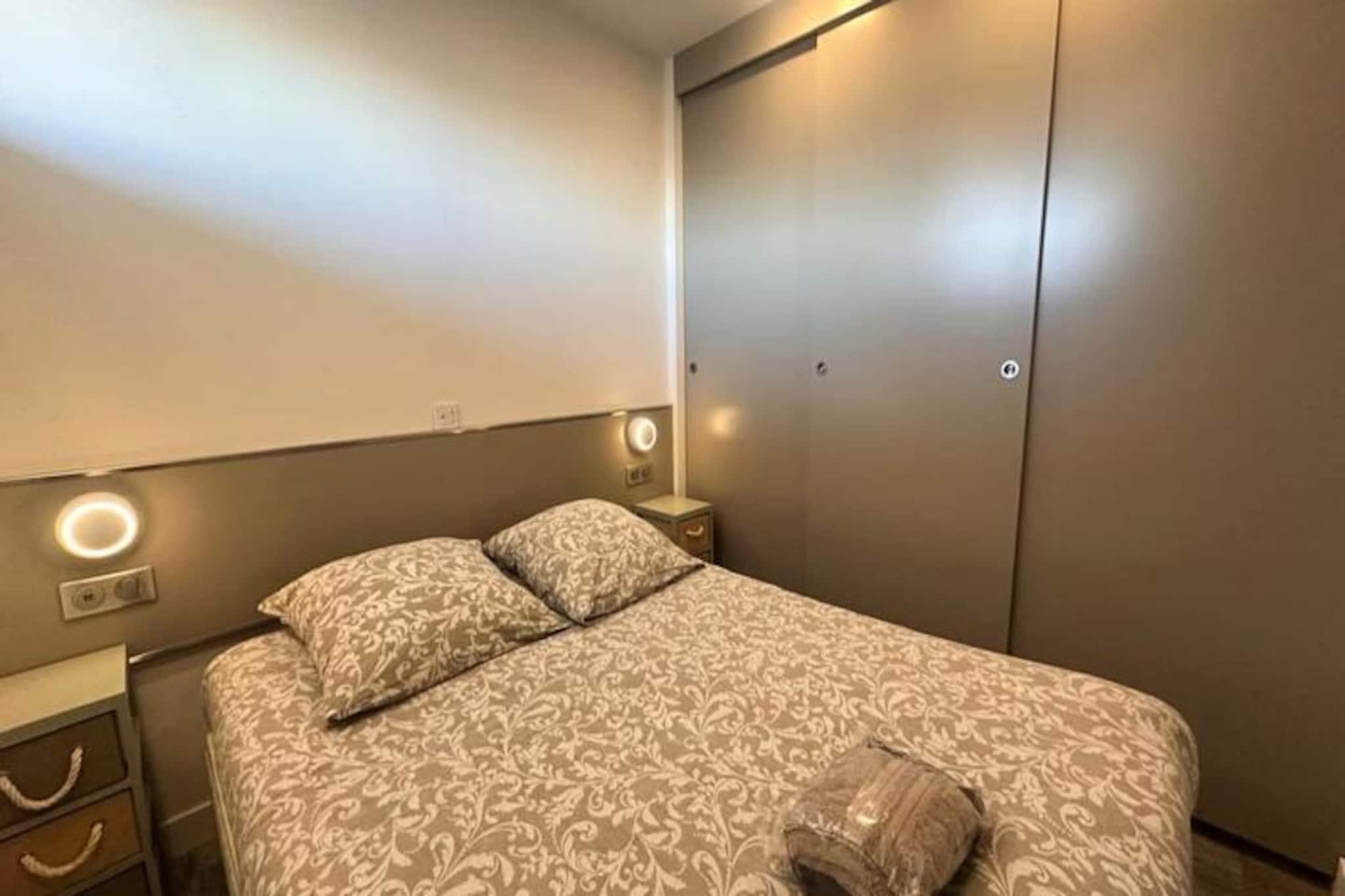 Vågn op til den blide lyd af bølger og duften af ??havluft i 'Les Pieds dans l'eau', et lyst og moderne studiolejlighed beliggende kun 50 meter fra den gyldne sandstrand i Port Camargue. Dette idylliske tilflugtssted tilbyder en rolig oase, hvor naturligt lys strømmer ind gennem store karnapvinduer og inviterer dig til at starte hver dag med en betagende udsigt over Middelhavet. Uanset om du søger en romantisk ferie eller et fredeligt tilflugtssted ved havet, lover denne lejlighed en perfekt blanding af komfort og stil. Træd indenfor og oplev et gennemtænkt designet rum med en rummelig opholdsstue med et elegant åbent køkken. Køkkenet er fuldt udstyret med moderne apparater, herunder kaffemaskine, brødrister og elkedel, og er perfekt til at tilberede afslappende morgenmad eller aftensmad. Stuen, komplet med et tv og en komfortabel sovesofa, er et hyggeligt sted at slappe af efter en dag på stranden. Et separat soveværelse med en luksuriøs dobbeltseng og rigelig skabsplads sikrer afslappende nætter, mens designerbadeværelset med bruseniche tilføjer et strejf af luksus til dit ophold. Denne ejendom, der ligger på venstre bred af Grau du Roi, er perfekt placeret til at udforske charmen ved denne ikoniske fiskerihavn. Gå en tur til nærliggende butikker, restauranter og det pulserende lokale marked, eller slap blot af på stranden kun få skridt fra din dør. For naturelskere tilbyder den omkringliggende Camargue-region et væld af udendørsaktiviteter, lige fra fuglekiggeri til cykling langs naturskønne kyststier. Med en privat parkeringsplads og nem adgang til offentlig transport, herunder Grau du Roi togstation kun 1 km væk, er 'Les Pieds dans l'eau' den ideelle base for dit næste eventyr ved havet. Lad Middelhavets skønhed og charmen ved Port Camargue skabe uforglemmelige minder under dit ophold.